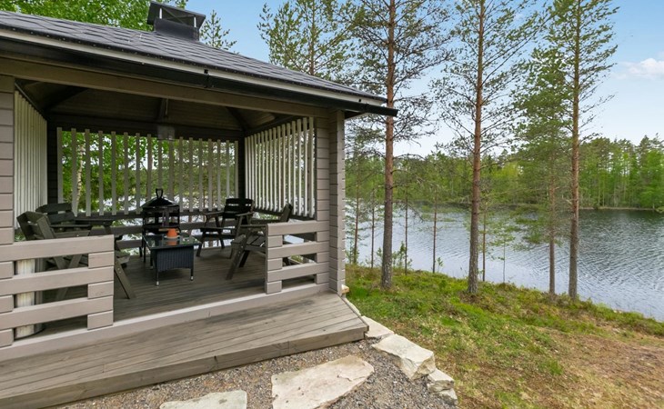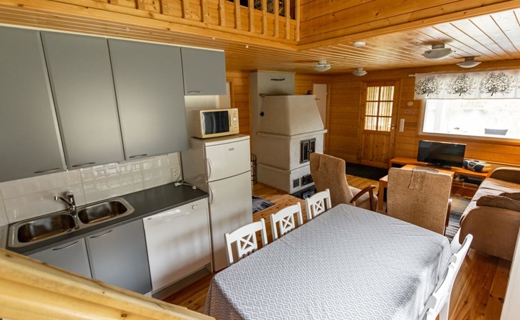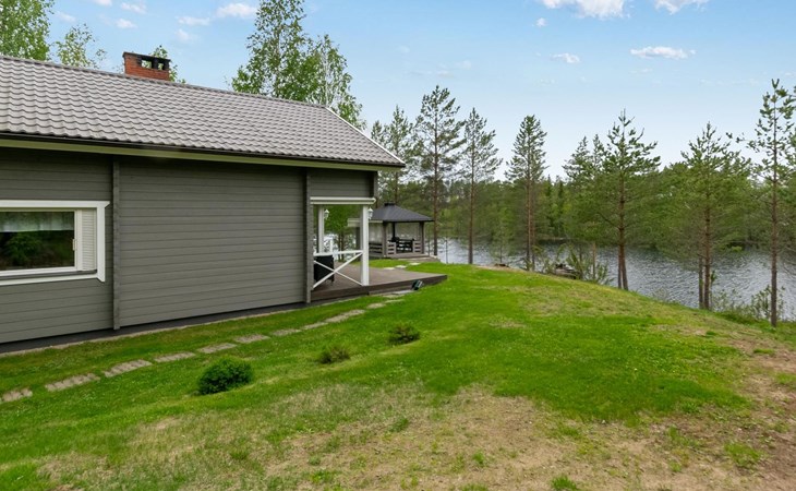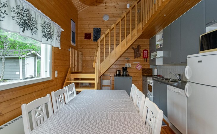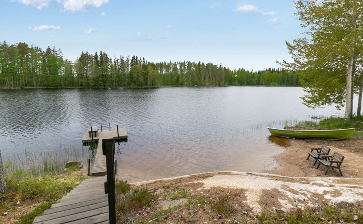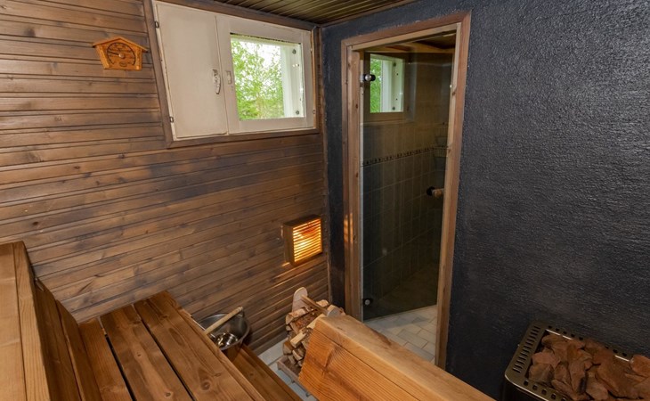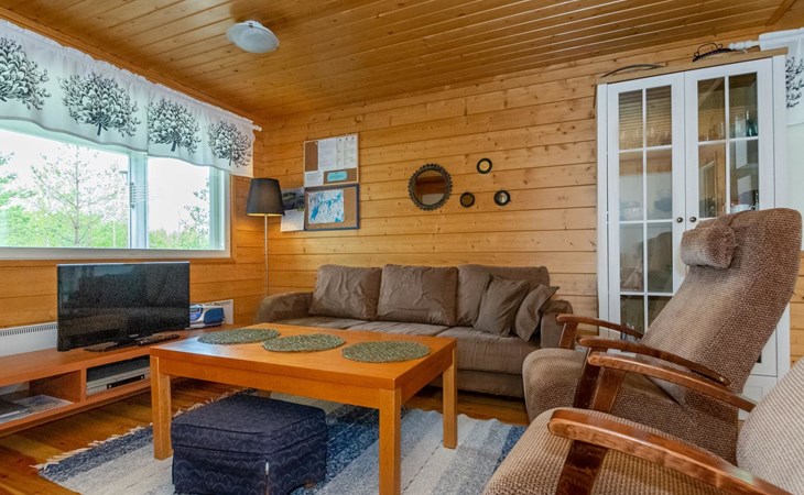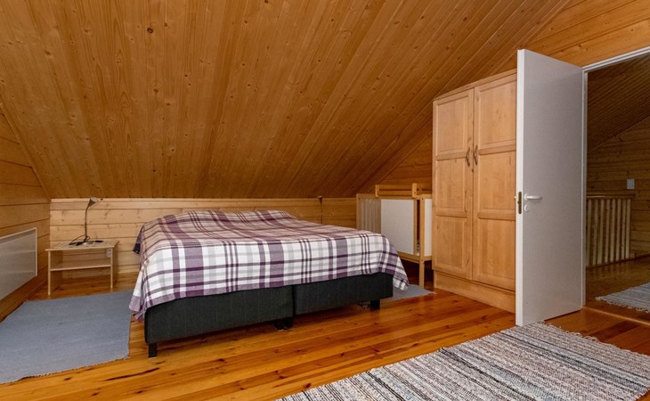 Free internet access. Spacious two-storey cottage with double beds only. Cottage stands on bedrock, with rather steep slope to shore. Good hiking terrain, no neighbours nearby. Shore faces west, plot offers good sunbathing opportunities. Free internet connection.