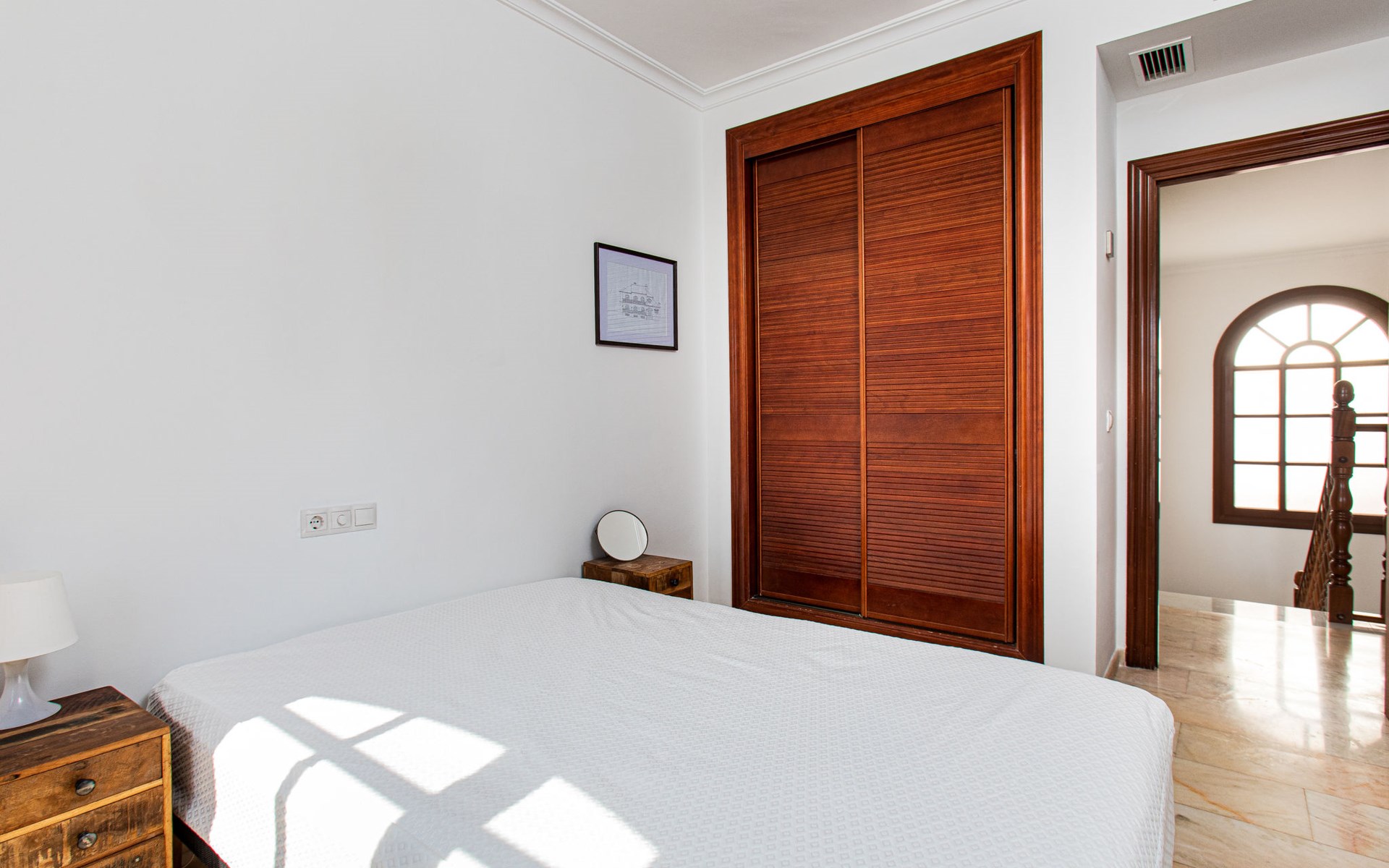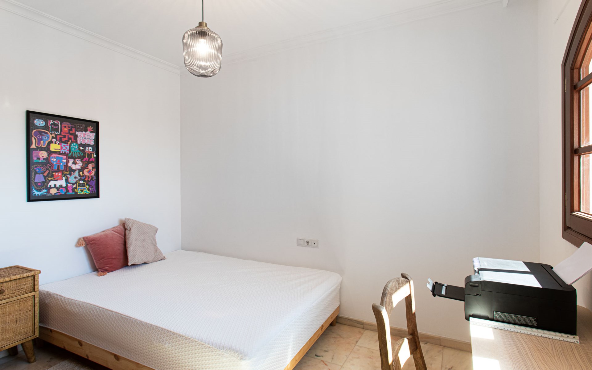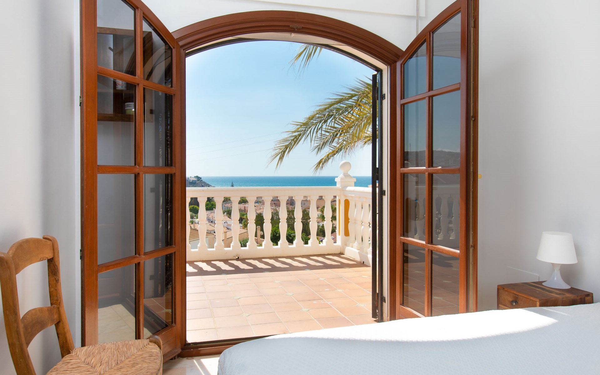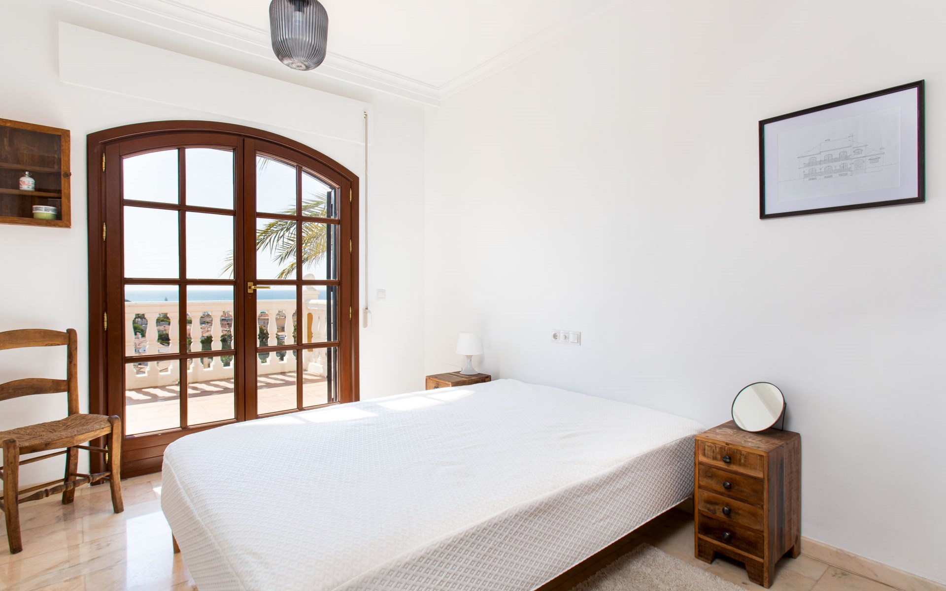 Cala del moral 2 km from Rincón de la Victoria: Beautiful, cosy single-family house "Fragata House", renovated in 2022. In the resort 350 m from the centre of Cala del moral, in a sunny position, 600 m from the sea. Private: garden with lawn, swimming pool angular (4 x 8 m, depth 105 - 230 cm, seasonal availability: 01.Mar. - 01.Dec.). Shower/WC in the pool area, table tennis, patio, garden furniture, barbecue. In the house: WiFi, central heating system, air conditioning, washing machine. Shop, supermarket 300 m, shopping centre 800 m, restaurant 500 m, bus stop "walking distance" 500 m, sandy beach 600 m. Golf course (18 hole) 4 km. Please note: no lift. The owner does not accept any youth groups.