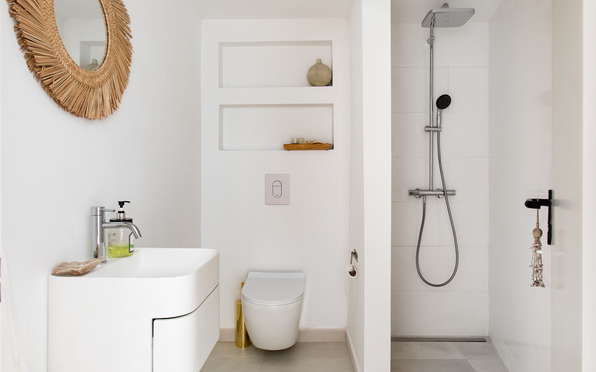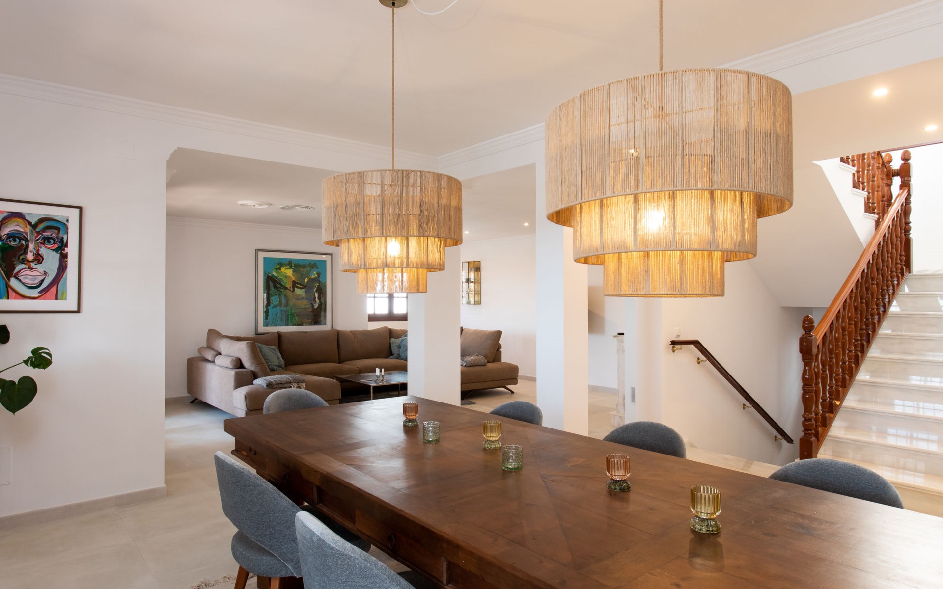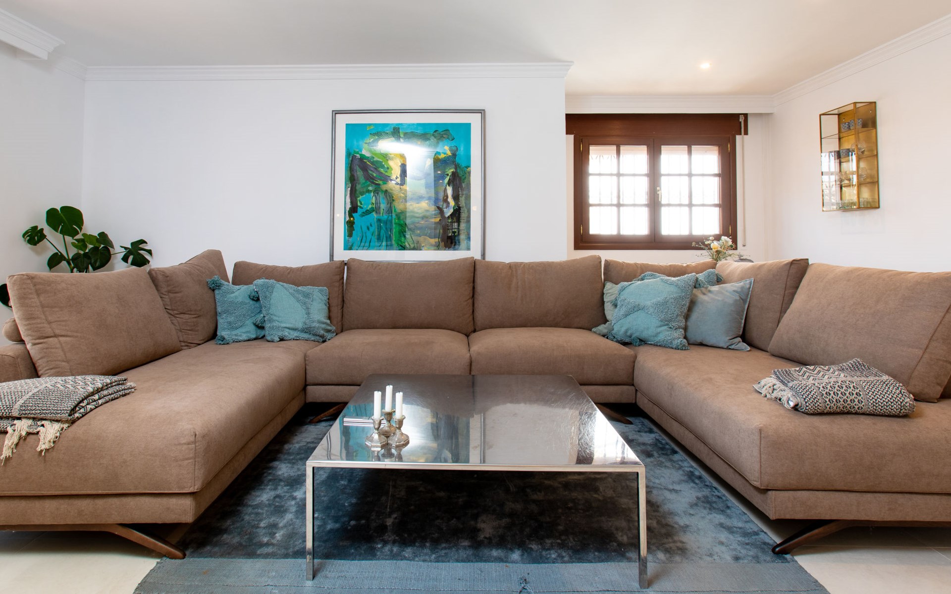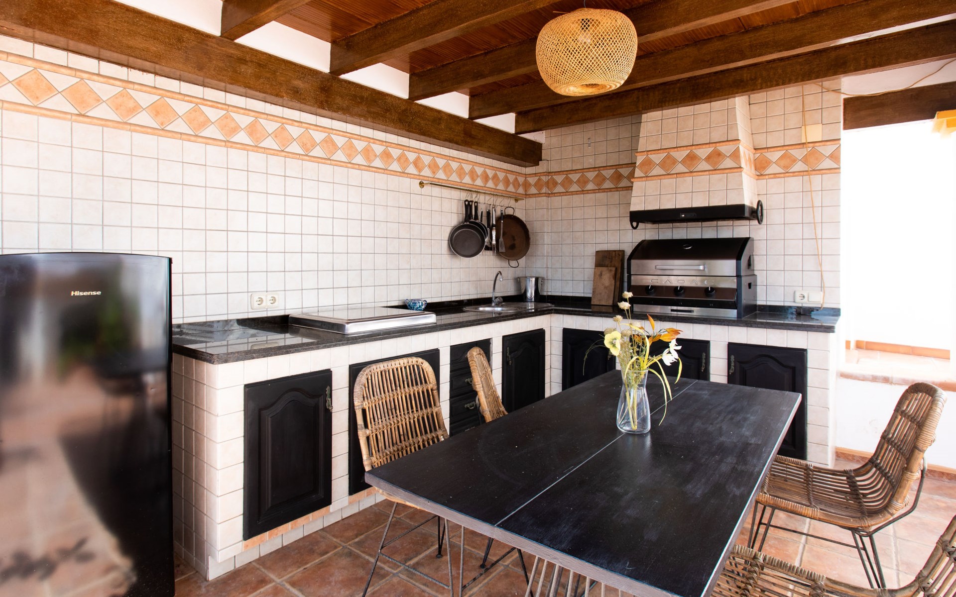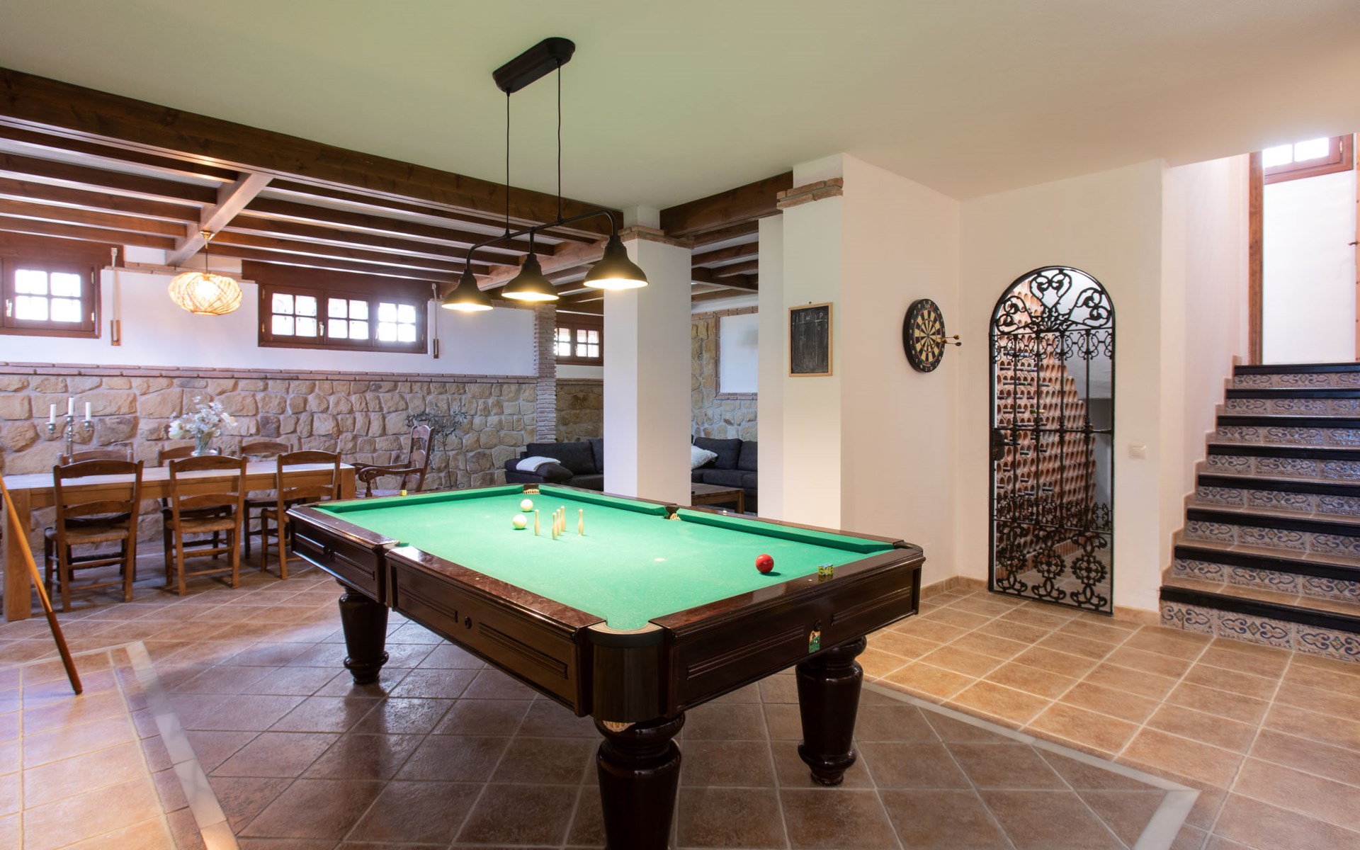 Cala del moral 2 km from Rincón de la Victoria: Beautiful, cosy single-family house "Fragata House", renovated in 2022. In the resort 350 m from the centre of Cala del moral, in a sunny position, 600 m from the sea. Private: garden with lawn, swimming pool angular (4 x 8 m, depth 105 - 230 cm, seasonal availability: 01.Mar. - 01.Dec.). Shower/WC in the pool area, table tennis, patio, garden furniture, barbecue. In the house: WiFi, central heating system, air conditioning, washing machine. Shop, supermarket 300 m, shopping centre 800 m, restaurant 500 m, bus stop "walking distance" 500 m, sandy beach 600 m. Golf course (18 hole) 4 km. Please note: no lift. The owner does not accept any youth groups.