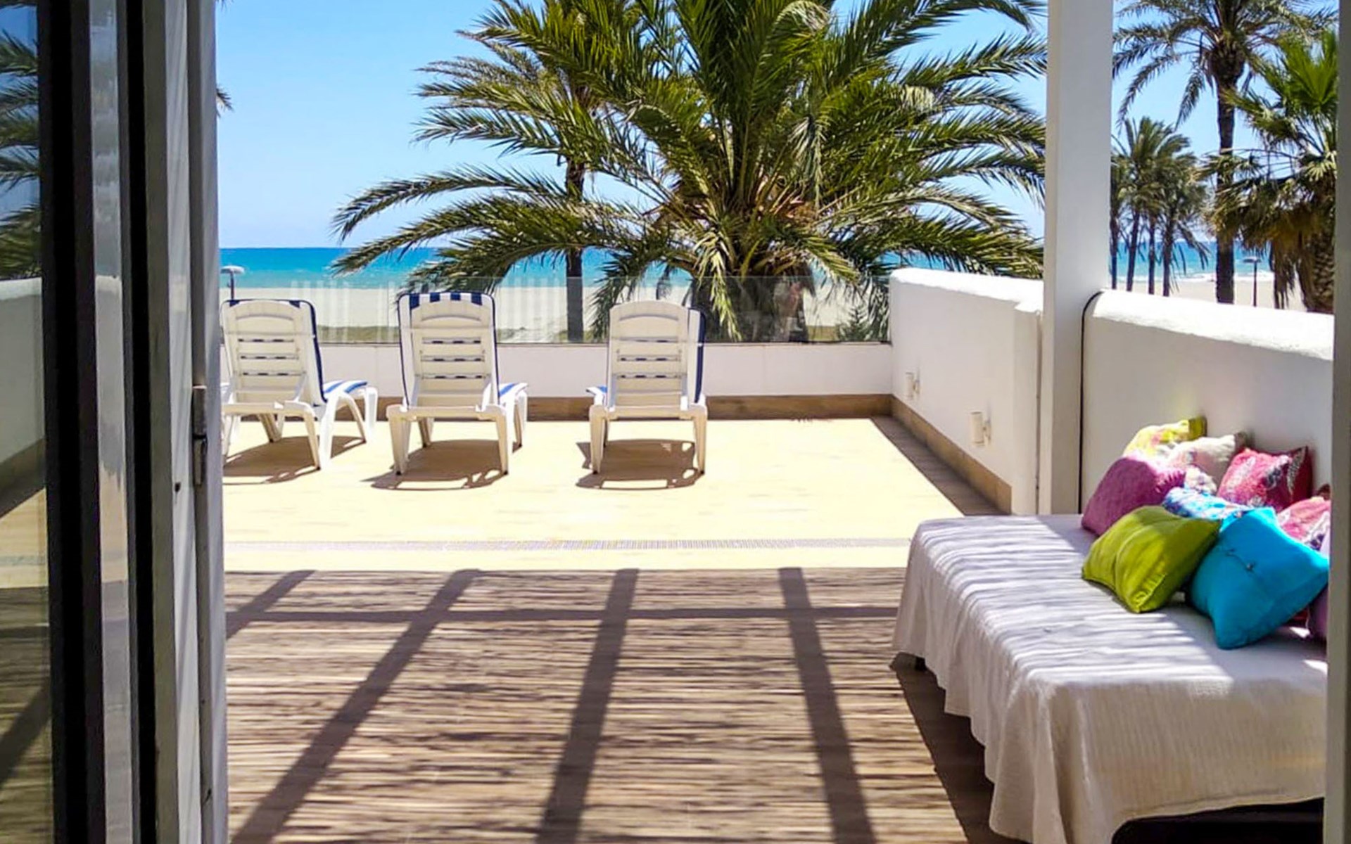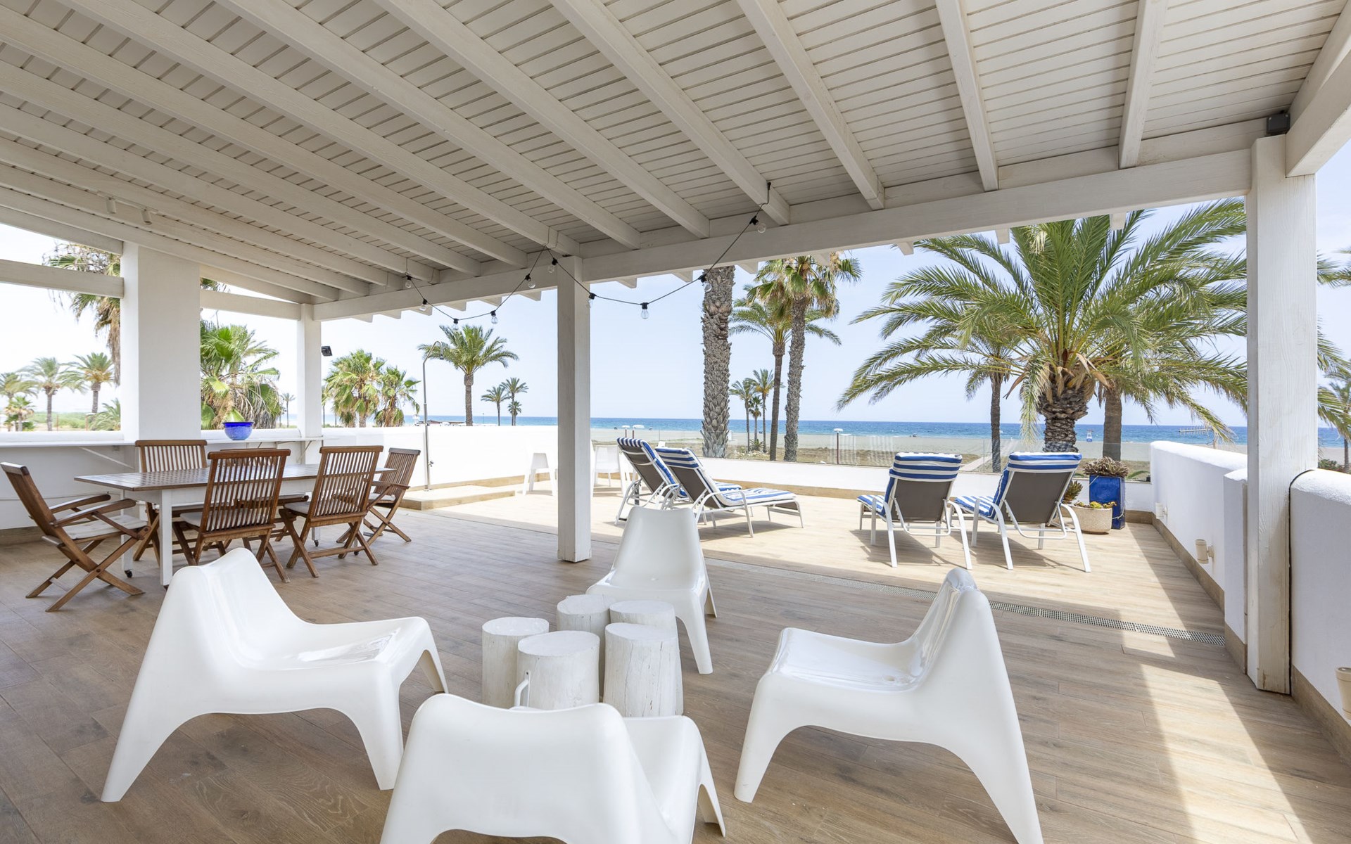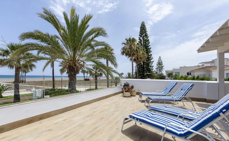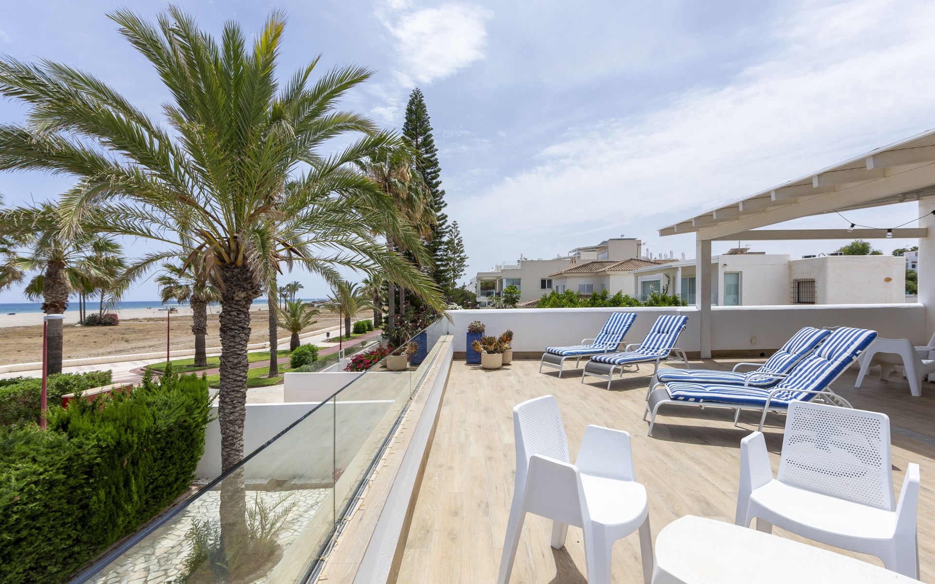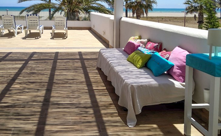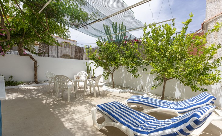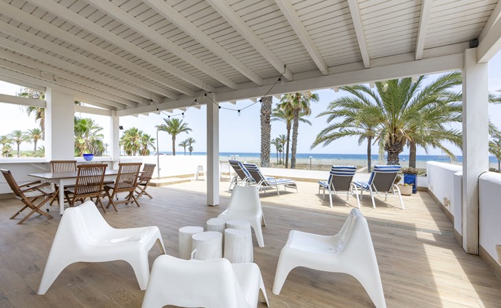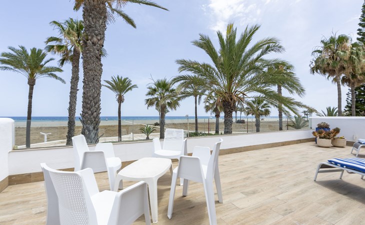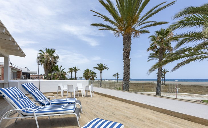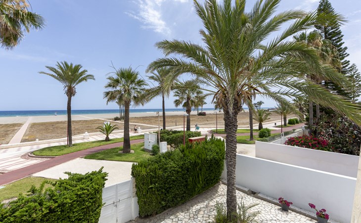 Large 2-family house "Los Frasquitos". In the resort Las Marinas de Vera, in a quiet, sunny position, 20 m from the sea, on the beach, road to cross. Private: small garden (fenced). Outdoor shower, single garage at the house, public parking on the road. Supermarket 1 km, restaurant, bar, café 200 m, bus stop 450 m, sandy beach "Playazo de Vera" 20 m. Sports harbour 1.5 km, golf course (18 hole) 7 km. Nearby attractions: Garrucha 800 m. Please note: no lift. Groups of teenagers on request only. Neighbourhood highly sensitive to noise. Quietness and good behaviour expected.