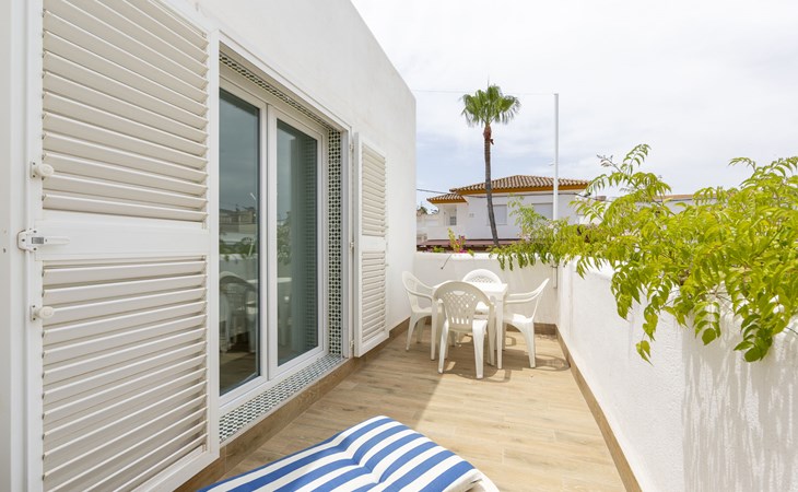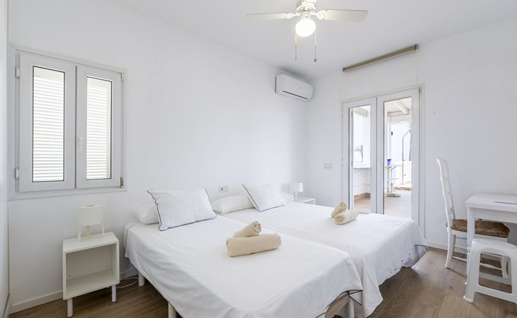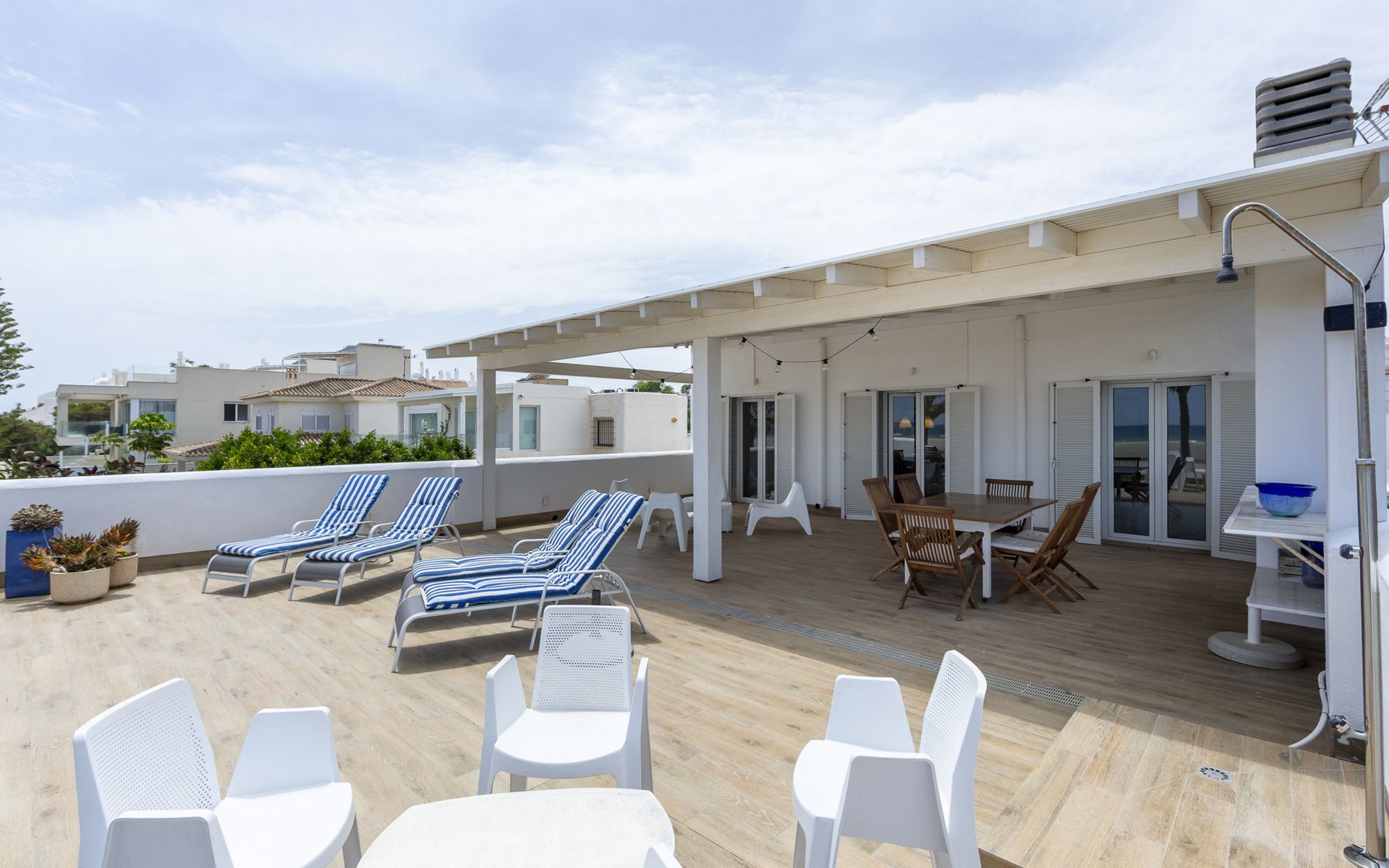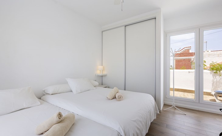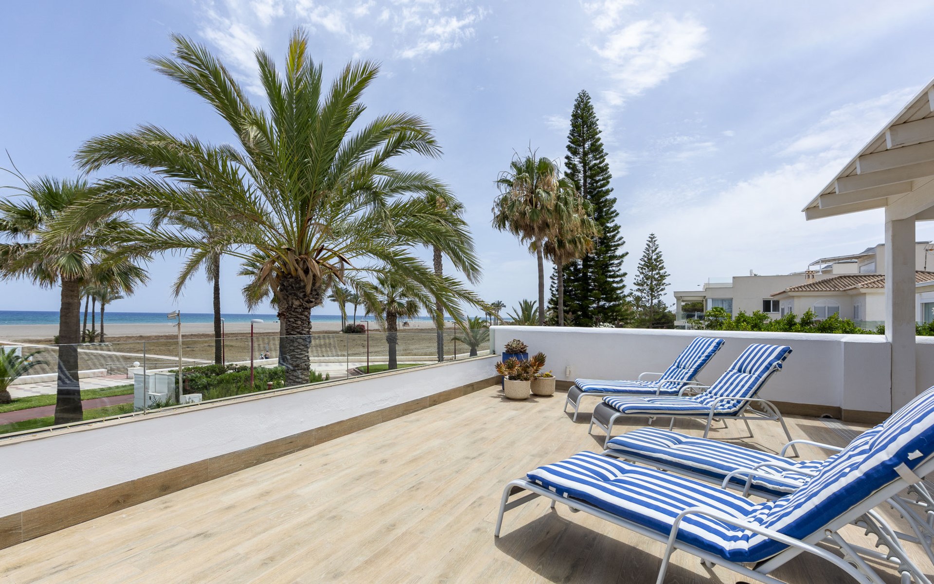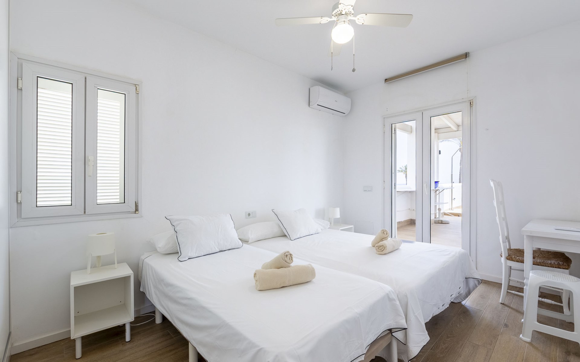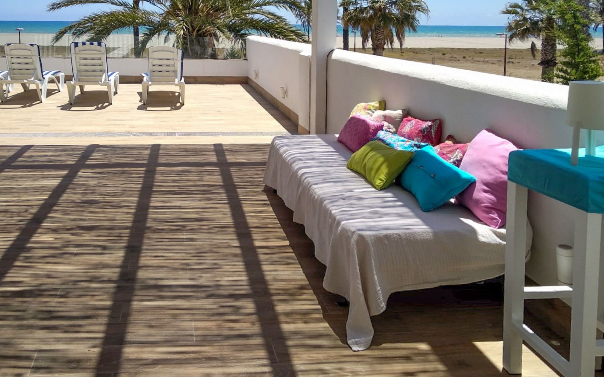 Large 2-family house "Los Frasquitos". In the resort Las Marinas de Vera, in a quiet, sunny position, 20 m from the sea, on the beach, road to cross. Private: small garden (fenced). Outdoor shower, single garage at the house, public parking on the road. Supermarket 1 km, restaurant, bar, café 200 m, bus stop 450 m, sandy beach "Playazo de Vera" 20 m. Sports harbour 1.5 km, golf course (18 hole) 7 km. Nearby attractions: Garrucha 800 m. Please note: no lift. Groups of teenagers on request only. Neighbourhood highly sensitive to noise. Quietness and good behaviour expected.