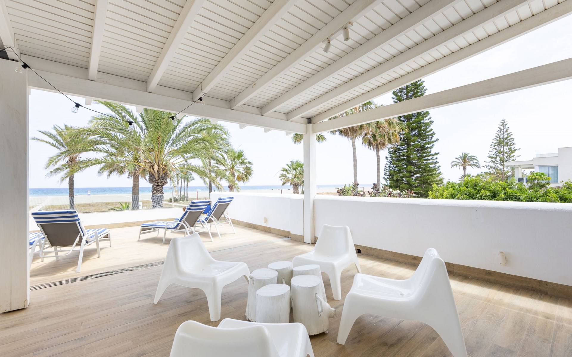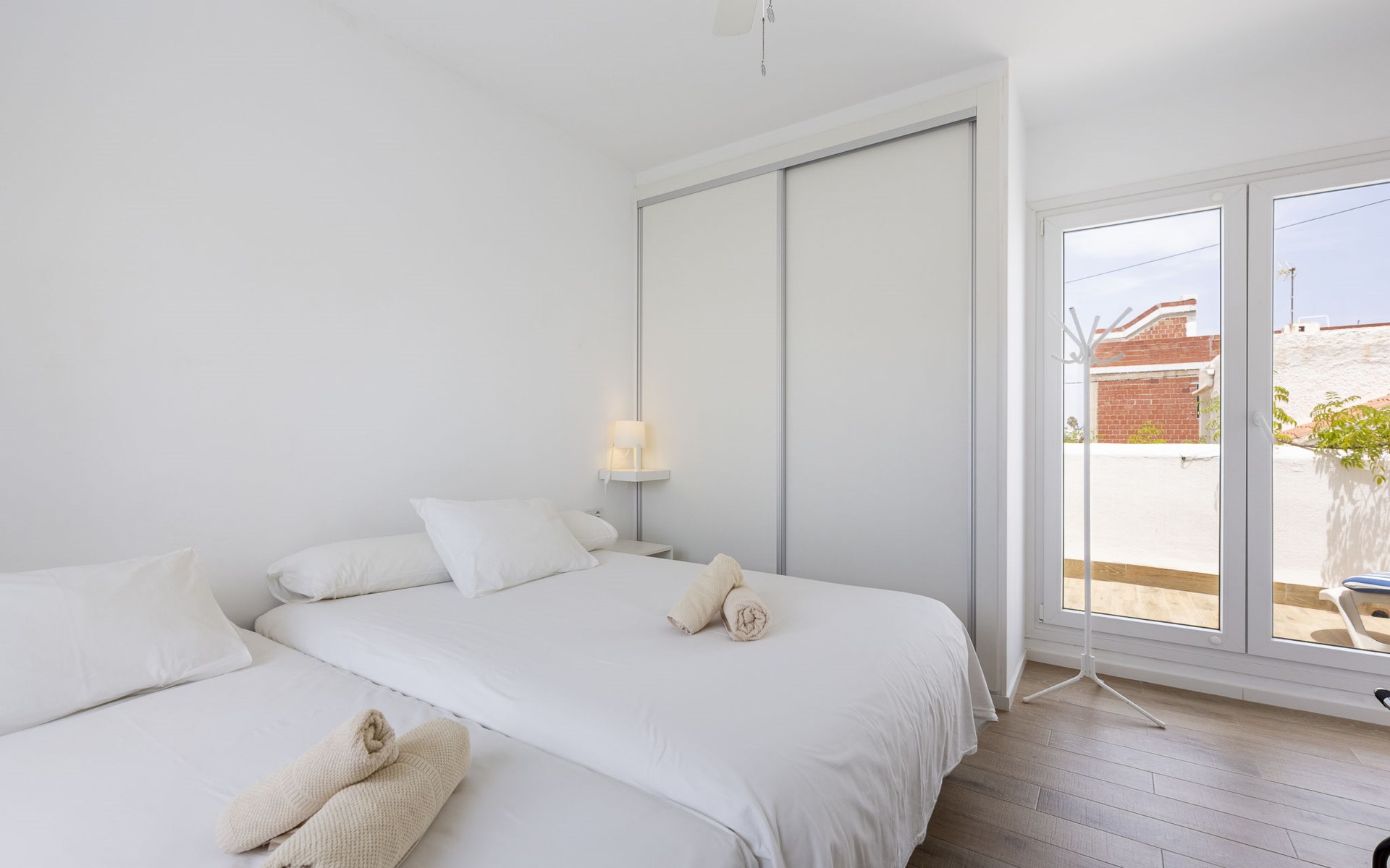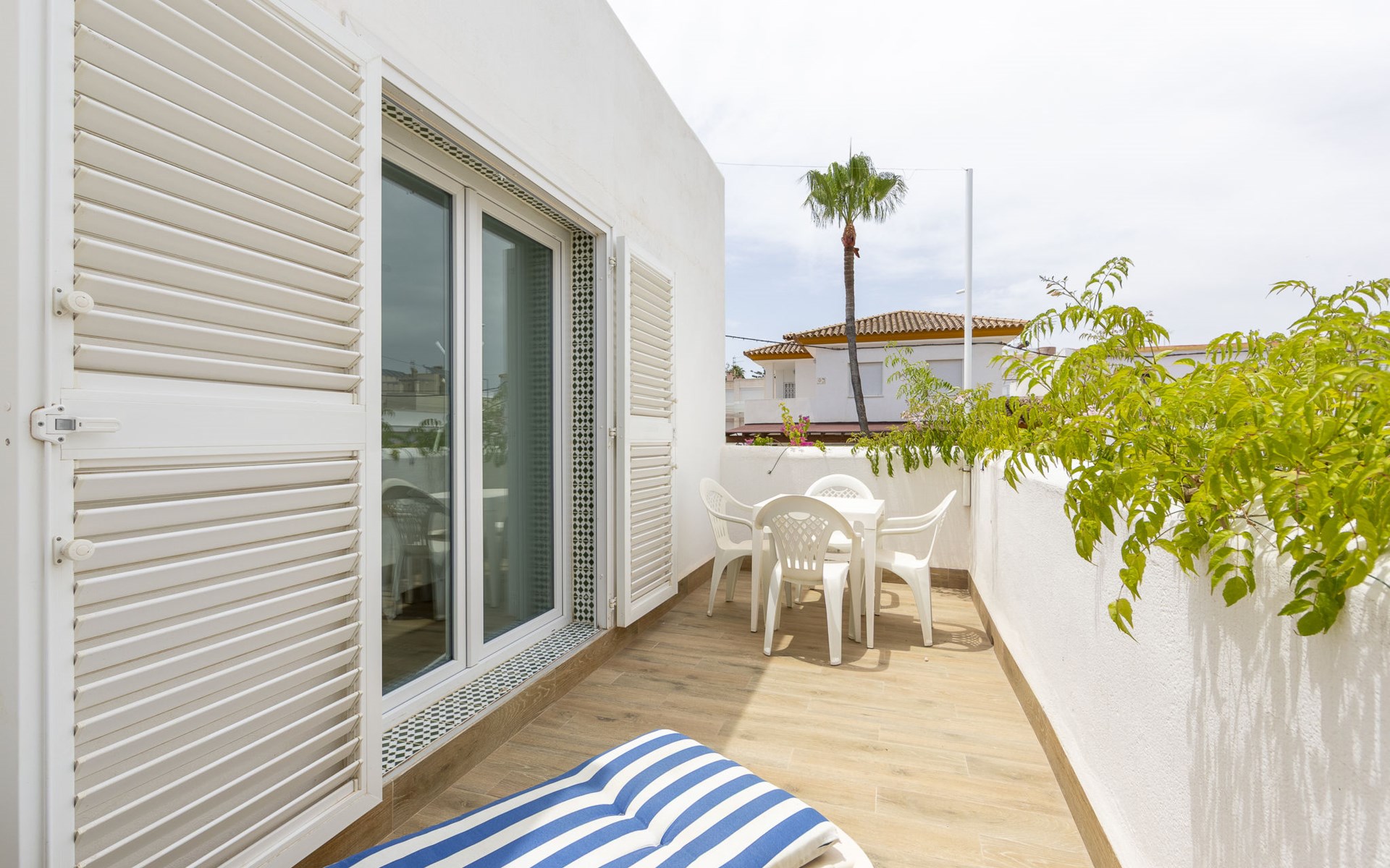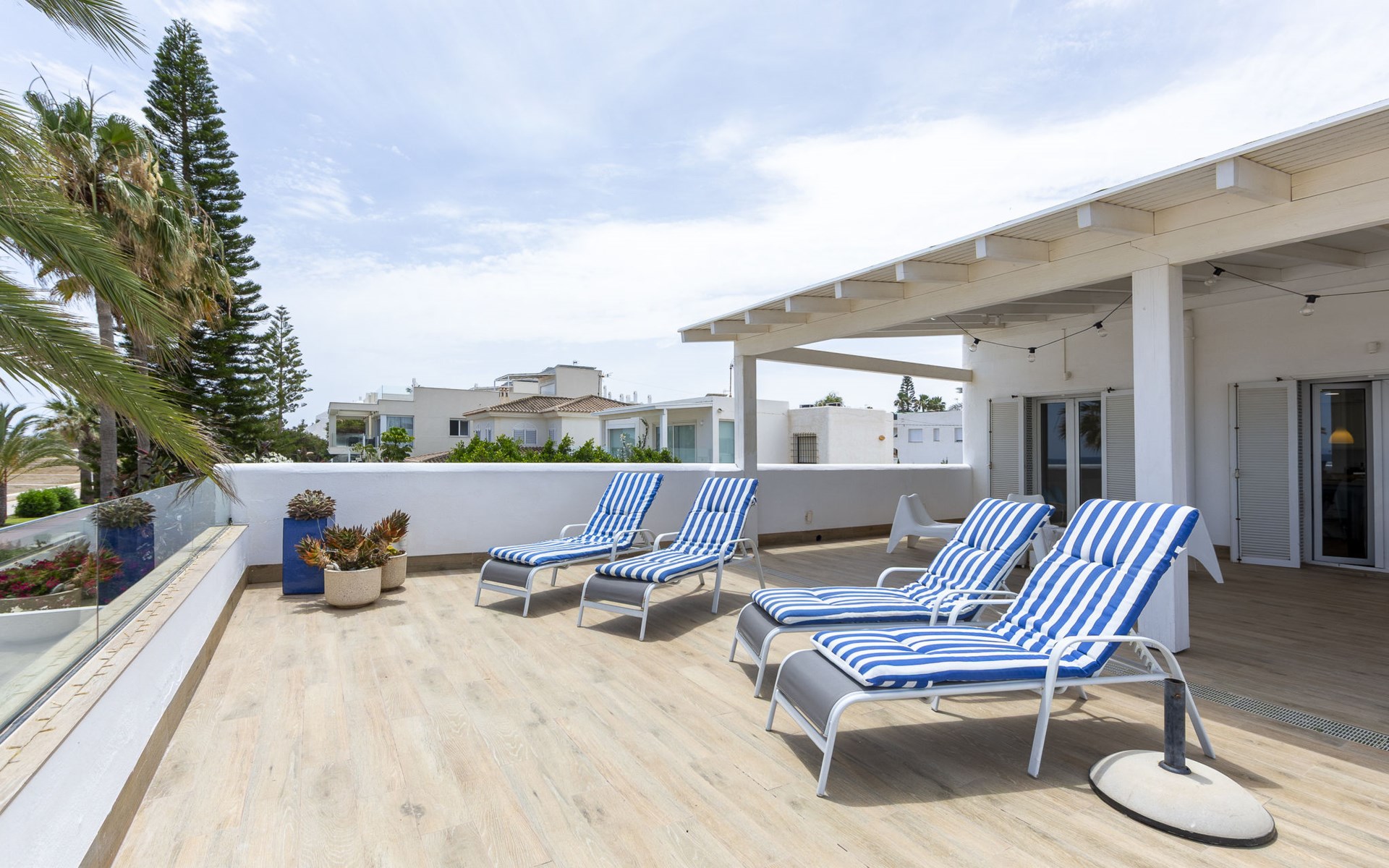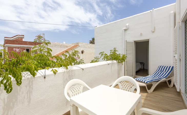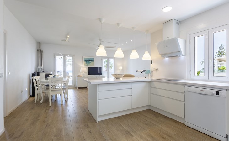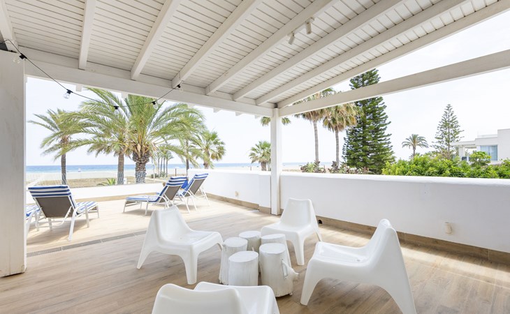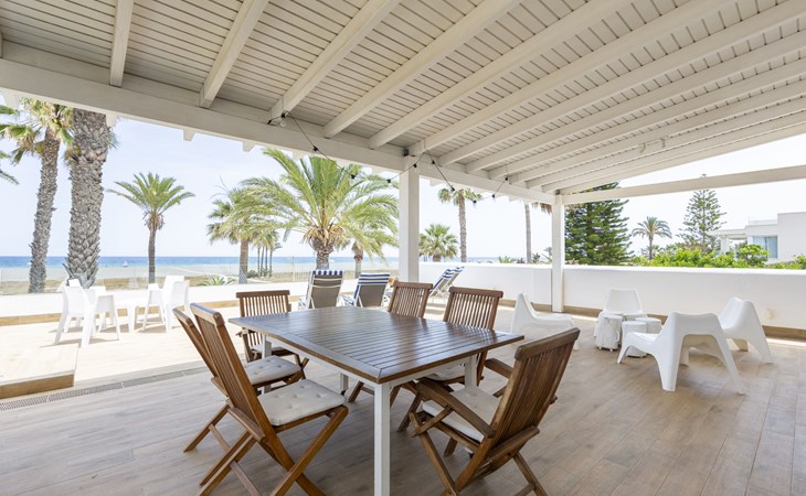 Large 2-family house "Los Frasquitos". In the resort Las Marinas de Vera, in a quiet, sunny position, 20 m from the sea, on the beach, road to cross. Private: small garden (fenced). Outdoor shower, single garage at the house, public parking on the road. Supermarket 1 km, restaurant, bar, café 200 m, bus stop 450 m, sandy beach "Playazo de Vera" 20 m. Sports harbour 1.5 km, golf course (18 hole) 7 km. Nearby attractions: Garrucha 800 m. Please note: no lift. Groups of teenagers on request only. Neighbourhood highly sensitive to noise. Quietness and good behaviour expected.