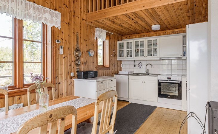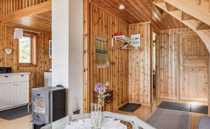 Cosy timber house "Kasen Sjökanten". 12 km from the centre of Färgelanda, 9 km from the centre of Stigen, 19 km from the centre of Högsäter, in a secluded, sunny position, on the lake. Private: natural state property 3'000 m2 with trees. Bathing jetty, bathing place. In the complex: sauna (extra). Available: canoe, boat (extra). Parking (for 2 cars) on the premises. Shop 9 km, supermarket 12 km, bus stop 2.3 km, railway station "Uddevalla" 28 km, ferry "Helsingborg" 325 km, grass beach 15 m, lake Långhalmen 15 m. Golf course (18 hole) 15 km, fishing possibilities 15 m. Please note: groups of teenagers on request only. The owner does not accept any groups. Private mooring. Neighbourhood highly sensitive to noise. Quietness and good behaviour expected.