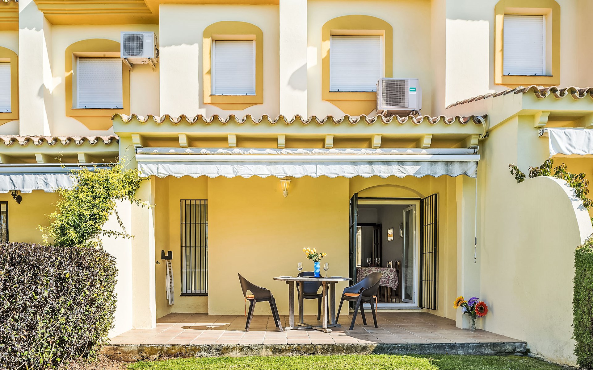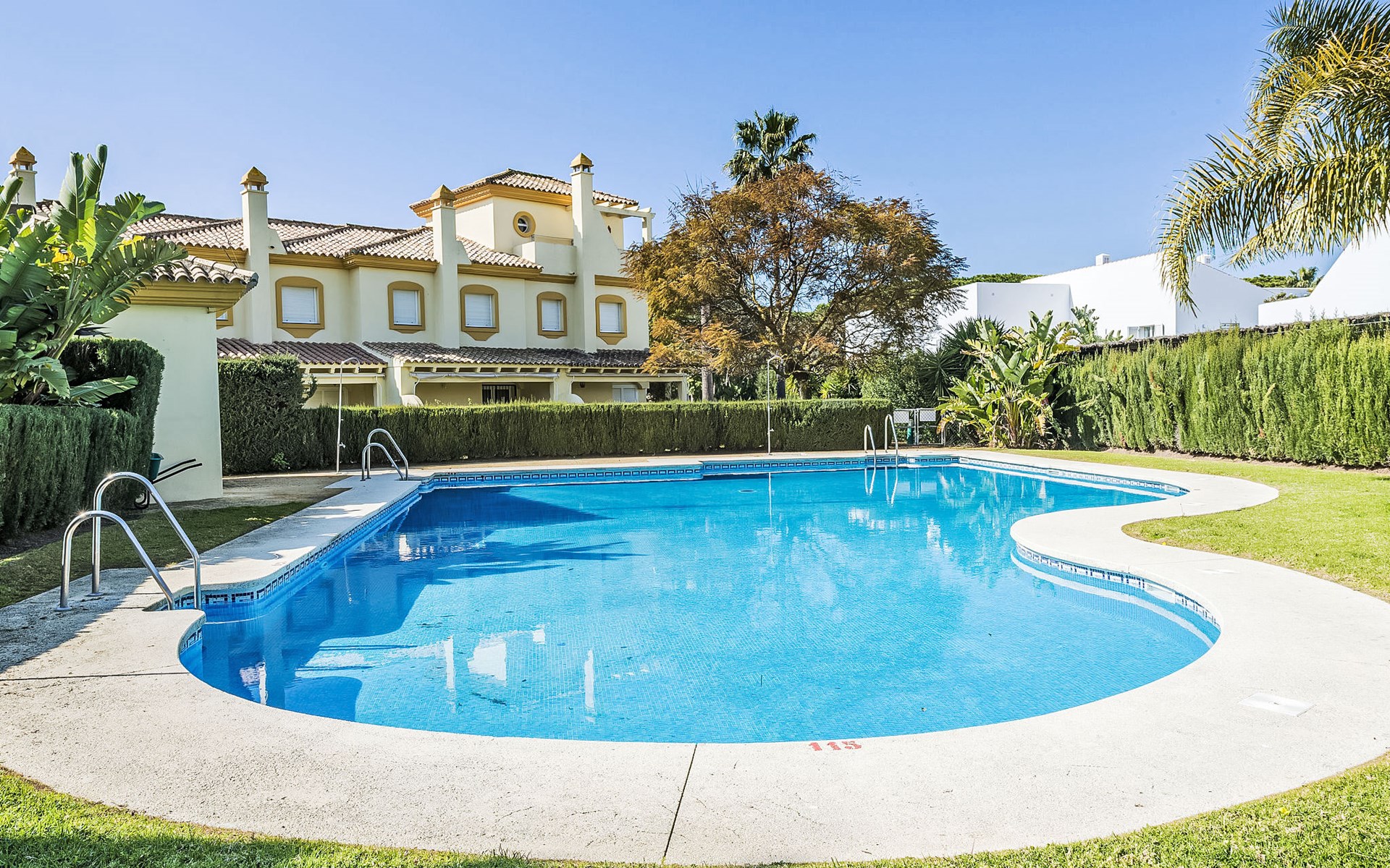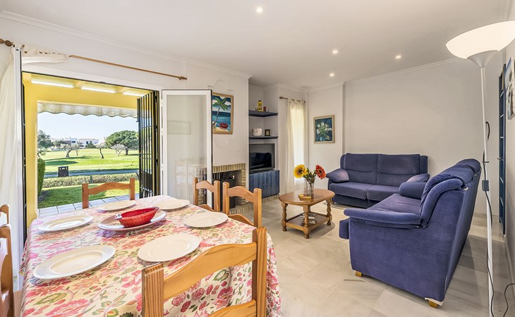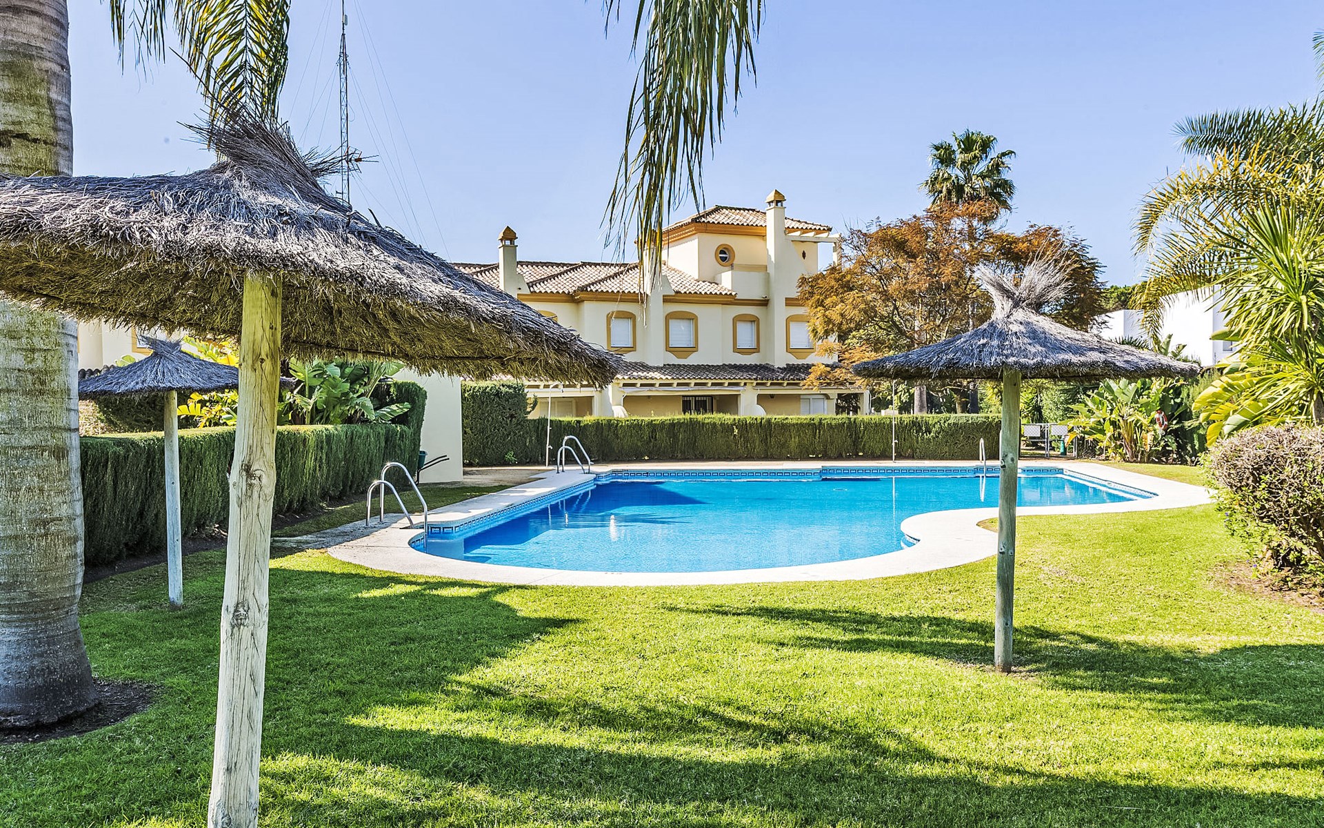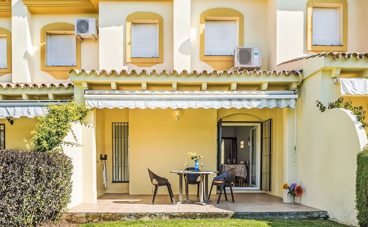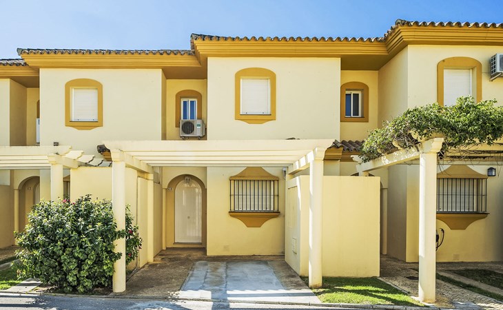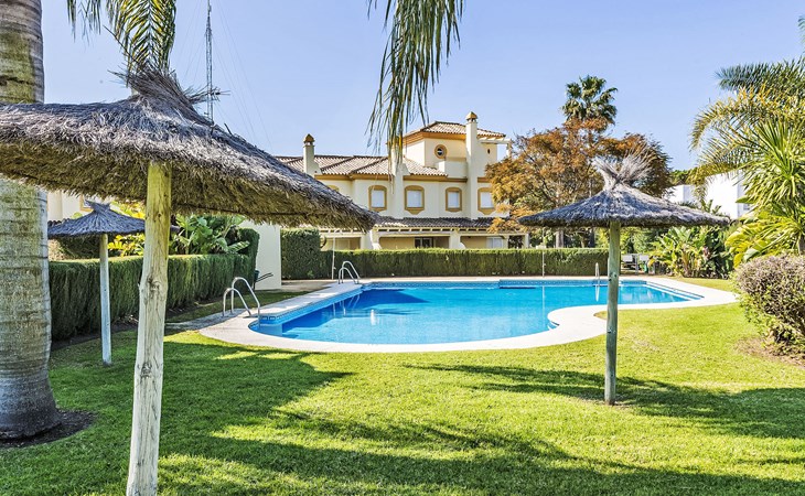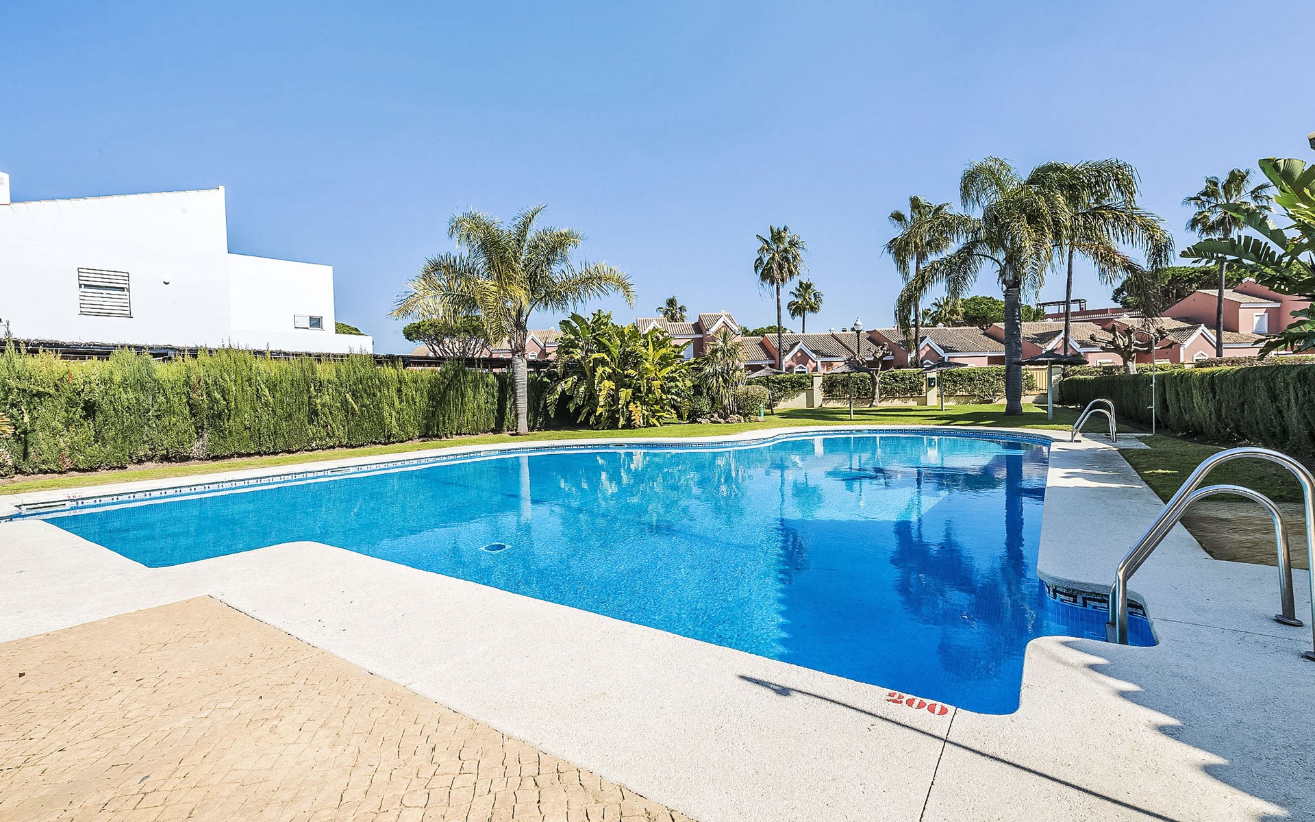Novo Sancti-Petri: Part of the luxury urbanisation Novo Sancti-Petri, approx 122.000 m2, is situated within the famous "Novo Sancti-Petri" Golf Club, which boasts 27 hole golf and wide roads. Terraced house "Brisamar - Novo Sancti Petri". 4 km from the centre of Chiclana, 1 km from the sea. For shared use: garden with lawn, swimming pool (15 x 7 m, depth 80 - 270 cm, seasonal availability: 15.Jun. - 15.Sep.). Outdoor shower. Shopping centre 1 km, bus stop 190 m, railway station 40 km, sandy beach 1 km. Golf course (18 hole) 2.5 km, riding stable 300 m. Please note: the complex has night security. Bicycle lanes in all the roads of the urbanisation.