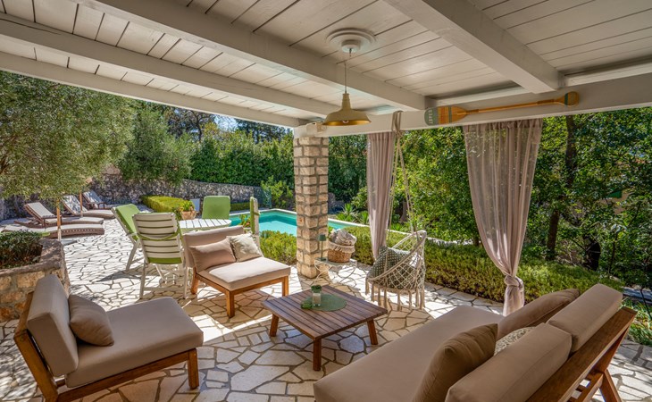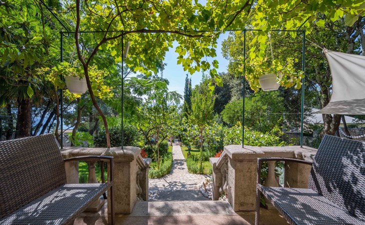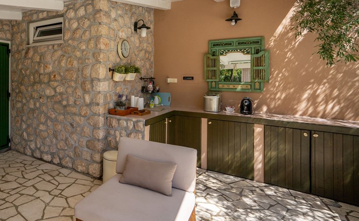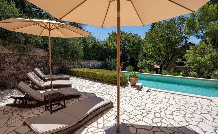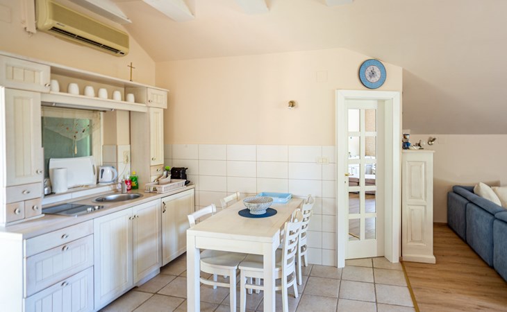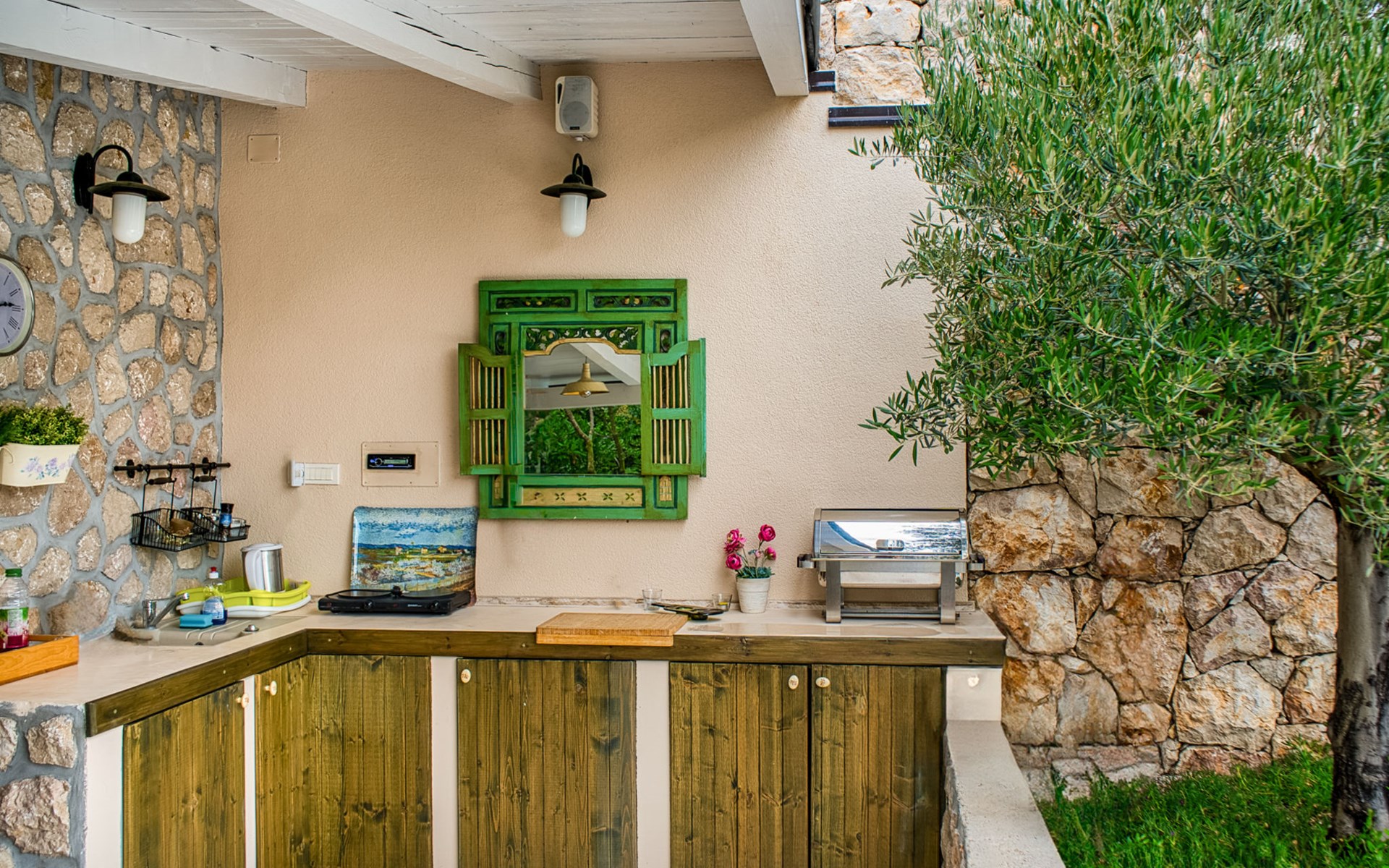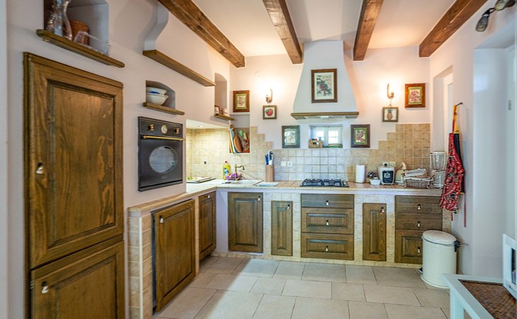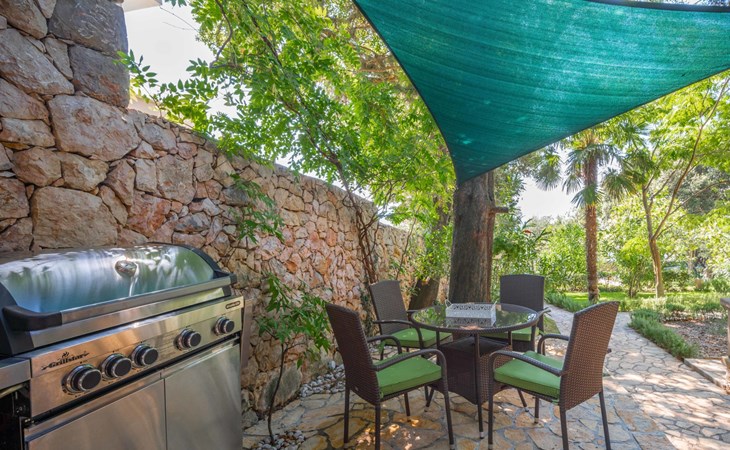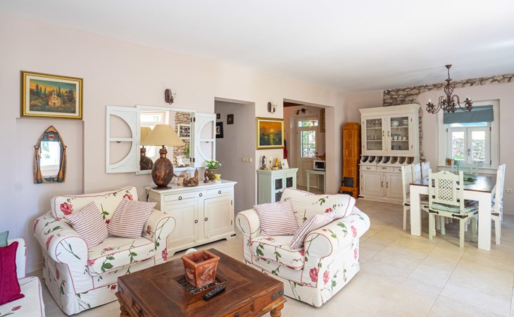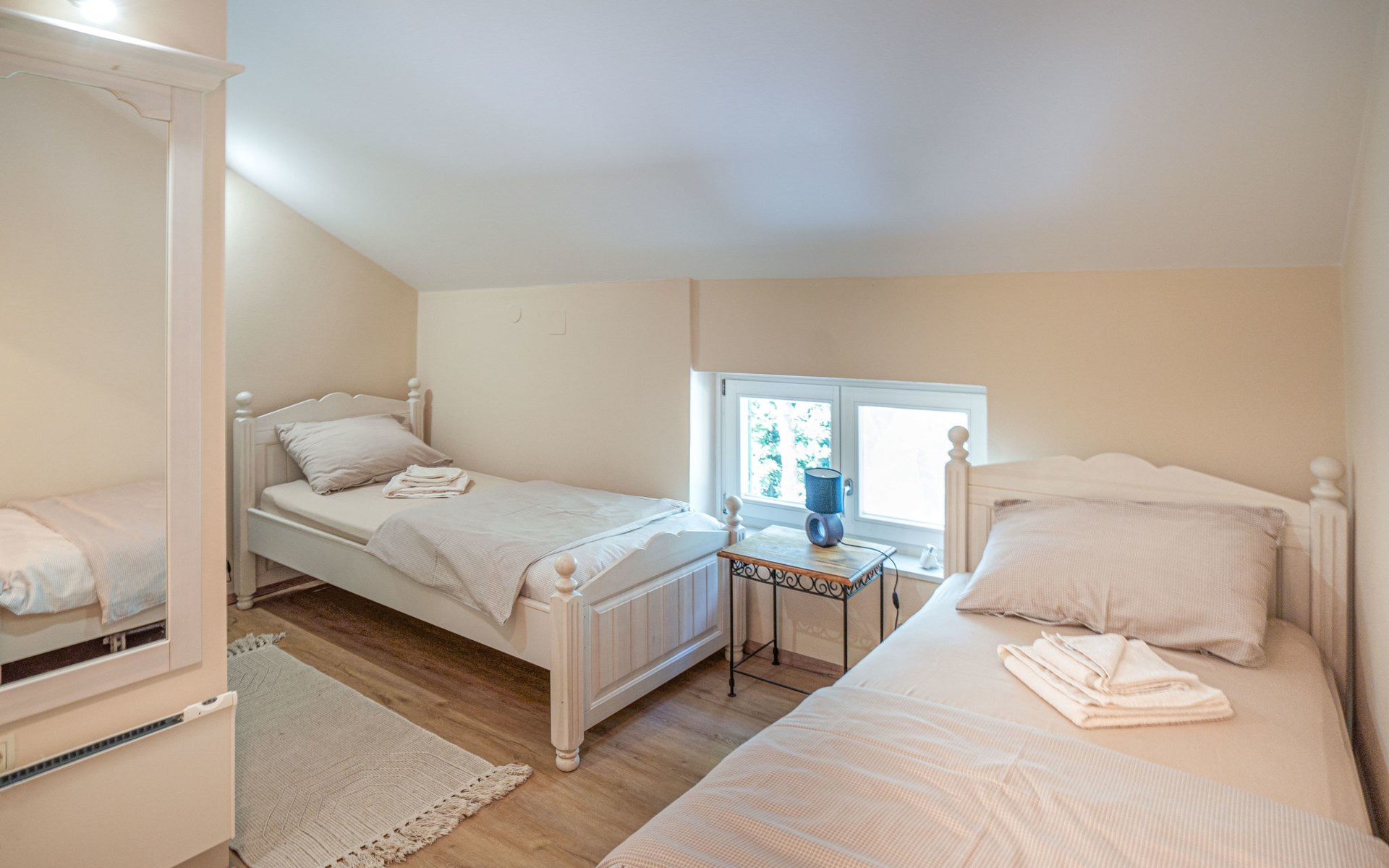Single-family house "Villa Mo-Re", 2 storeys. 750 m from the centre of Novi Vinodolski, in a quiet, sunny position, 20 m from the sea, 20 m from the beach, in the countryside. Private: property 1'800 m2 (fenced), garden with lawn 300 m2 trees, swimming pool angular, heated (4 x 8 m, depth 140 cm, seasonal availability: 20.Apr. - 15.Oct.) with internal staircase. Outdoor shower, terrace (25 m2), garden furniture, barbecue (swing, sandbox). In the house: internet access, sauna, washing machine. Parking at the house on the premises. Supermarket 400 m, restaurant 130 m, bus stop 1 km, sandy beach 1.2 km pebble beach 1.2 km, rocky beach 20 m, public bathing area 550 m, concrete beach 20 m. Marina 300 m, tennis 1.1 km. Sauna at small, separate house on the property, 10 m from the pool. The house consists of 2 apartments rented as one unit. 2 massages (included in the price) on request. By groups of young people double deposit is requested on arrival. Property completely fenced, providing safety and privacy.