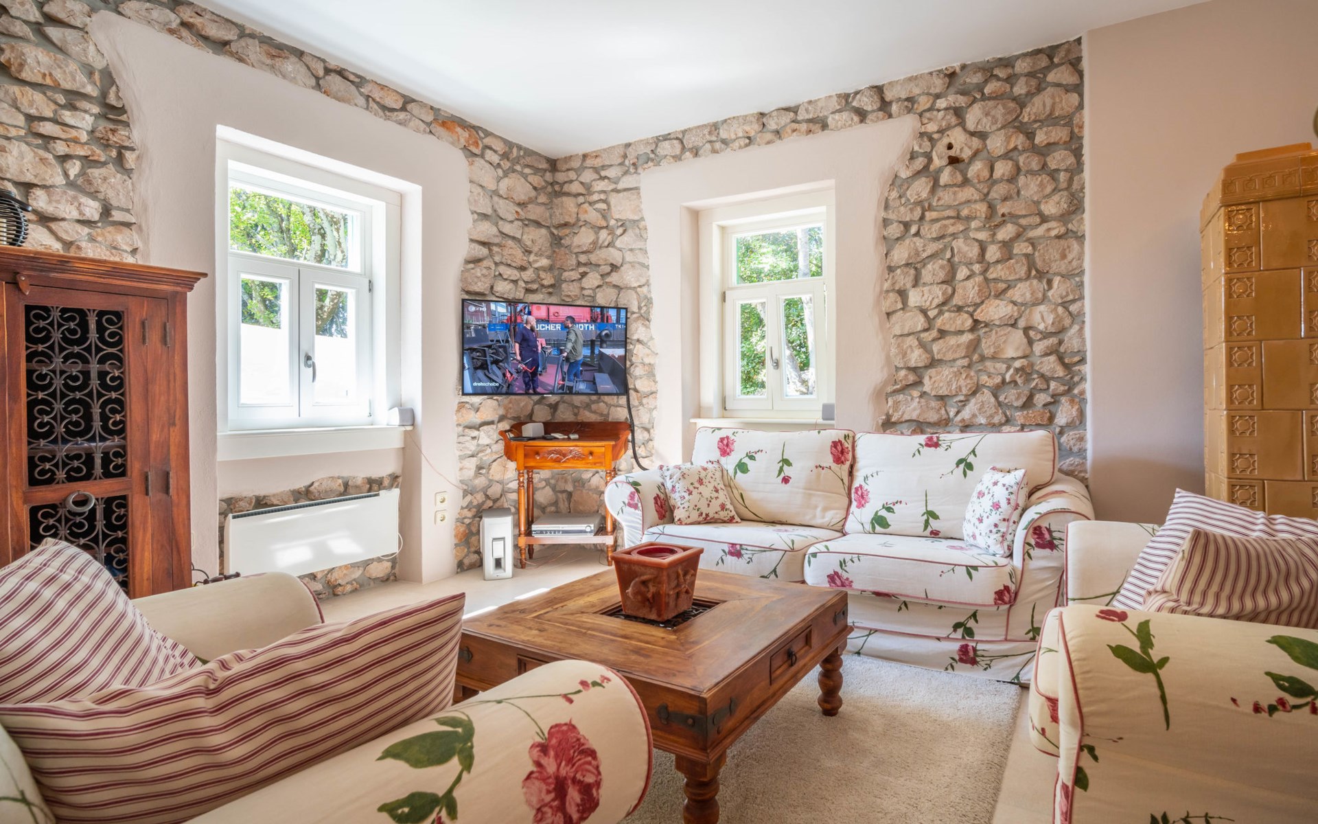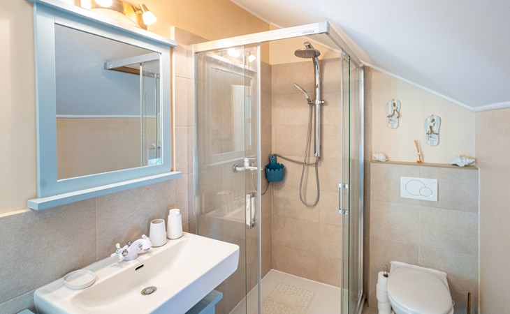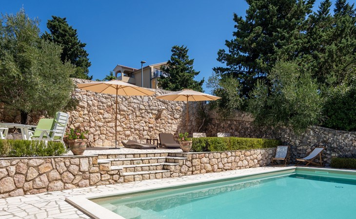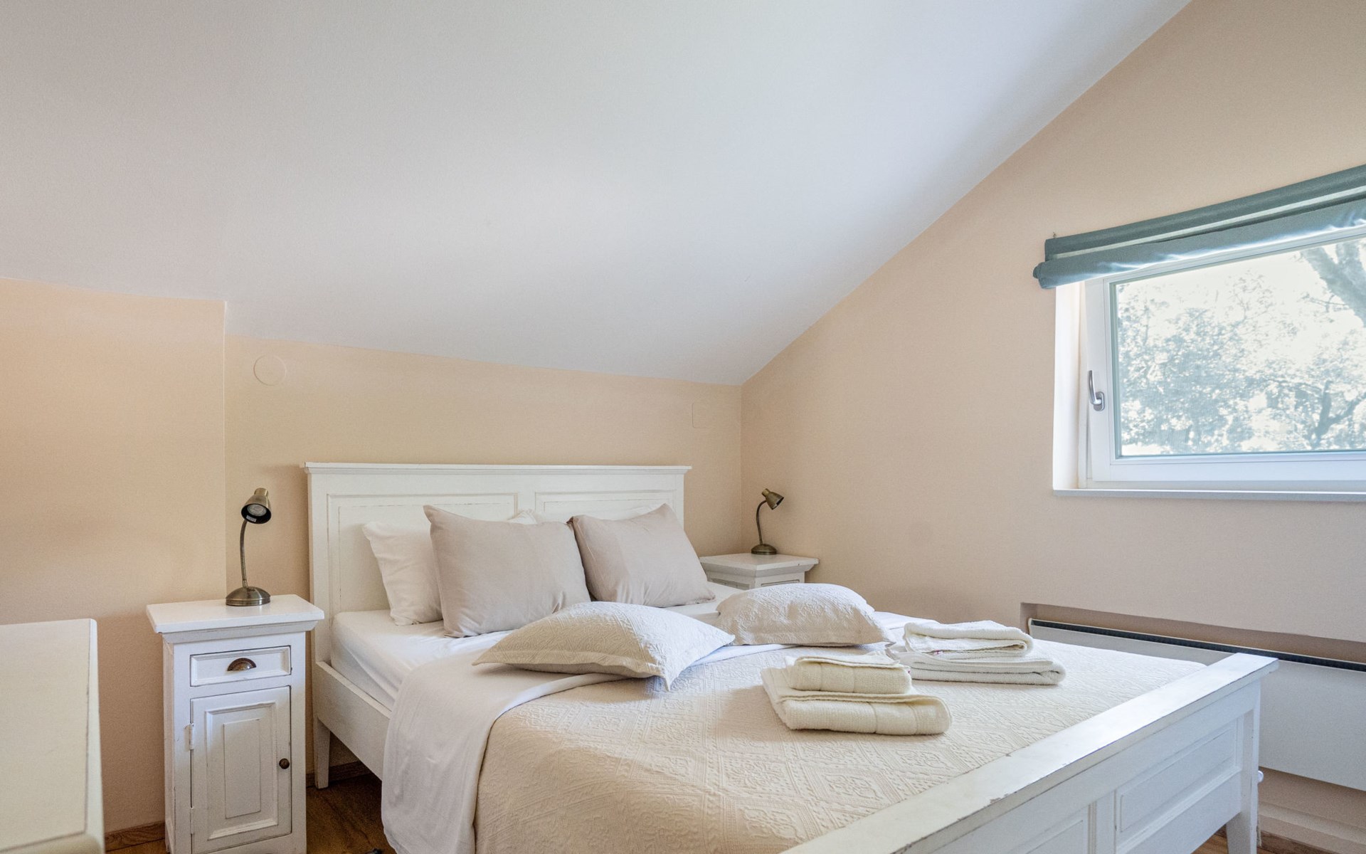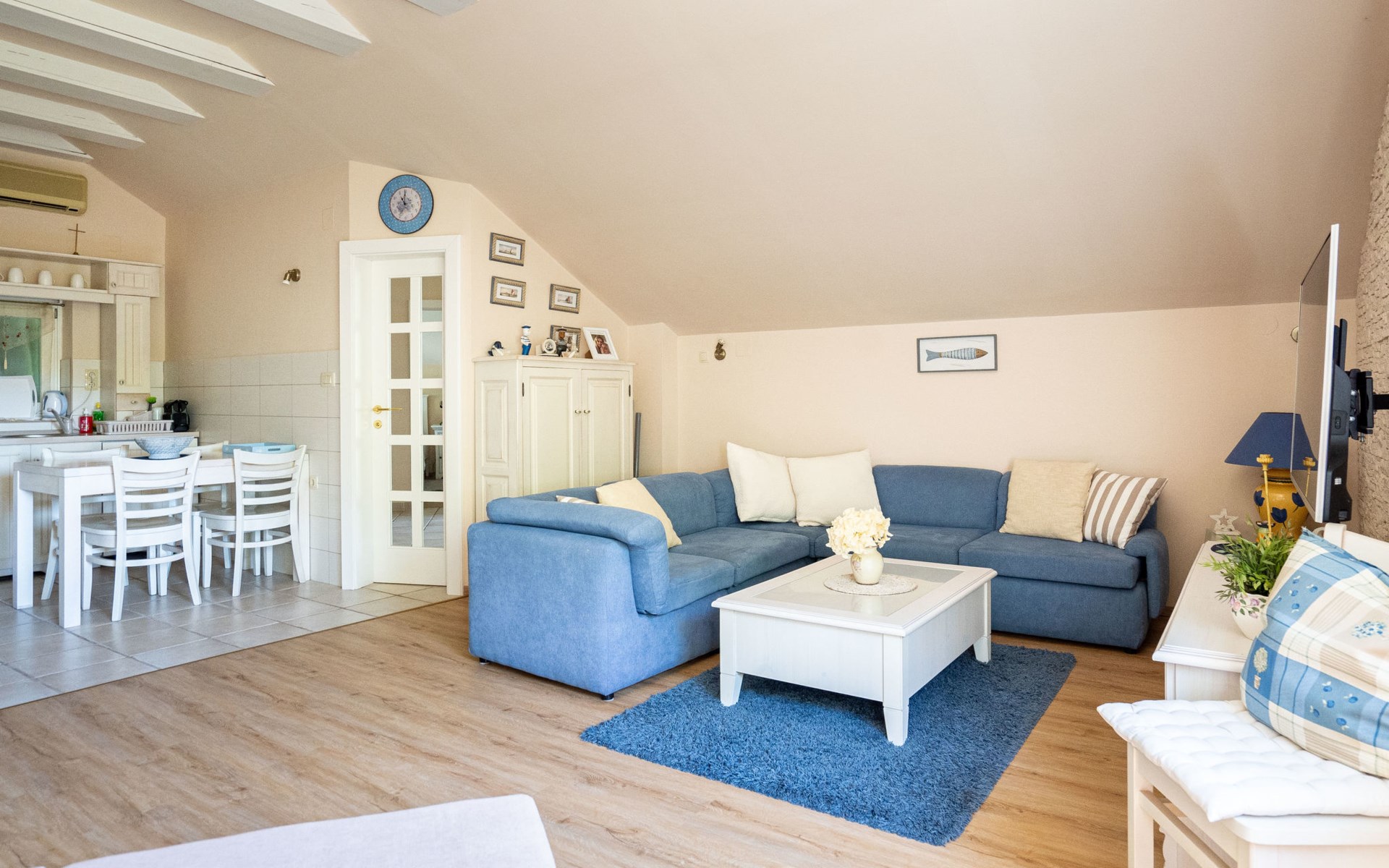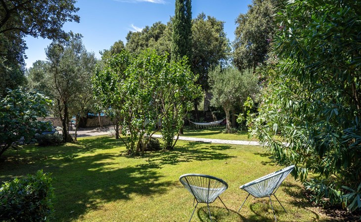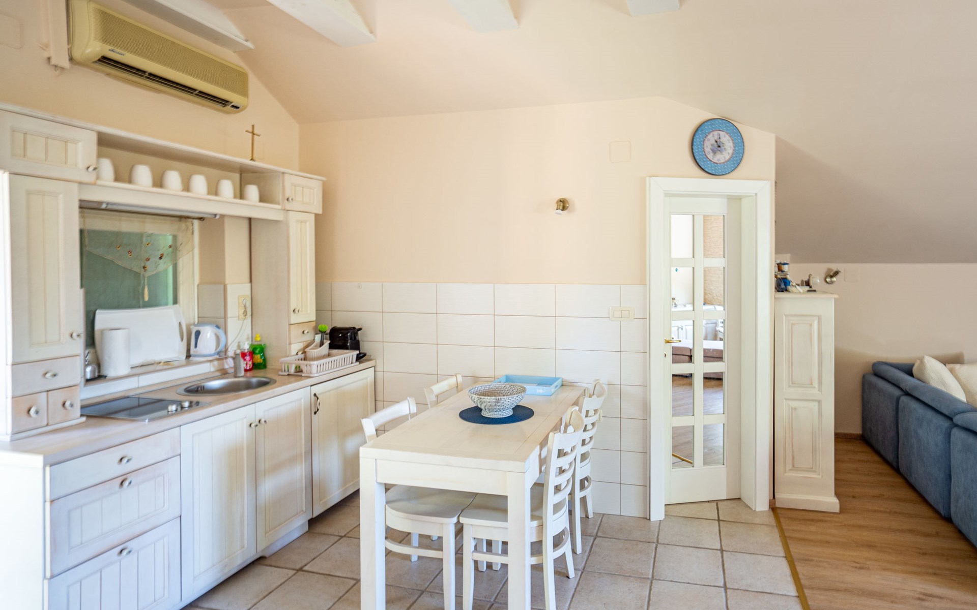 Single-family house "Villa Mo-Re", 2 storeys. 750 m from the centre of Novi Vinodolski, in a quiet, sunny position, 20 m from the sea, 20 m from the beach, in the countryside. Private: property 1'800 m2 (fenced), garden with lawn 300 m2 trees, swimming pool angular, heated (4 x 8 m, depth 140 cm, seasonal availability: 20.Apr. - 15.Oct.) with internal staircase. Outdoor shower, terrace (25 m2), garden furniture, barbecue (swing, sandbox). In the house: internet access, sauna, washing machine. Parking at the house on the premises. Supermarket 400 m, restaurant 130 m, bus stop 1 km, sandy beach 1.2 km pebble beach 1.2 km, rocky beach 20 m, public bathing area 550 m, concrete beach 20 m. Marina 300 m, tennis 1.1 km. Sauna at small, separate house on the property, 10 m from the pool. The house consists of 2 apartments rented as one unit. 2 massages (included in the price) on request. By groups of young people double deposit is requested on arrival. Property completely fenced, providing safety and privacy.