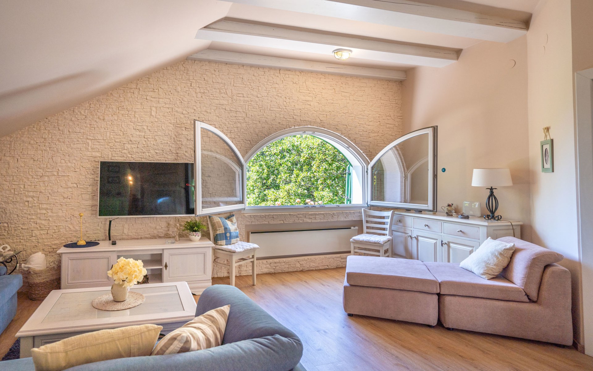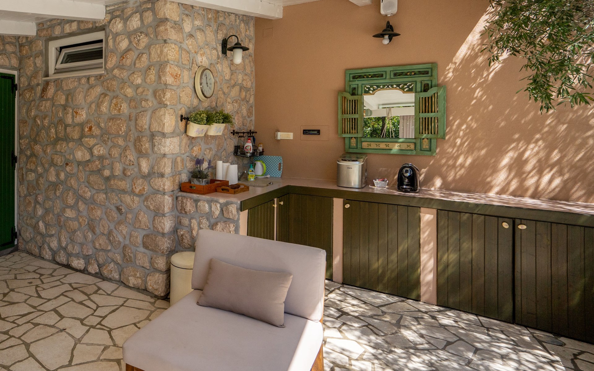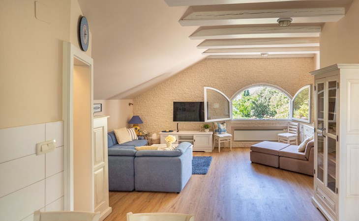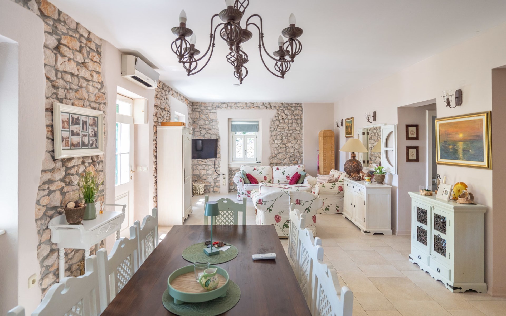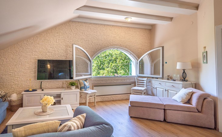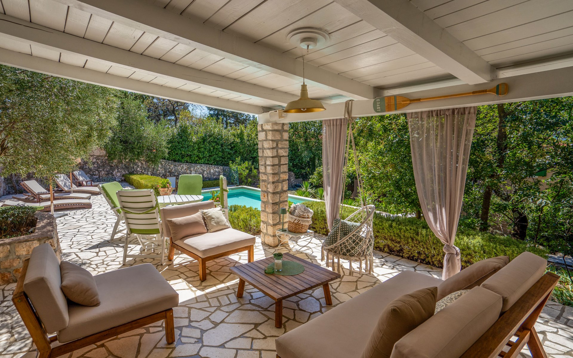 Single-family house "Villa Mo-Re", 2 storeys. 750 m from the centre of Novi Vinodolski, in a quiet, sunny position, 20 m from the sea, 20 m from the beach, in the countryside. Private: property 1'800 m2 (fenced), garden with lawn 300 m2 trees, swimming pool angular, heated (4 x 8 m, depth 140 cm, seasonal availability: 20.Apr. - 15.Oct.) with internal staircase. Outdoor shower, terrace (25 m2), garden furniture, barbecue (swing, sandbox). In the house: internet access, sauna, washing machine. Parking at the house on the premises. Supermarket 400 m, restaurant 130 m, bus stop 1 km, sandy beach 1.2 km pebble beach 1.2 km, rocky beach 20 m, public bathing area 550 m, concrete beach 20 m. Marina 300 m, tennis 1.1 km. Sauna at small, separate house on the property, 10 m from the pool. The house consists of 2 apartments rented as one unit. 2 massages (included in the price) on request. By groups of young people double deposit is requested on arrival. Property completely fenced, providing safety and privacy.