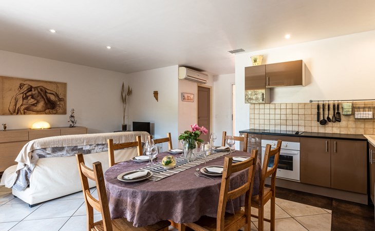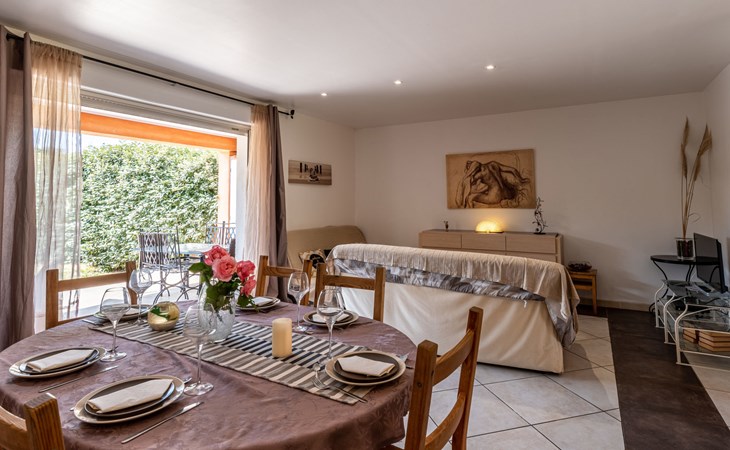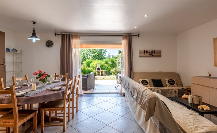 Beautiful villa "Gelormini", surrounded by trees and fields. 3 apartments in the property. 4 km from the centre of Ghisonaccia, 2 km from the centre of Migliacciaru, outside the resort, 57 km from the centre of Porto-Vecchio, in a sunny position, 4 km from the sea, in the countryside. For shared use: property 1'000 m2 with plants and trees, natural garden, meadow, swimming pool (14 x 7 m, seasonal availability: 01.May. - 30.Sep.). Outdoor shower, terrace, parking on the premises. Shop 2 km, supermarket 4 km, bus stop 4 km, sandy beach 4 km. Please note: car recommended.