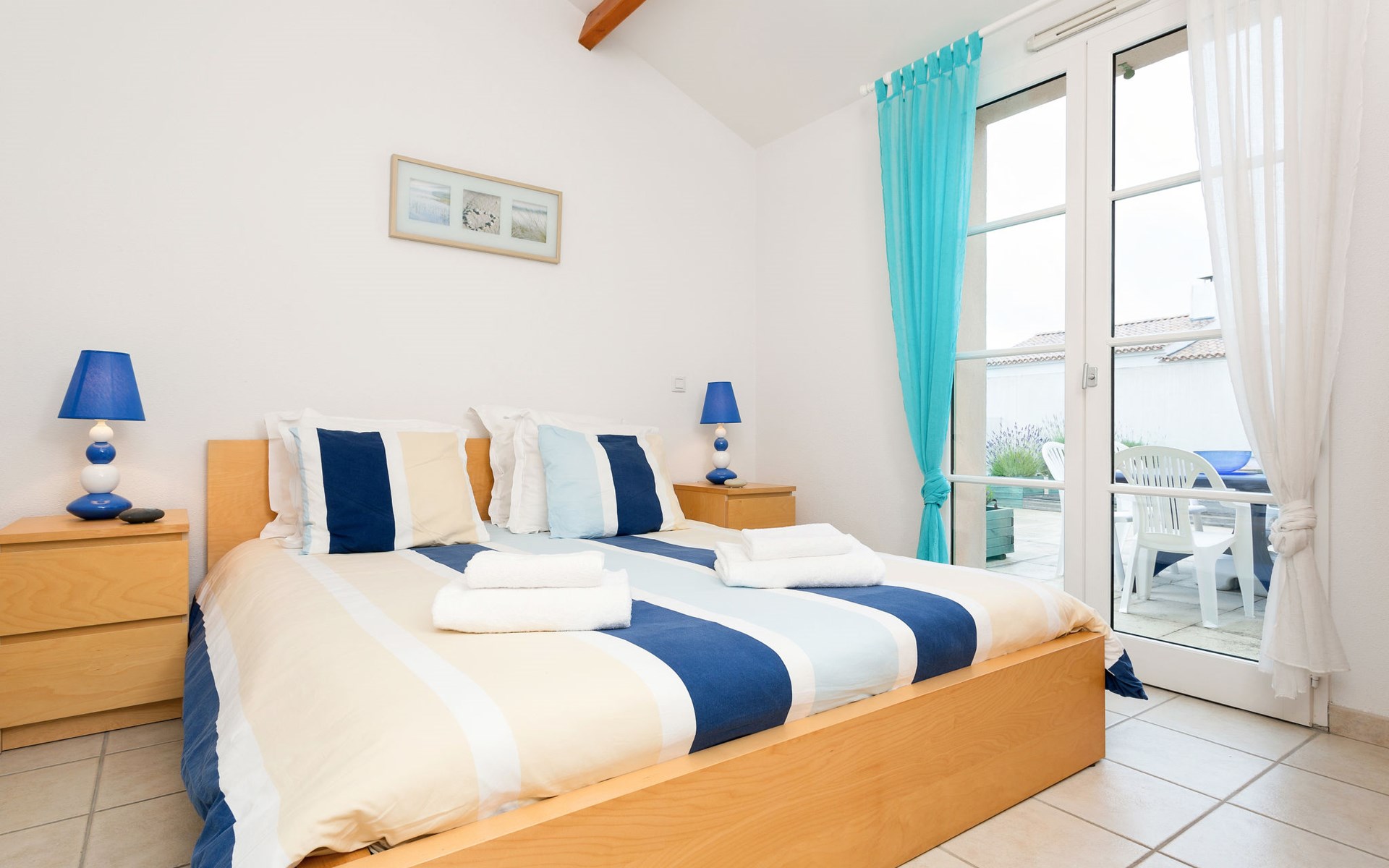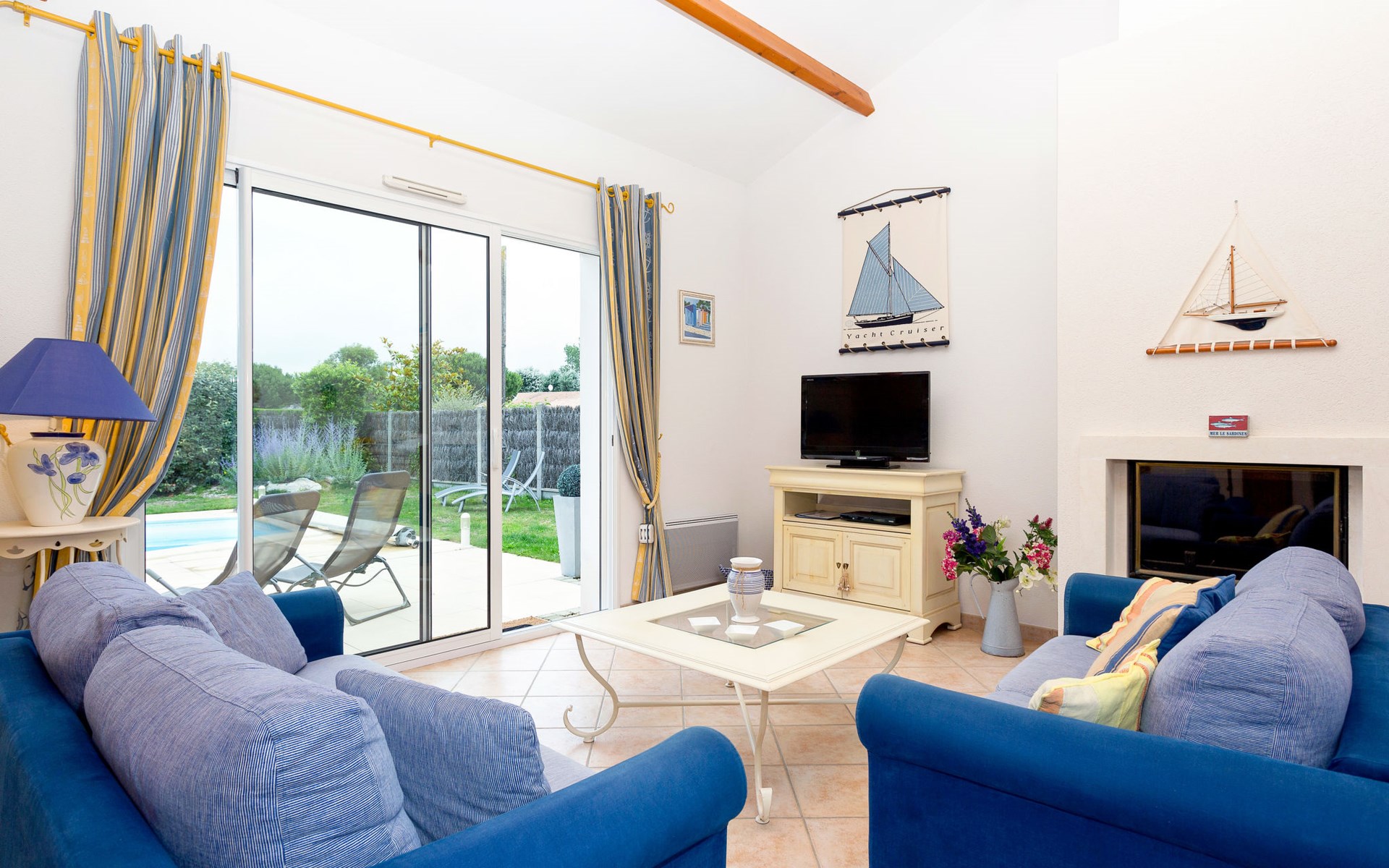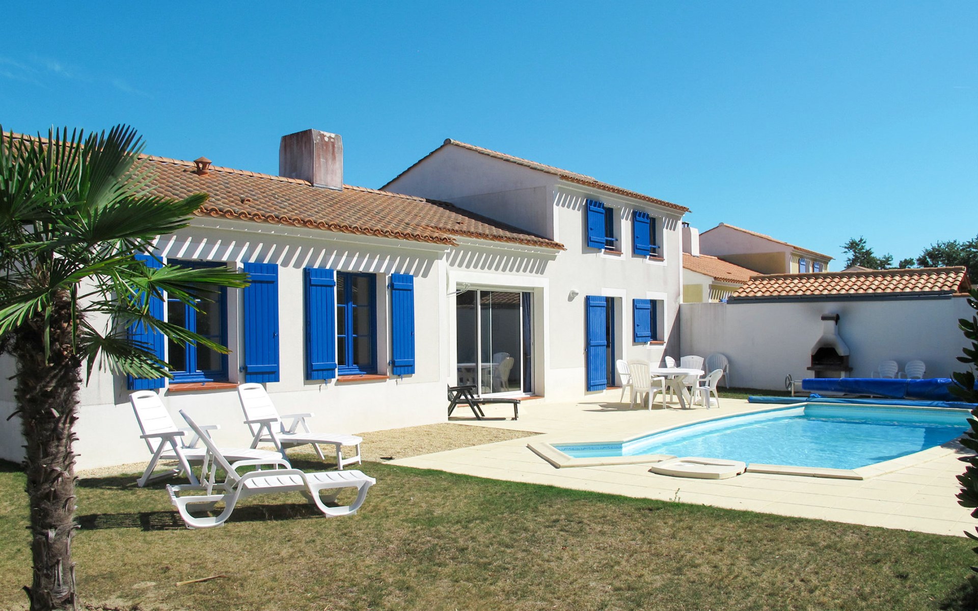 Beautiful, cosy resort "Domaine de Vertmarines". 98 houses in the resort. 2 km from the centre of St. Jean-de-Monts, on the outskirts, 50 km from the centre of Les Sables d'Olonne, 3.5 km from the sea. For shared use: property 6 ha (fenced) with plants and trees. Private: garden 350 m2 (not fenced) with meadow, swimming pool (8 x 4 m, seasonal availability: 15.May. - 15.Sep.). In the complex: reception, WiFi. Bread roll service (extra). Shop 2 km, sandy beach "Les Demoiselles" 3.5 km. Please note: the photograph shows a typical example. The holiday properties may differ in living space, floorplan, equipment and furnishing. Wifi (free of charge) only at the reception.