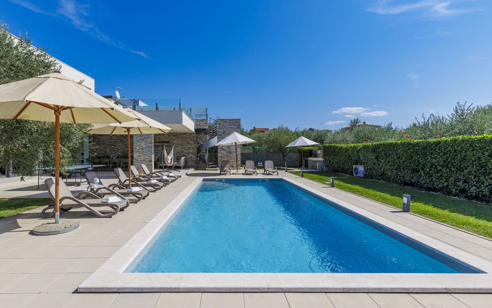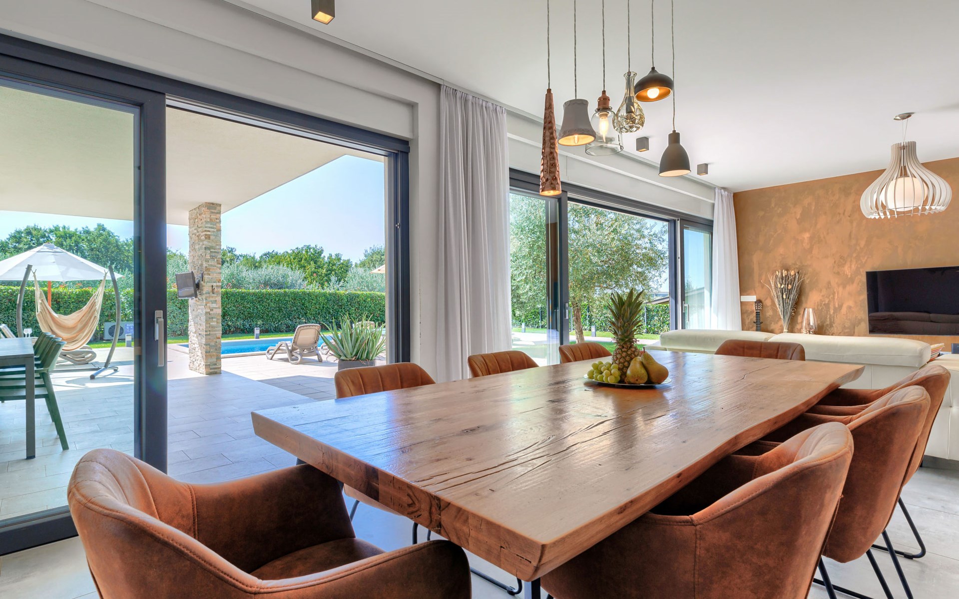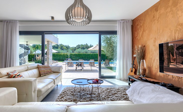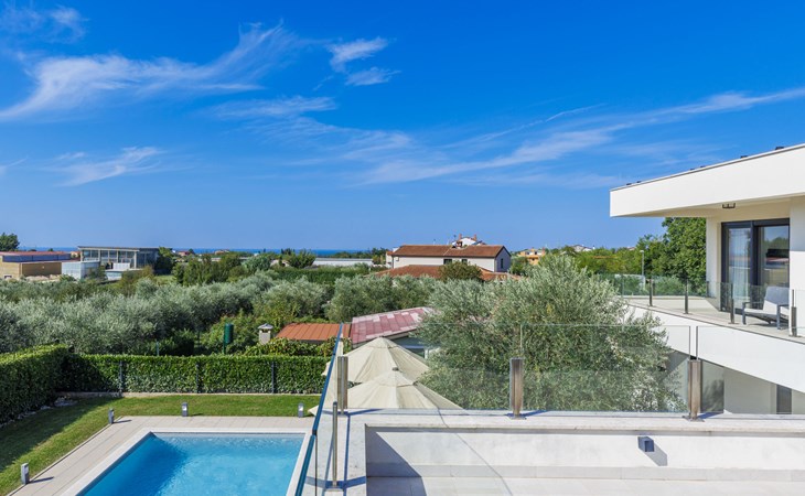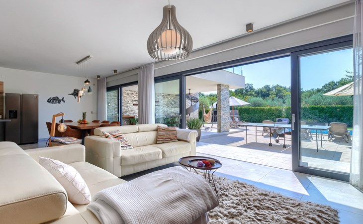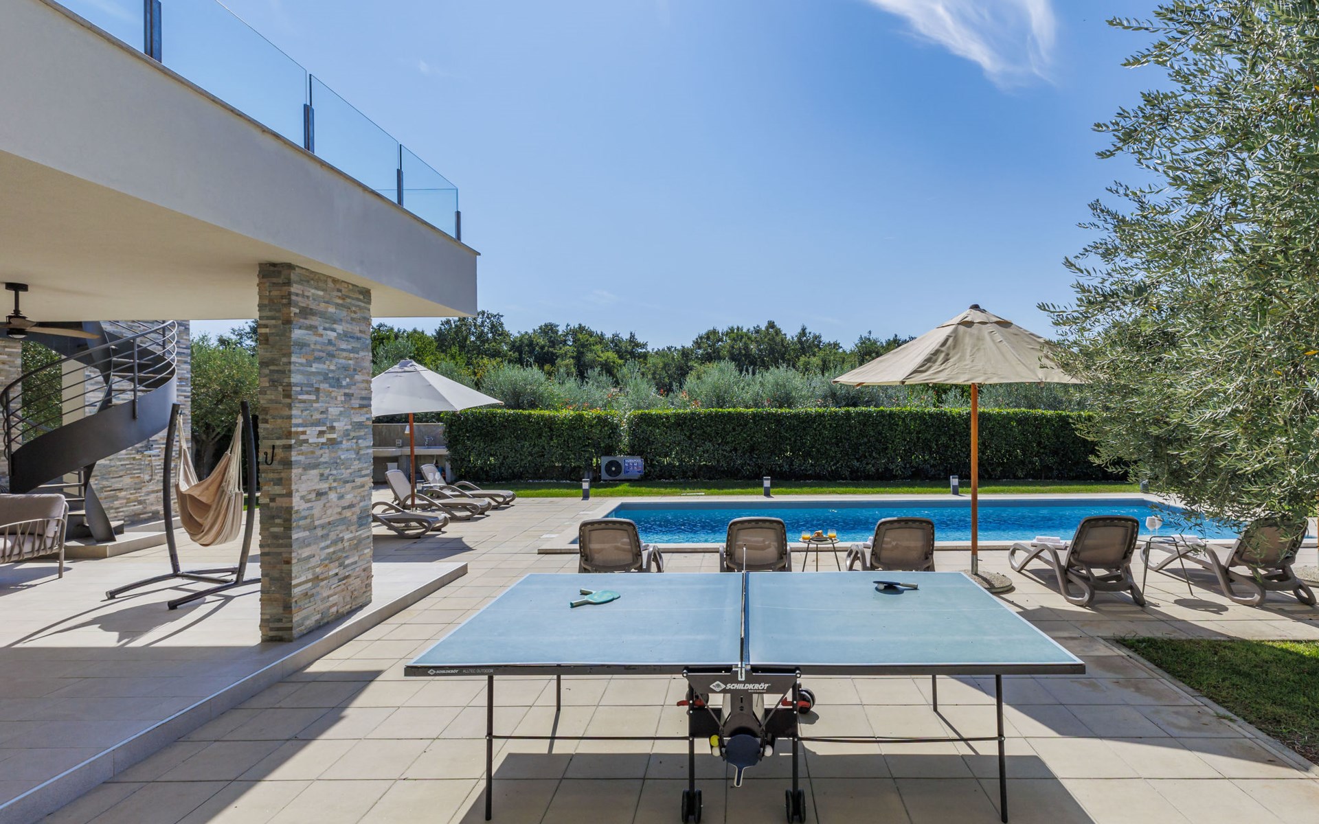 Luxurious villa "Bianca", 2 storeys. In the district of Sveti Servul 2 km from the centre of Novigrad, in a quiet, sunny position, 3 km from the sea, 3 km from the beach. Private: property 1'000 m2 with wildlife garden and trees, swimming pool angular, heated (10 x 4 m, depth 140 cm, seasonal availability: 01.Apr. - 30.Oct.) with internal staircase and salt-electrolysis pool-cleaning system. Outdoor shower, hot tub, terrace (50 m2), garden furniture, barbecue. In the house: internet access, sauna, table tennis, washing machine, tumble dryer. Available: bicycles (3). Parking (for 3 cars) at the house on the premises. E-charging station. Shop 1.5 km, supermarket 1.5 km, restaurant 500 m, bus stop 2 km, pebble beach 3 km, rocky beach 3 km. Golf course (18 hole) 25 km, tennis 2 km, walking paths from the house 500 m, cycle lane 550 m. Nearby attractions: Aquapark 5 km. Please note: airfield 60 km from the property. Swimming pool heated (extra). It is necessary to announce 7 days in advance if the pool heating is required.