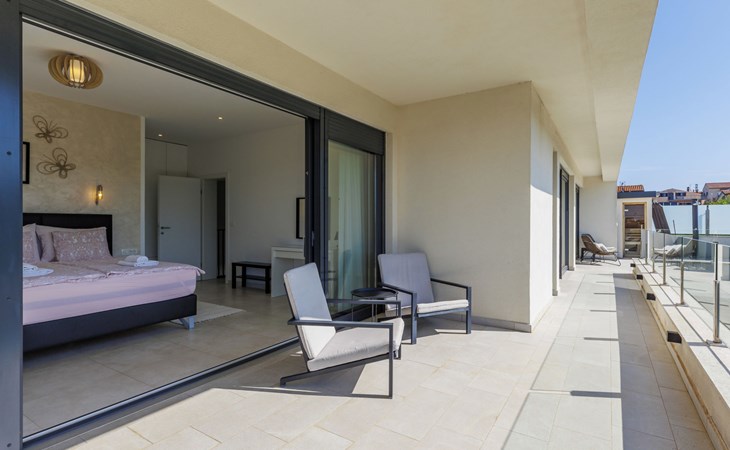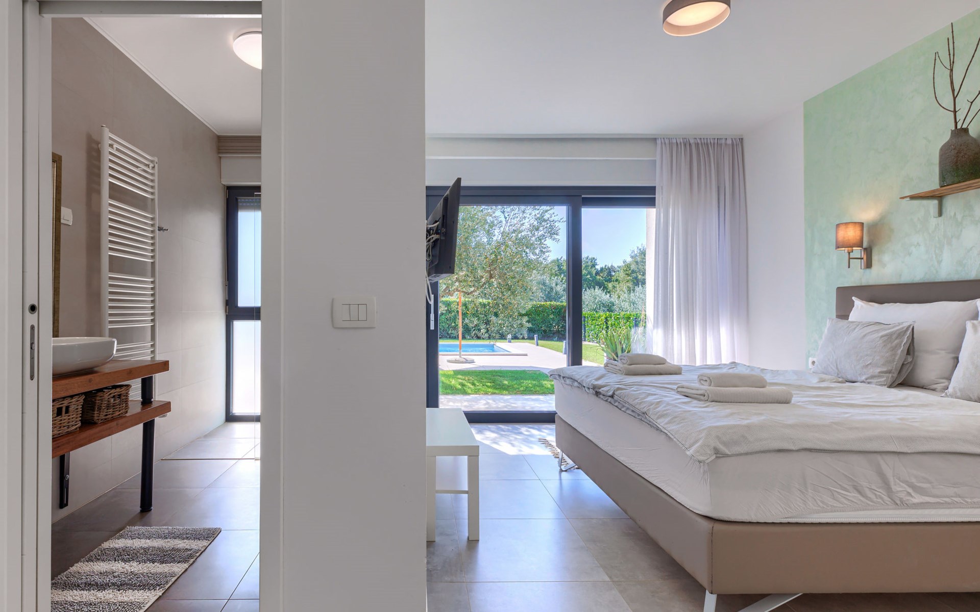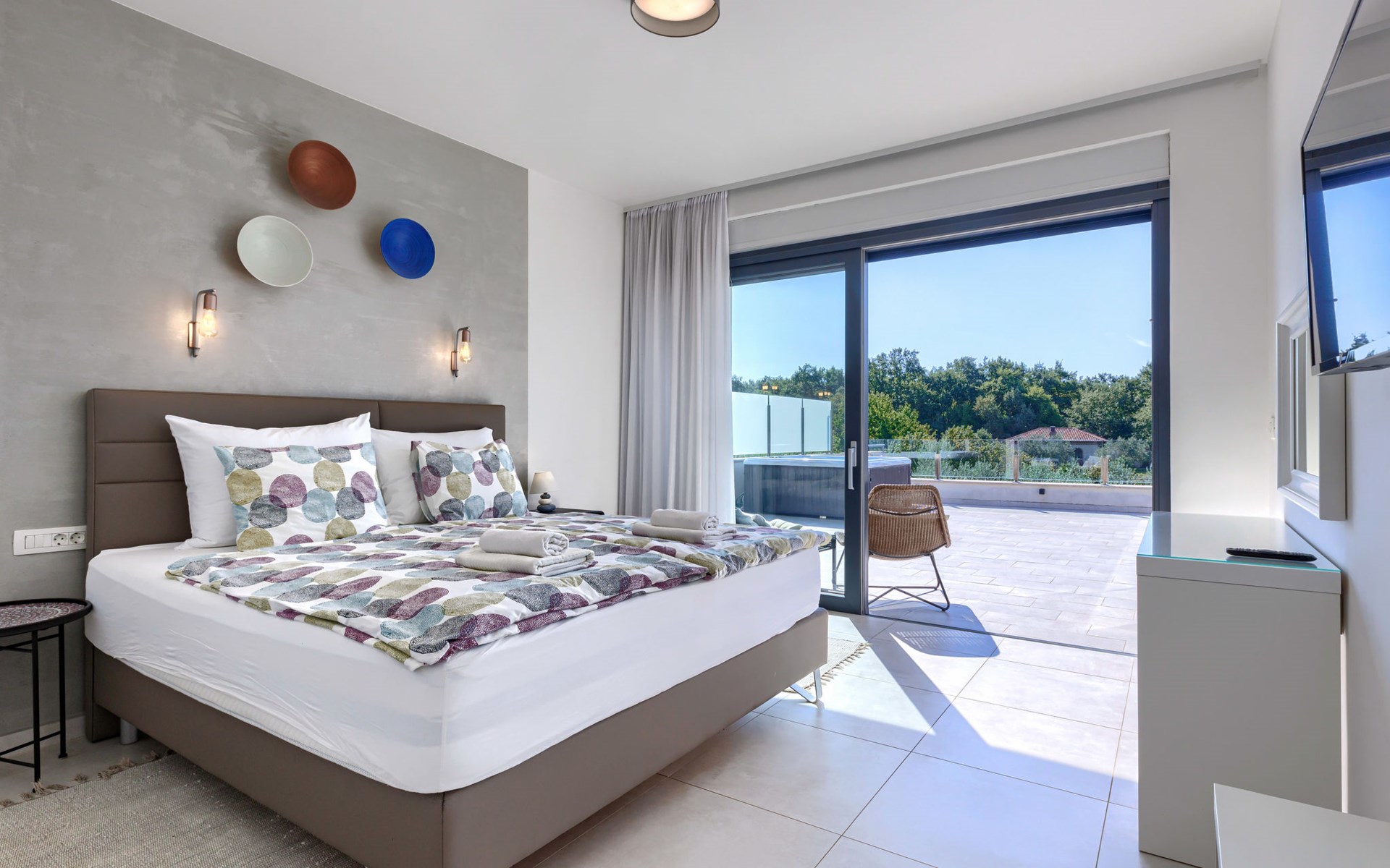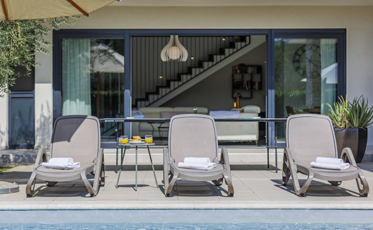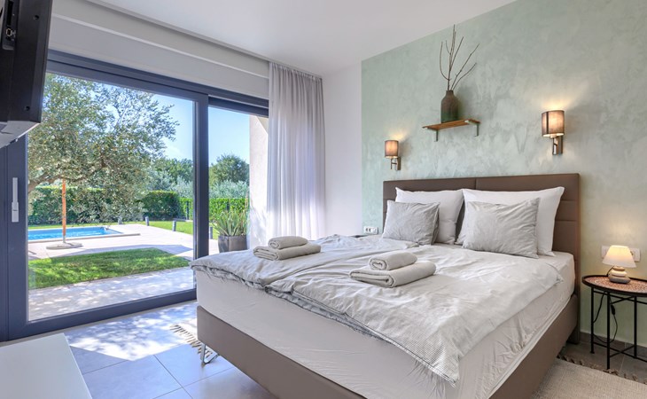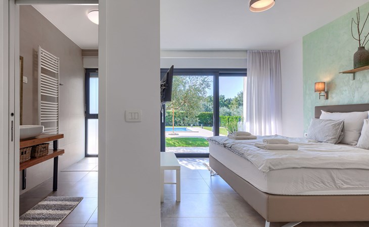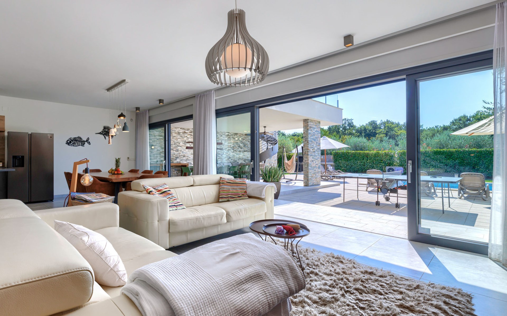 Luxurious villa "Bianca", 2 storeys. In the district of Sveti Servul 2 km from the centre of Novigrad, in a quiet, sunny position, 3 km from the sea, 3 km from the beach. Private: property 1'000 m2 with wildlife garden and trees, swimming pool angular, heated (10 x 4 m, depth 140 cm, seasonal availability: 01.Apr. - 30.Oct.) with internal staircase and salt-electrolysis pool-cleaning system. Outdoor shower, hot tub, terrace (50 m2), garden furniture, barbecue. In the house: internet access, sauna, table tennis, washing machine, tumble dryer. Available: bicycles (3). Parking (for 3 cars) at the house on the premises. E-charging station. Shop 1.5 km, supermarket 1.5 km, restaurant 500 m, bus stop 2 km, pebble beach 3 km, rocky beach 3 km. Golf course (18 hole) 25 km, tennis 2 km, walking paths from the house 500 m, cycle lane 550 m. Nearby attractions: Aquapark 5 km. Please note: airfield 60 km from the property. Swimming pool heated (extra). It is necessary to announce 7 days in advance if the pool heating is required.