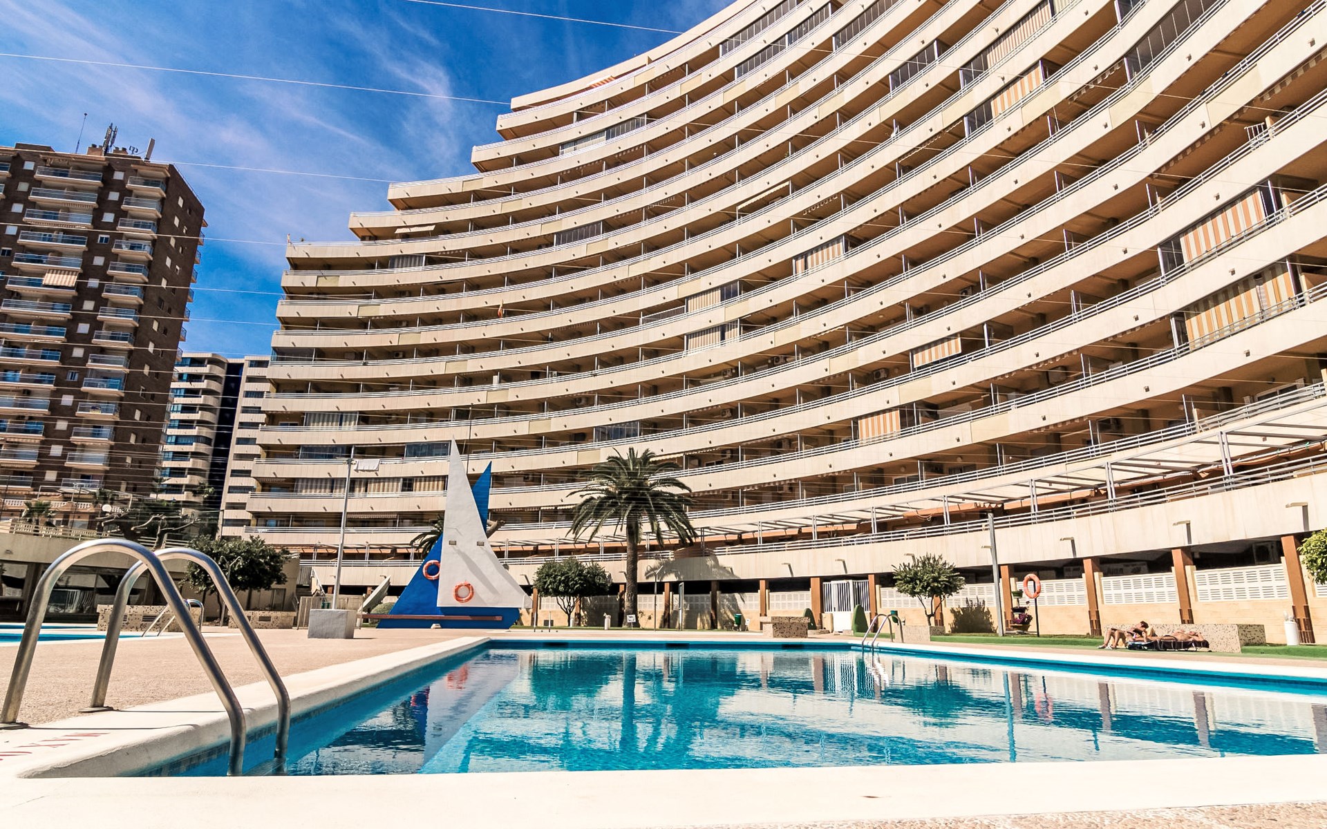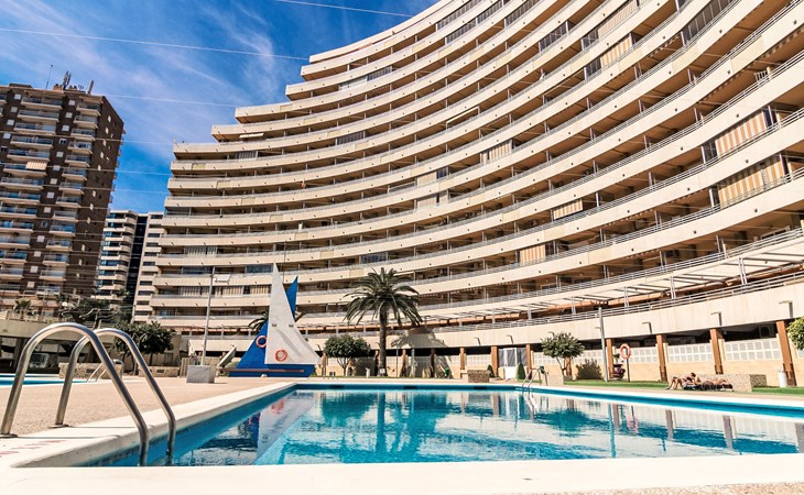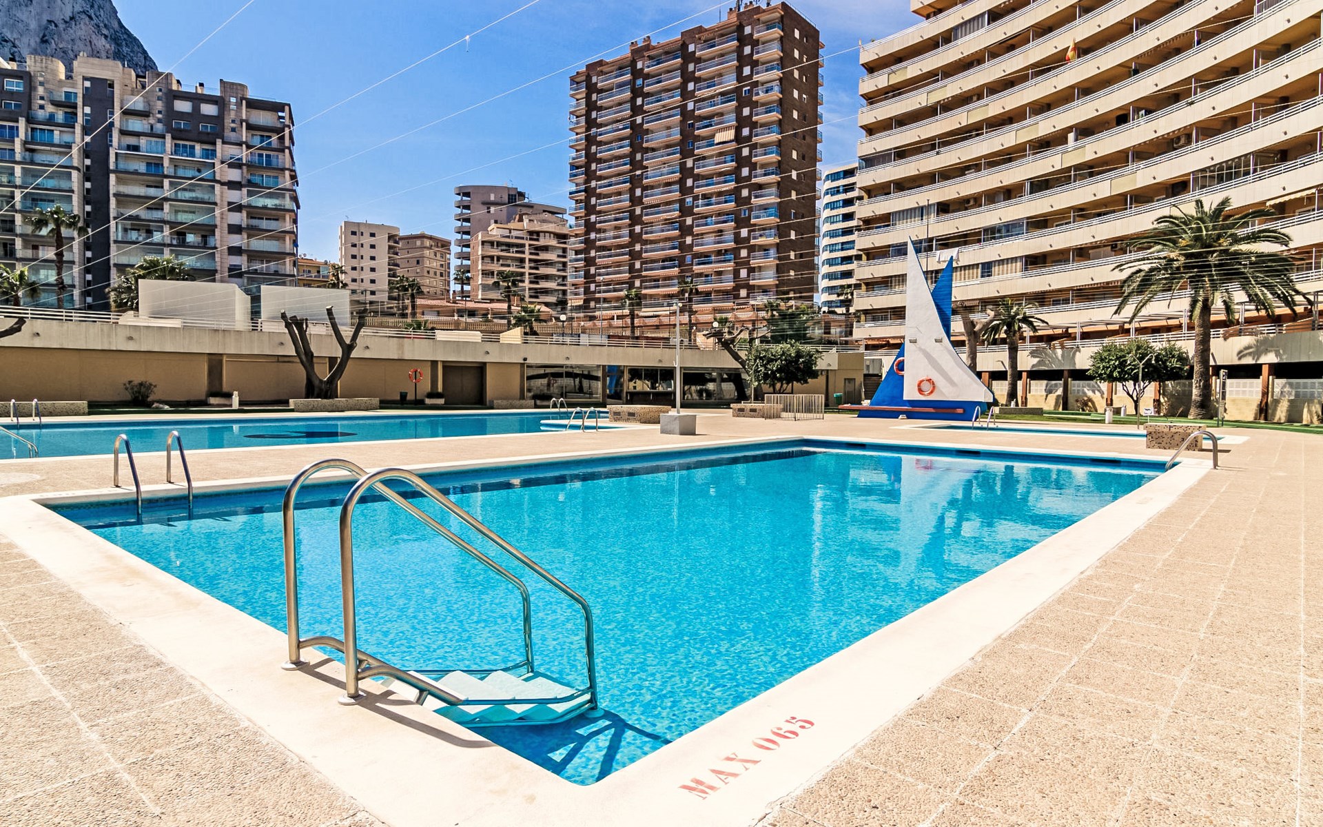 Playa de la Fossa: Apartment block "Voramar", 15 storeys. 1.8 km from the centre of Calpe, in a busy, sunny position, 10 m from the sea, from the beach, direct access to the beach. For shared use: property (fenced), garden, 3 swimming pools (seasonal availability: 01.May. - 31.Oct.). Children's pool, outdoor shower, terrace. In the house: lift. Supermarket, restaurant 50 m, bar 100 m, pub garden 10 m, bus stop, sandy beach "Playa de la Fossa" 10 m. Sports harbour, marina 350 m, golf course (9 hole) 10.5 km, surf school, sailing school. Nearby attractions: Aqualandia, Terra MÃtica, Mundomar, Terra Natura, Benidorm Palace (Benidorm). The owner does not accept any youth groups. Residence with electric gates.