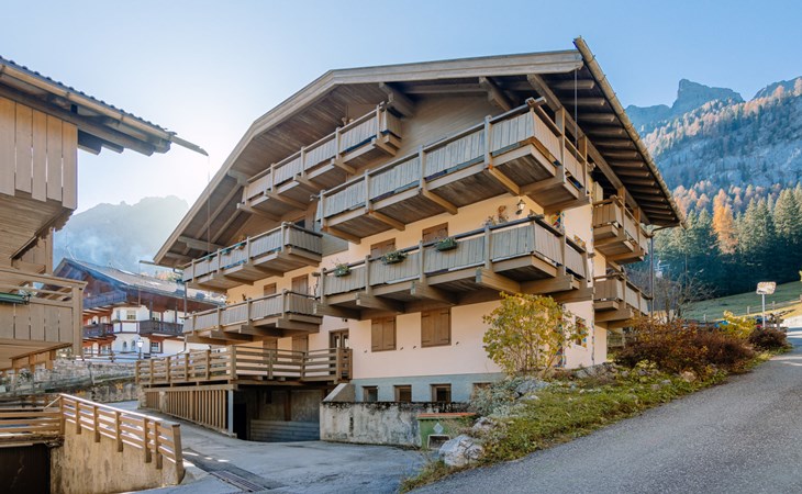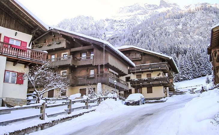 Comfortable apartment house "Fontanelle", 3 storeys. 2 houses in the residence. In the hamlet Alba 2.3 km from the centre of Canazei, in a quiet position, 1.2 km from the skiing area. In the house: central heating system, heating available only from 01.Dec. - 01.May.. In Winter: please take snow chains. Parking at the house, public parking on the road. Supermarket 800 m, restaurant, bar 600 m, bus stop 100 m. Mountain railway 1.3 km, gondola lift 1.3 km, ski bus stop 100 m. Nearby attractions: Sella Ronda 1.3 km, Lago di Carezza 26 km.
