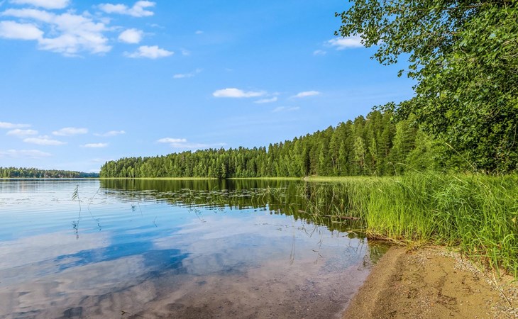 30 km to the southeast from Savonlinna, lake Saimaa 60 m, shared beach, hard, gently deepening sand bottom.