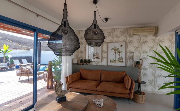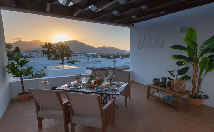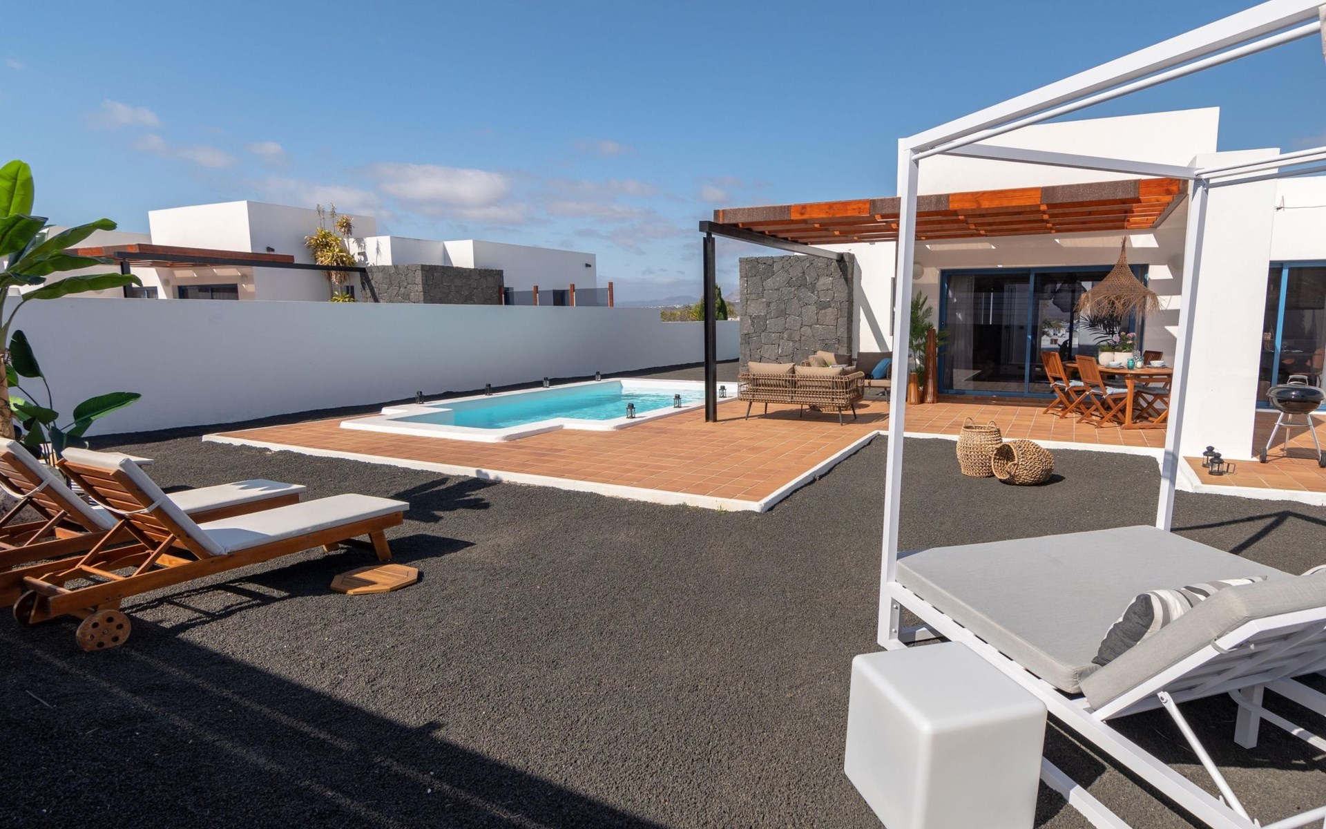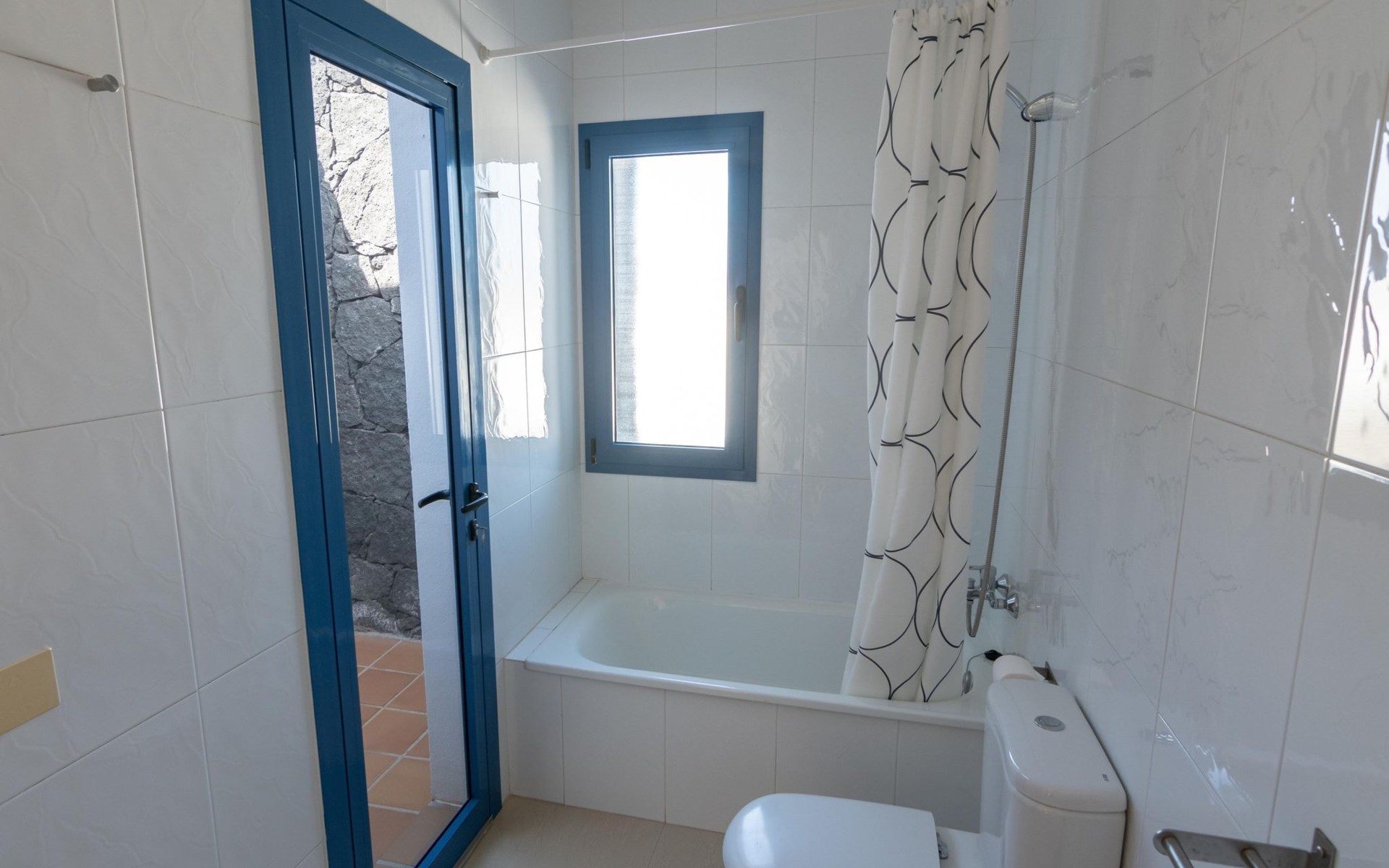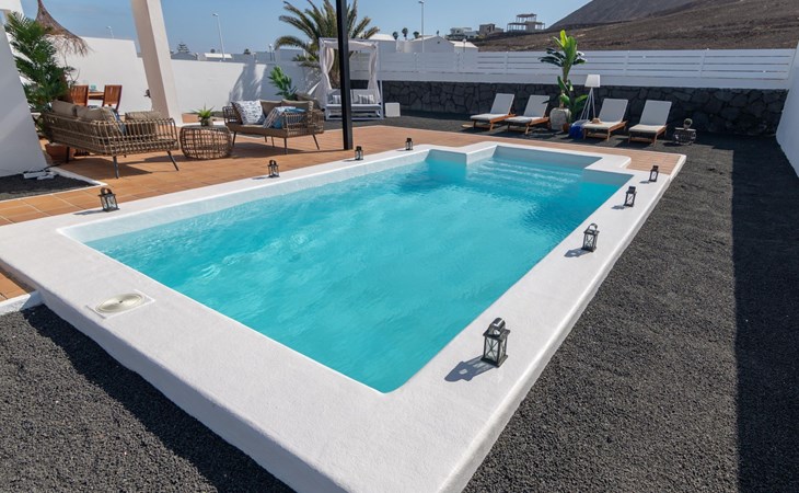 Bellavista 3 km from Playa Blanca: Beautiful terraced house "Bellavista". 2.5 km from the sea. Private: property 500 m2, swimming pool angular, heated (6 x 4 m, seasonal availability: 01.Jan. - 31.Dec.) with internal staircase. Barbecue. Stepped path (14 steps) to the house. Supermarket 500 m, restaurant 1.5 km, bus stop "El Pueblito" 550 m, sandy beach "Flaamingo" 2.5 km. Golf course (18 hole) 32 km, riding stable 1.5 km. Nearby attractions: Paque acĂșatico Agualava 1.8 km. Please note: car recommended.