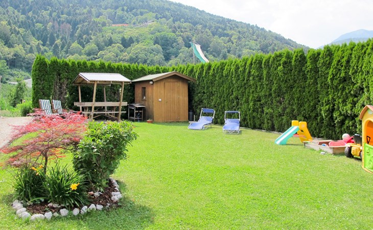 Caldonazzo: Cosy 2-family house "Schmid", 450 m a.s.l., 3 storeys, terraced, renovated. In the centre of Caldonazzo 4.5 km from the centre of Levico, 23 km from the centre of Trento, in a central, sunny position in the residential district, 1.2 km from the lake, in a cul-de-sac. For shared use: well-kept garden (not fenced) with lawn and plants. Patio, pergola, garden furniture, barbecue. In the house: storage room for bicycles. Narrow motor access to the house. Parking at the house on the premises, public parking 500 m. Supermarket 200 m, restaurant 300 m, bakery 400 m, bicycle rental 400 m, bus stop "Linea B401 (Trento-Levico)" 100 m, railway station "Caldonazzo (Trento-Bassano)" 950 m, pebble beach 1.2 km, indoor swimming pool 4.5 km, thermal baths "Vetriolo" 17 km. Golf course (6 hole) 10 km, children's playground 400 m. Nearby attractions: Ciclabile/Radweg/Cycling Path Valsugana 1.2 km, Mountainbike: Giro dei Laghi (24 km) 1.2 km, Giro Antiche Tradizioni (28 km) 550 m, Giro delle Pozze (21 km, Vetriolo) 17 km. Hiking paths: Sentiero della Pace 550 m, Tenna: Arbore 8 km, Monte Panarotta (2002 m) 22 km. Please note: the owner lives in the same residence.