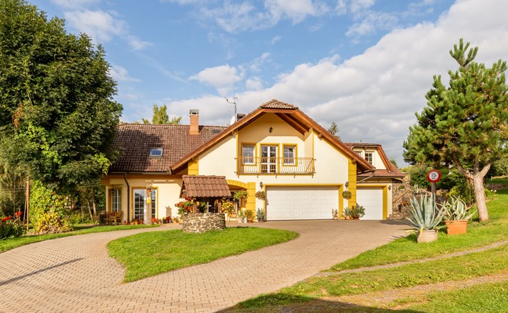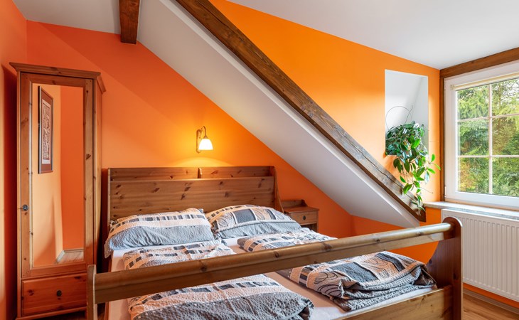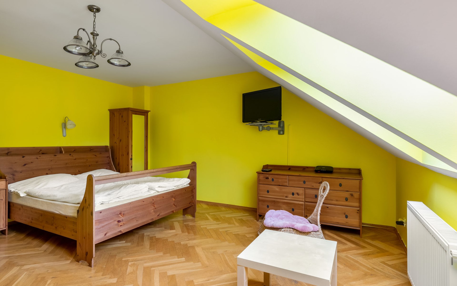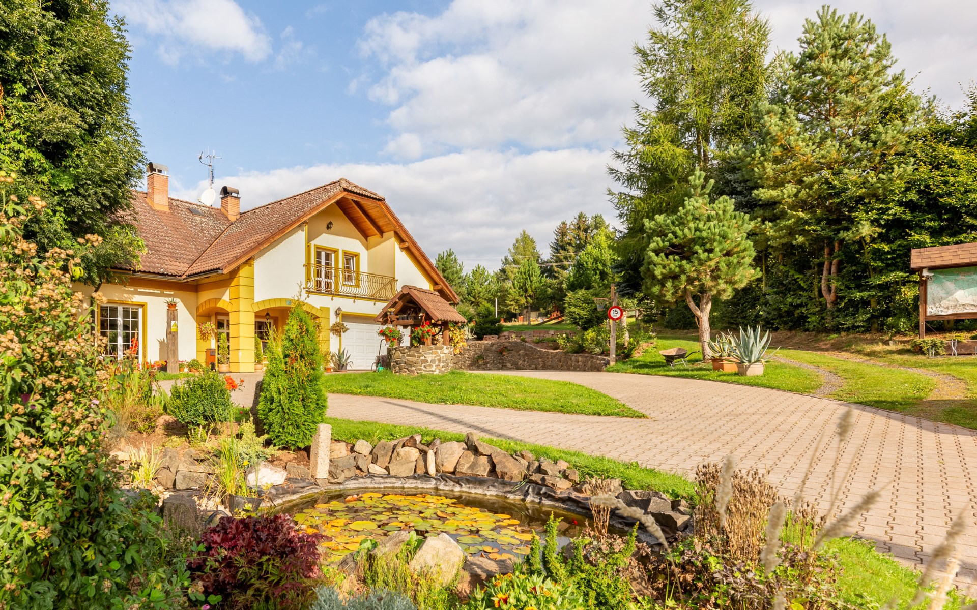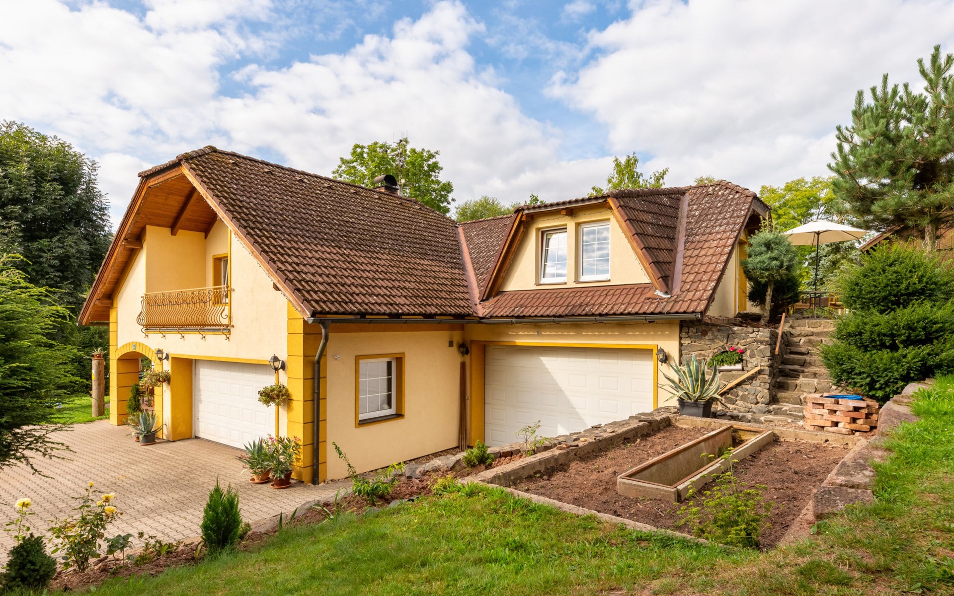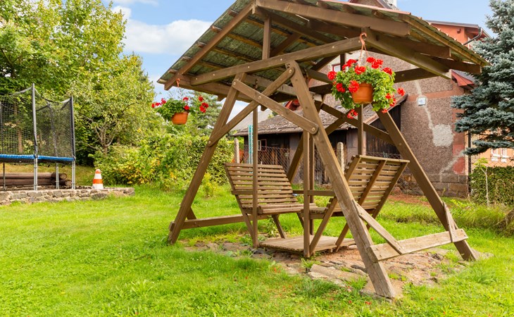 Slemeno, 2 km from Dolní Kalná: Modern, beautiful 2-family house "Relax apartment", 400 m a.s.l.. 900 m from the centre of Slemeno, on the outskirts, 5 km from the centre of Hostinné, 13 km from the centre of Jilemnice, 6 km from the skiing area. For shared use: property 1'200 m2, lawn. Private: swimming pool (above ground) round (3,6 m diameter, depth 80 cm, seasonal availability: 01.Jul. - 31.Aug.). Terrace, garden furniture, barbecue, fireplace, parking (for 2 cars) at the house. Shop 2 km, supermarket 5 km, restaurant 4 km, bus stop 900 m, railway station "Hostinné" 5 km, outdoor swimming pool 3 km, indoor swimming pool 13 km. Golf course (18 hole) 20 km, walking paths from the house, cycle lane 50 m, ski lift 16 km, chair lift 20 km, slopes 6 km, ski rental 16 km, ski school 16 km, children's ski school 16 km, cross country ski track 6 km. Nearby attractions: Jilemnice 13 km, Zvičina 15 km, Vrchlabí 16 km, Trutnov 17 km, Pec pod Sněžkou 34 km, Zoo Dvůr Králové, zámek Kuks (UNESCO). Well-known ski regions can easily be reached: Kněžický vrch - Vrchlabí 16 km, Mladé Buky 20 km, Pec pod Sněžkou 34 km. Well-known lakes can easily be reached: Dolce 18 km. Please note: the owner lives in the same residence. Owner lives in separate semi-detached house. Separate grass pitch available including goals and net for ball games.