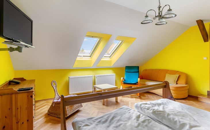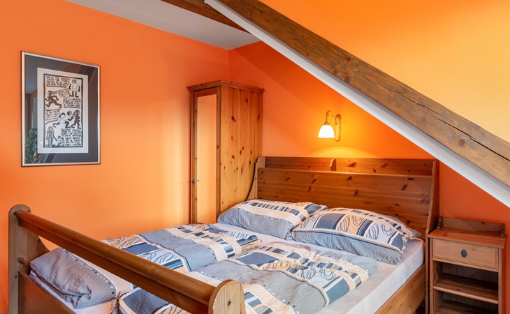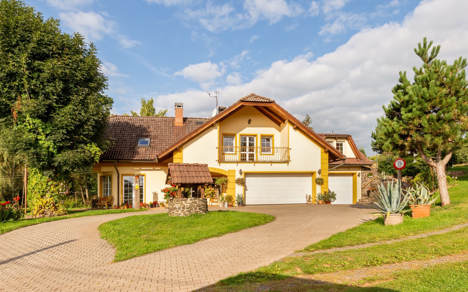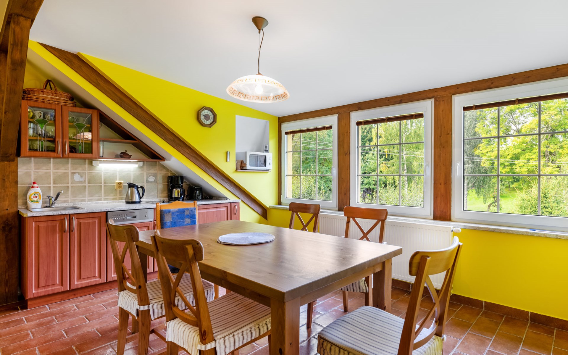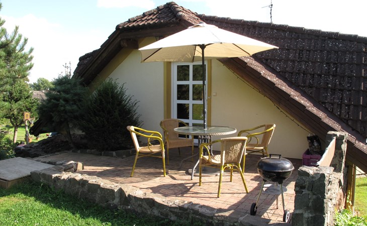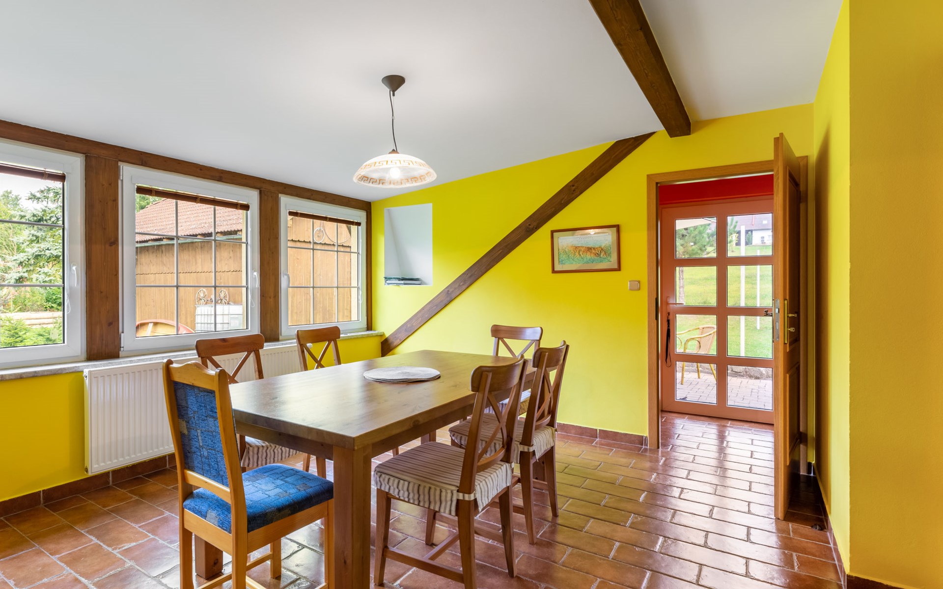 Slemeno, 2 km from Dolní Kalná: Modern, beautiful 2-family house "Relax apartment", 400 m a.s.l.. 900 m from the centre of Slemeno, on the outskirts, 5 km from the centre of Hostinné, 13 km from the centre of Jilemnice, 6 km from the skiing area. For shared use: property 1'200 m2, lawn. Private: swimming pool (above ground) round (3,6 m diameter, depth 80 cm, seasonal availability: 01.Jul. - 31.Aug.). Terrace, garden furniture, barbecue, fireplace, parking (for 2 cars) at the house. Shop 2 km, supermarket 5 km, restaurant 4 km, bus stop 900 m, railway station "Hostinné" 5 km, outdoor swimming pool 3 km, indoor swimming pool 13 km. Golf course (18 hole) 20 km, walking paths from the house, cycle lane 50 m, ski lift 16 km, chair lift 20 km, slopes 6 km, ski rental 16 km, ski school 16 km, children's ski school 16 km, cross country ski track 6 km. Nearby attractions: Jilemnice 13 km, Zvičina 15 km, Vrchlabí 16 km, Trutnov 17 km, Pec pod Sněžkou 34 km, Zoo Dvůr Králové, zámek Kuks (UNESCO). Well-known ski regions can easily be reached: Kněžický vrch - Vrchlabí 16 km, Mladé Buky 20 km, Pec pod Sněžkou 34 km. Well-known lakes can easily be reached: Dolce 18 km. Please note: the owner lives in the same residence. Owner lives in separate semi-detached house. Separate grass pitch available including goals and net for ball games.