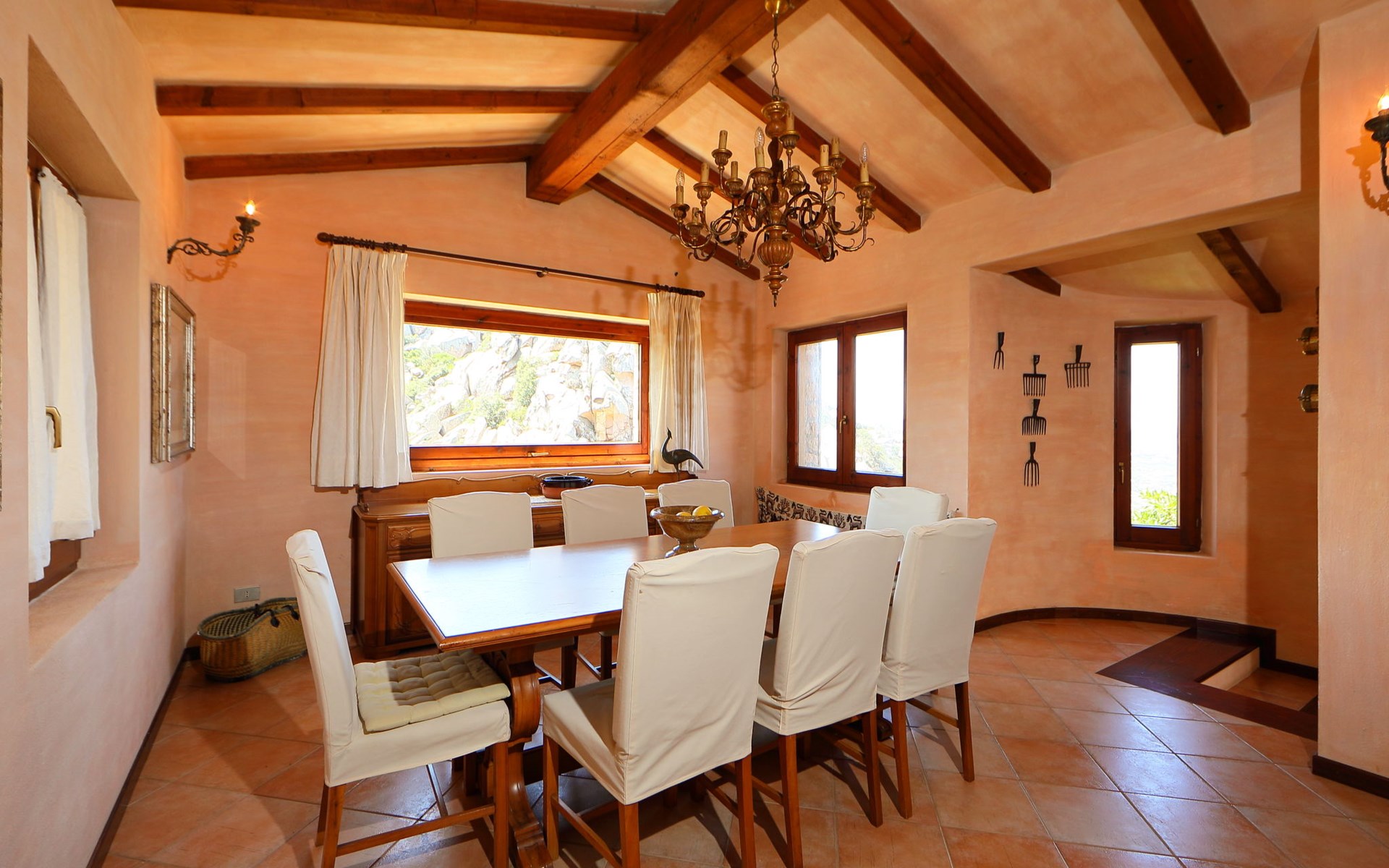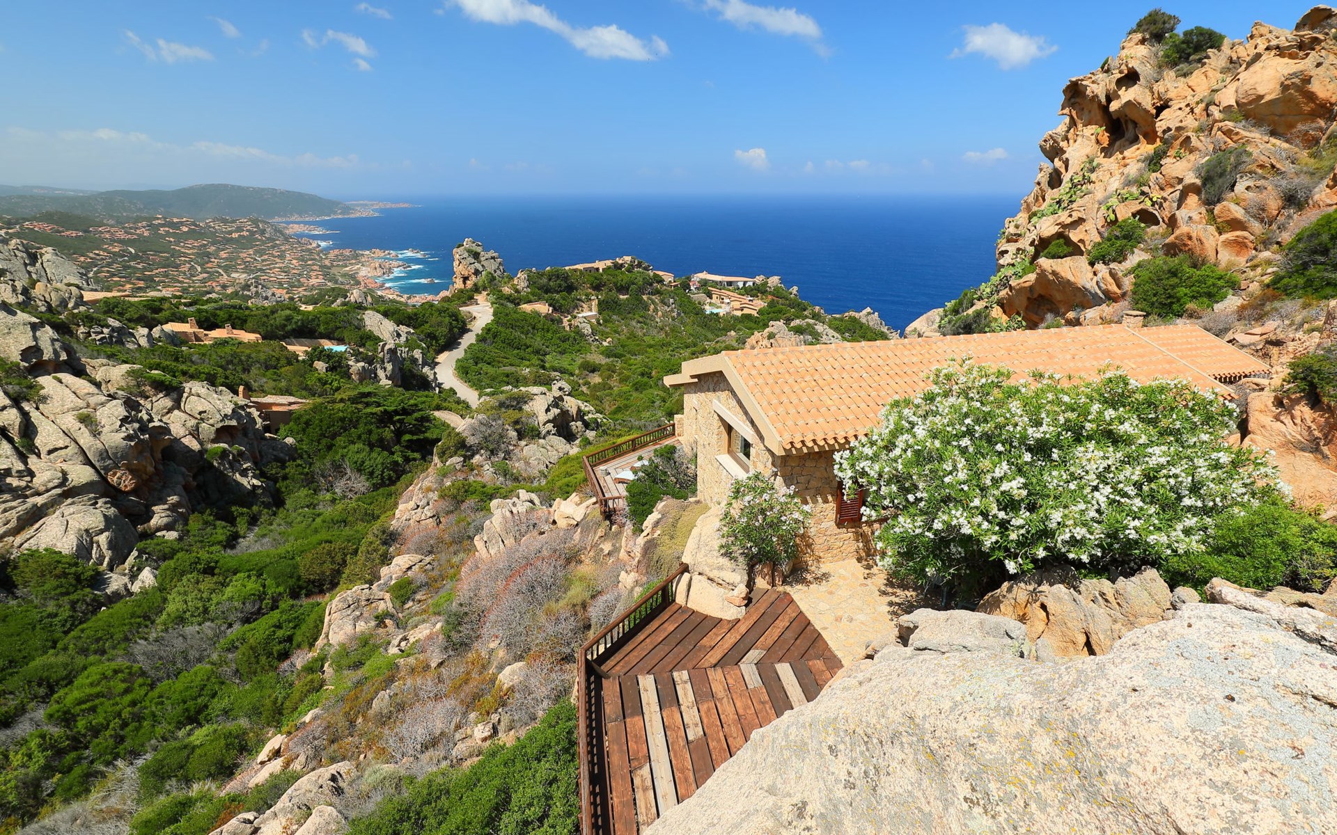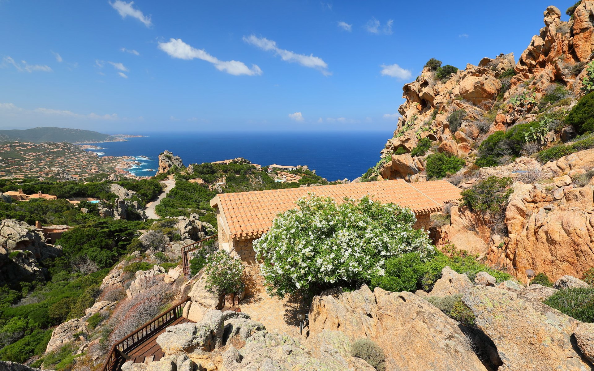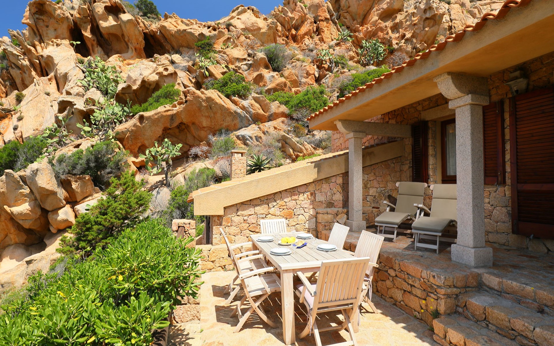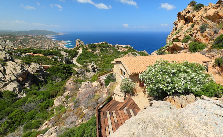 Single-family house "Il Nido". Costa Paradiso, in an elevated position on a slope, 3 km from the sea. Motor access to 50 m from the house. Stepped path to the house. Supermarket, restaurant, bar 300 m, bus stop 7 km, sandy beach "Li Cossi" 4 km. Nearby attractions: Isola Rossa 20 km, Vignola mare 20 km. Please note: car recommended. Animals in the neighbourhood.
