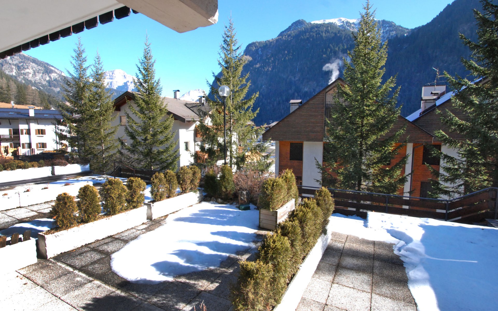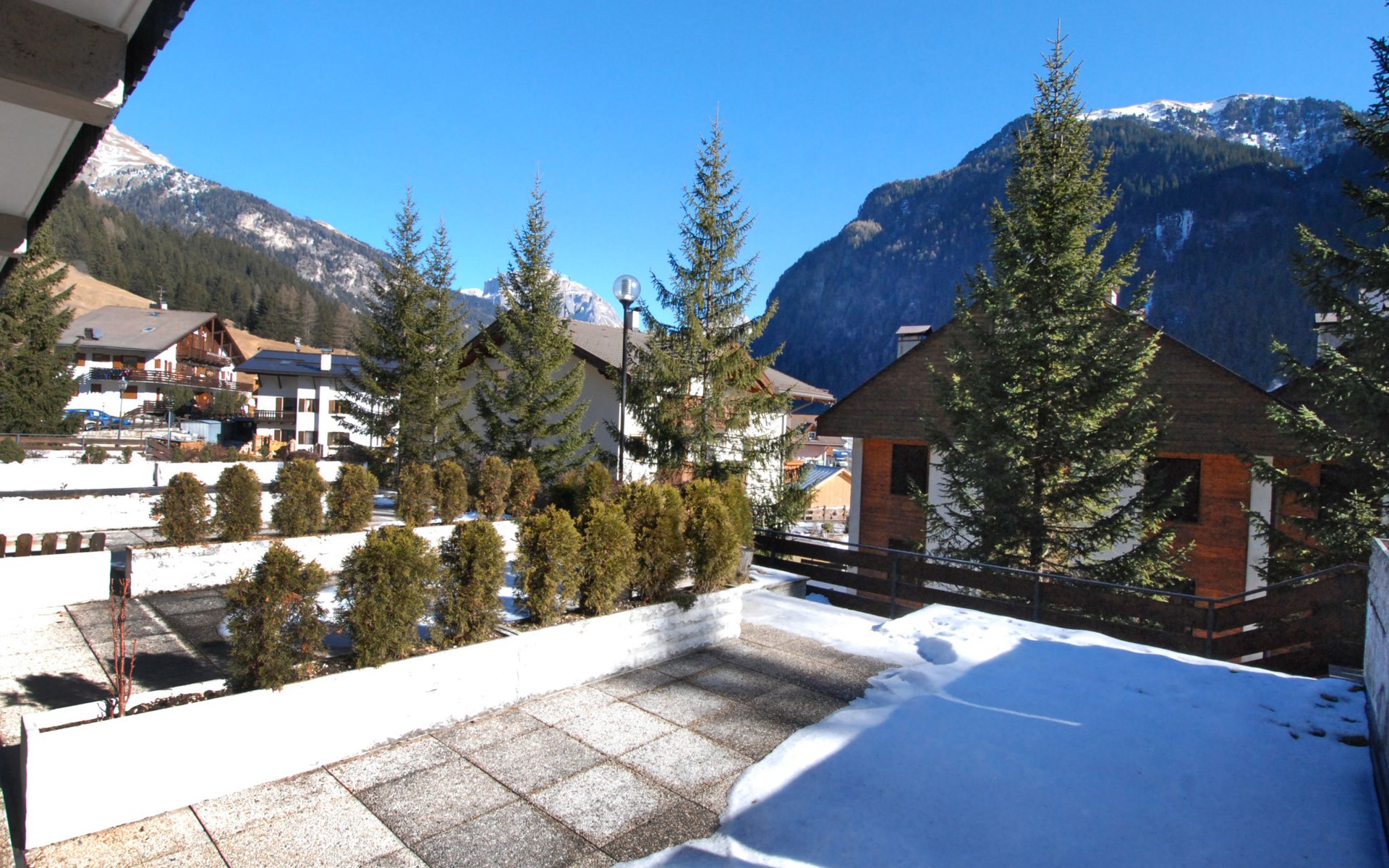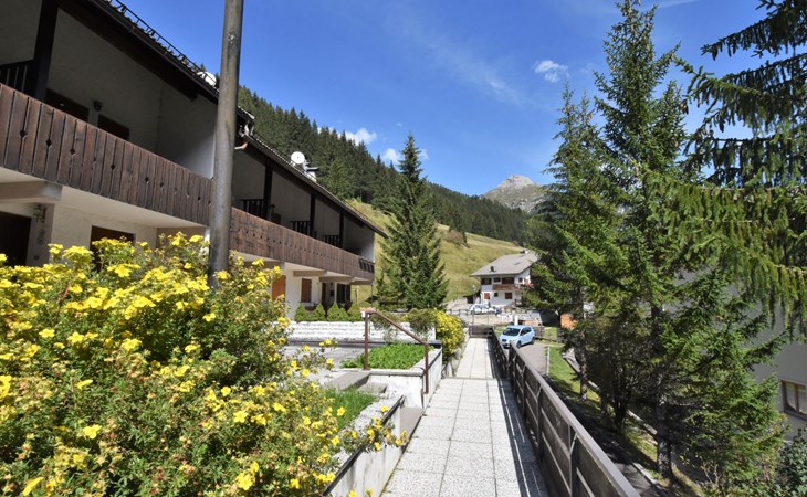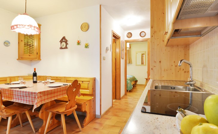 Fontanazzo 4 km from Canazei: Comfortable residence "Monti Pallidi", 3 storeys. 15 apartments in the residence. In a quiet, sunny position, traffic calmed area, 2 km from the skiing area. In the house: central heating system, heating available only from 01.Dec. - 01.May.. In Winter: please take snow chains. Single garage. Supermarket 1.6 km, restaurant, bar 450 m, bus stop 20 m. Chair lift 2 km. Nearby attractions: Sella Ronda 2 km, lago di Carezza 20 km, Col Rodella di Campitello 2.1 km.