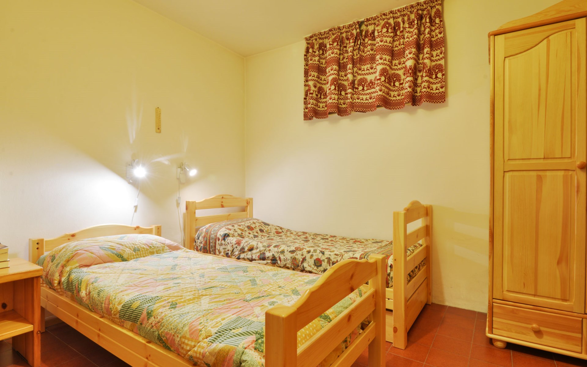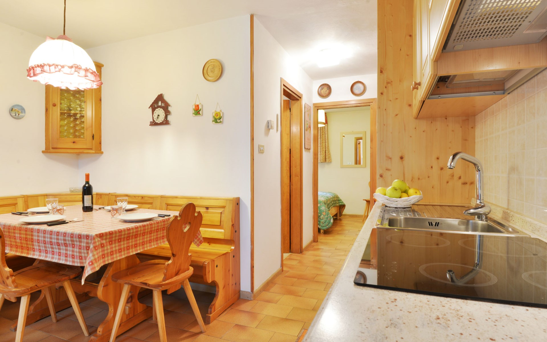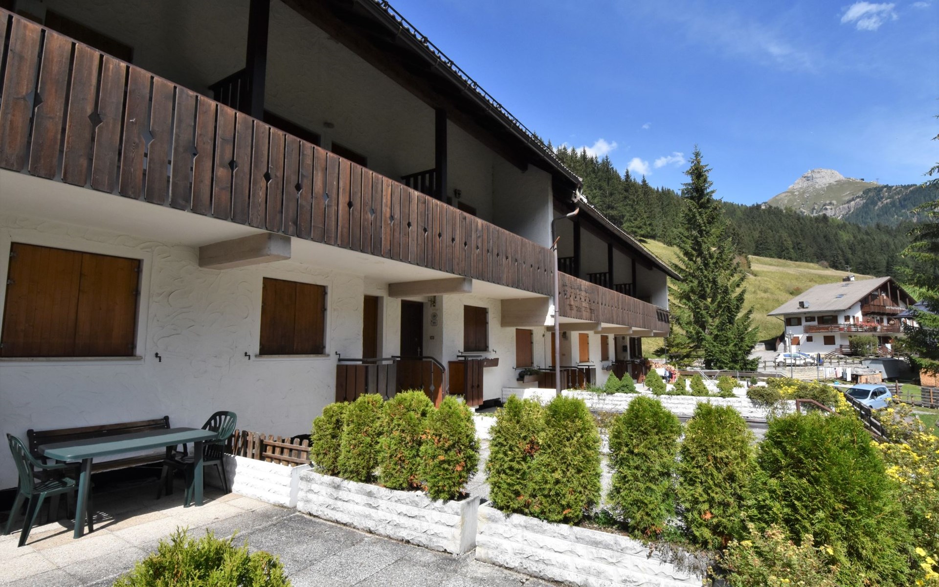 Fontanazzo 4 km from Canazei: Comfortable residence "Monti Pallidi", 3 storeys. 15 apartments in the residence. In a quiet, sunny position, traffic calmed area, 2 km from the skiing area. In the house: central heating system, heating available only from 01.Dec. - 01.May.. In Winter: please take snow chains. Single garage. Supermarket 1.6 km, restaurant, bar 450 m, bus stop 20 m. Chair lift 2 km. Nearby attractions: Sella Ronda 2 km, lago di Carezza 20 km, Col Rodella di Campitello 2.1 km.