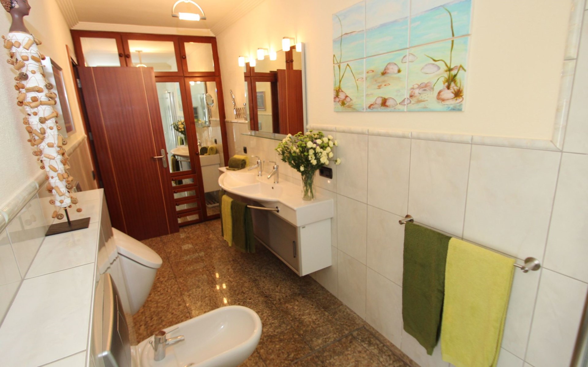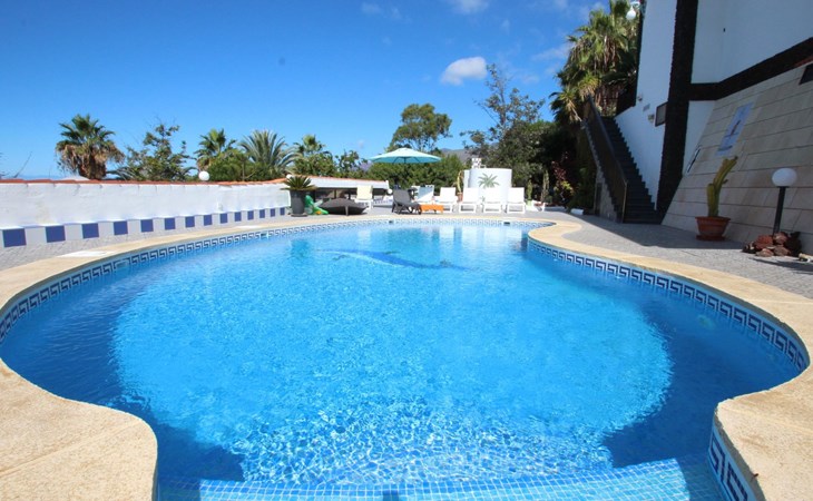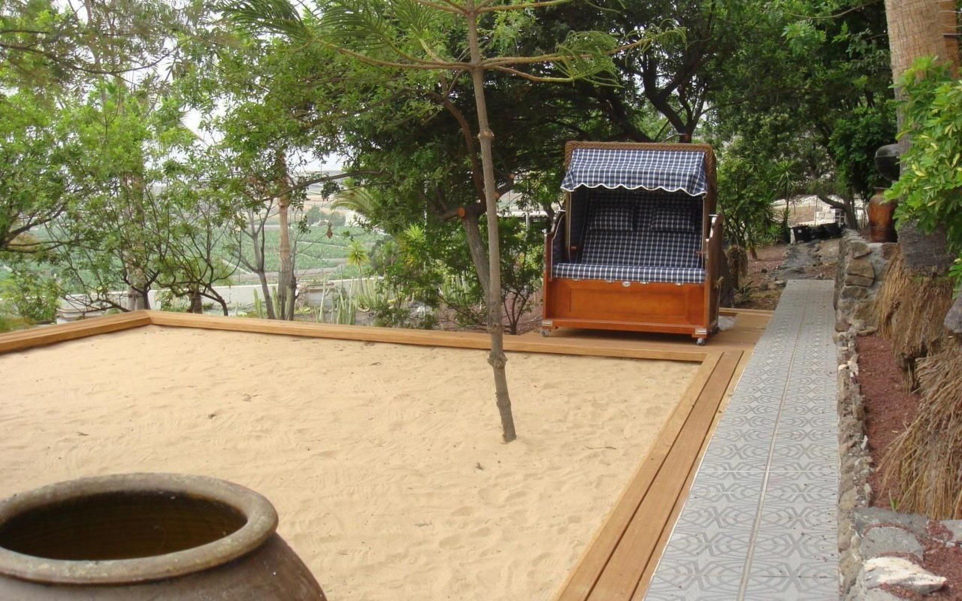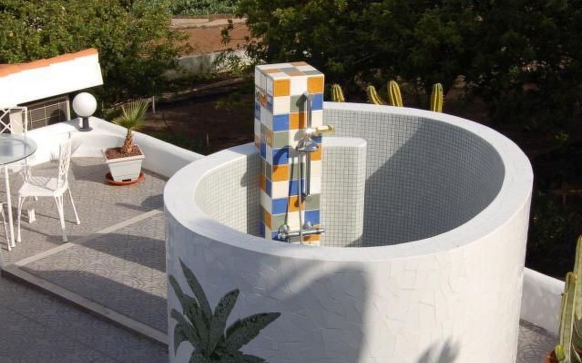 The outdoor area leaves nothing to be desired: A heated pool area at around 27 degrees Celsius, surrounded by ample loungers and parasols, a snail shower with hot water and a self-service bar area provide ideal conditions for relaxation under the Tenerife sun. Additional comfort is provided by a large sandpit for children, a fully walled property for maximum privacy, a motorised entrance gate, a garage, sun-protected parking spaces and ample parking.