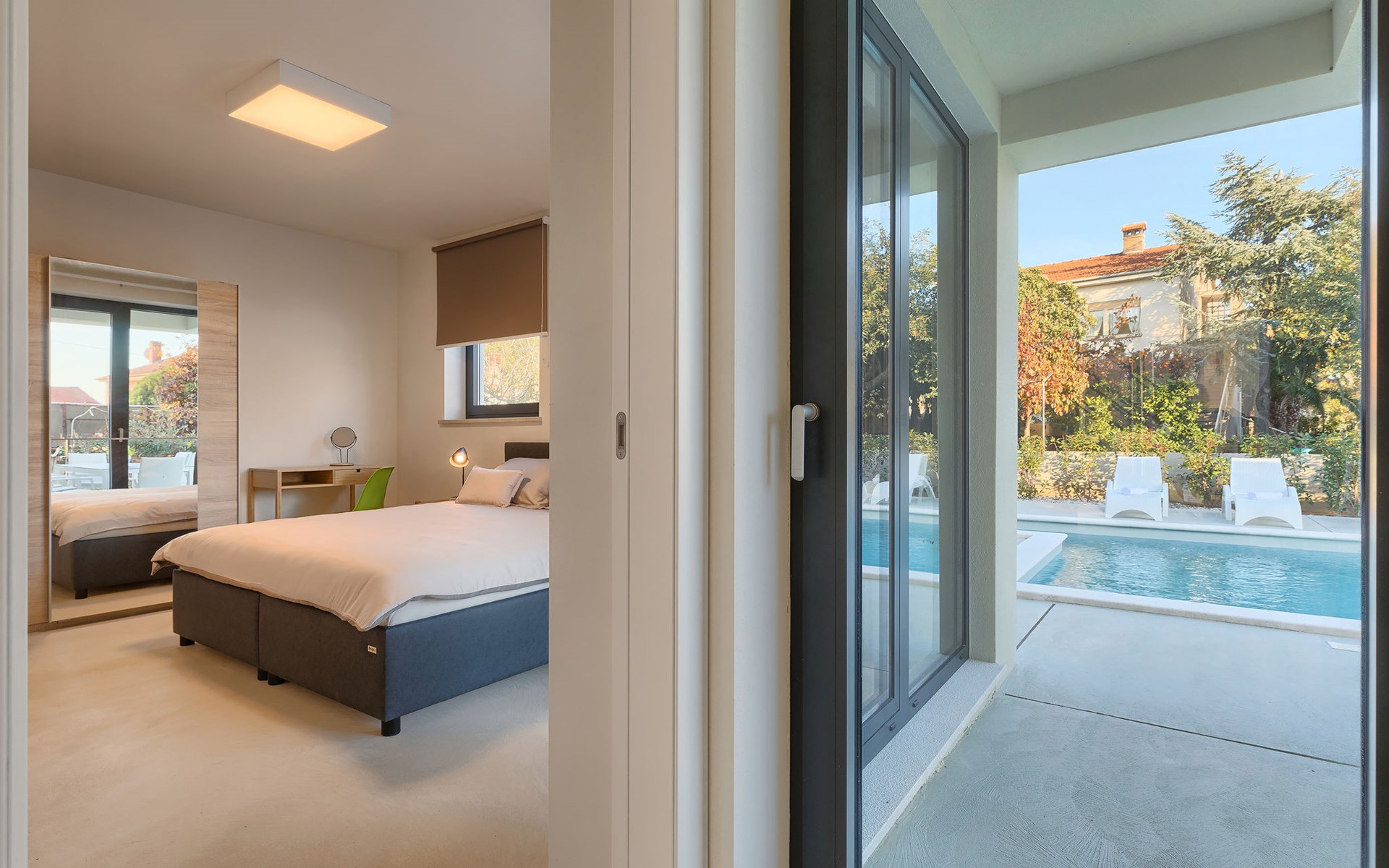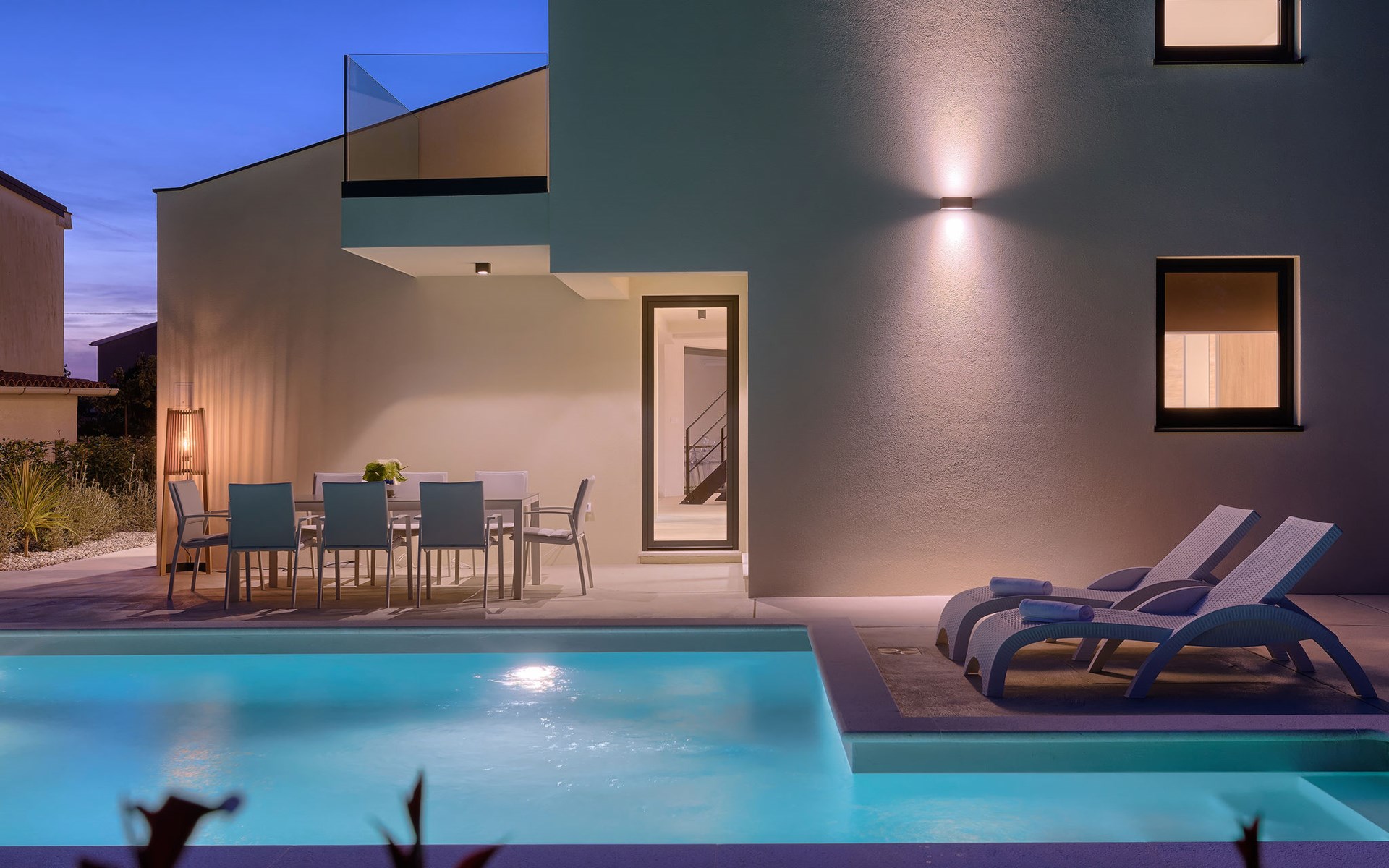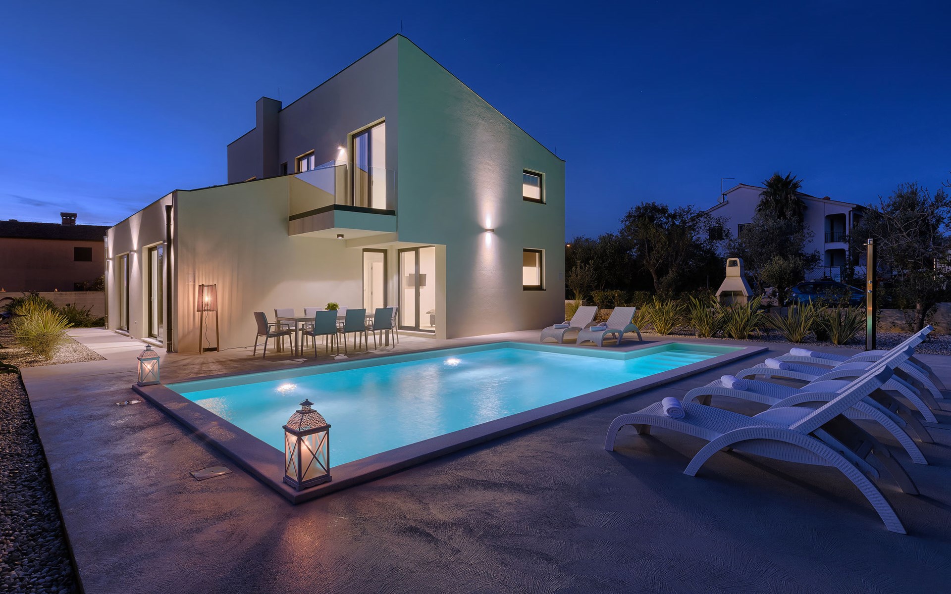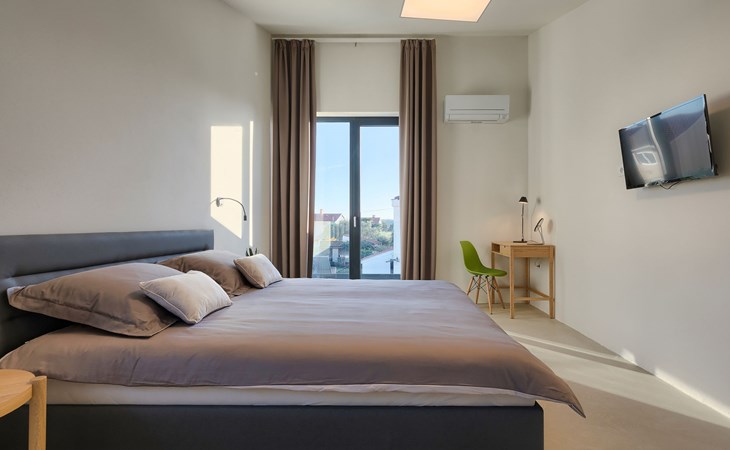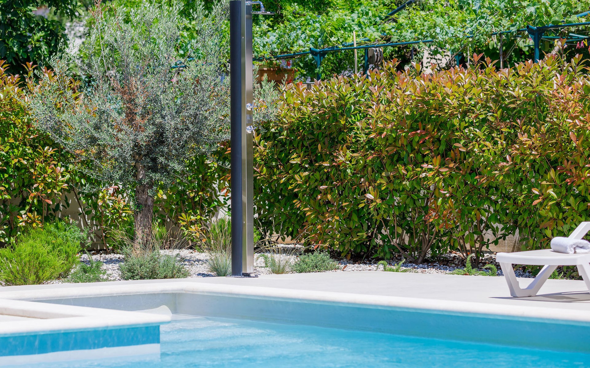 Štinjan 5 km from Pula: Villa "Anna", 2 storeys. 3 km from the centre of Fažana, in a sunny position, 1 km from the sea, 1 km from the beach. Private: property 750 m2 (fenced), garden with swimming pool angular, heated (8 x 4 m, depth 140 cm, seasonal availability: 01.Jan. - 31.Dec.) with internal staircase. Outdoor shower, barbecue. In the house: internet access, washing machine. Parking (for 3 cars) at the house on the premises. Shop 100 m, restaurant 800 m, bus stop 10 m, pebble beach 1 km, rocky beach 1 km. Golf course (18 hole) 5 km, sailing school 5 km, tennis 500 m, riding stable 4 km, walking paths from the house 500 m, cycle lane 550 m. The owner does not accept any youth groups. Please note: airfield 15 km from the property. Swimming pool heated (extra). It is necessary to announce 7 days in advance if the pool heating is required.