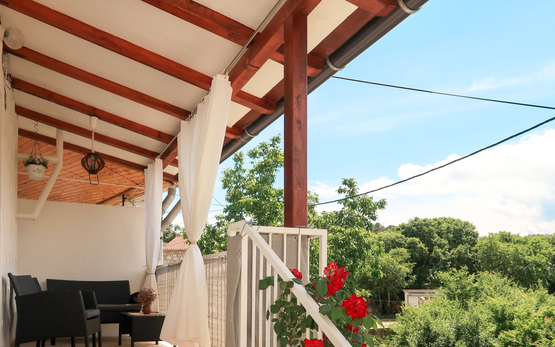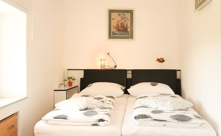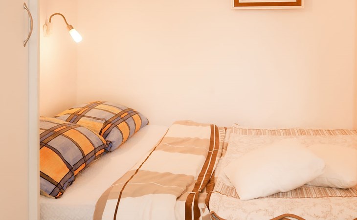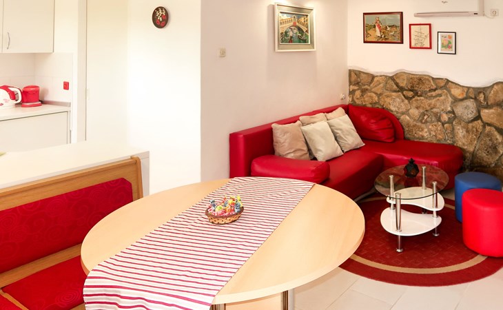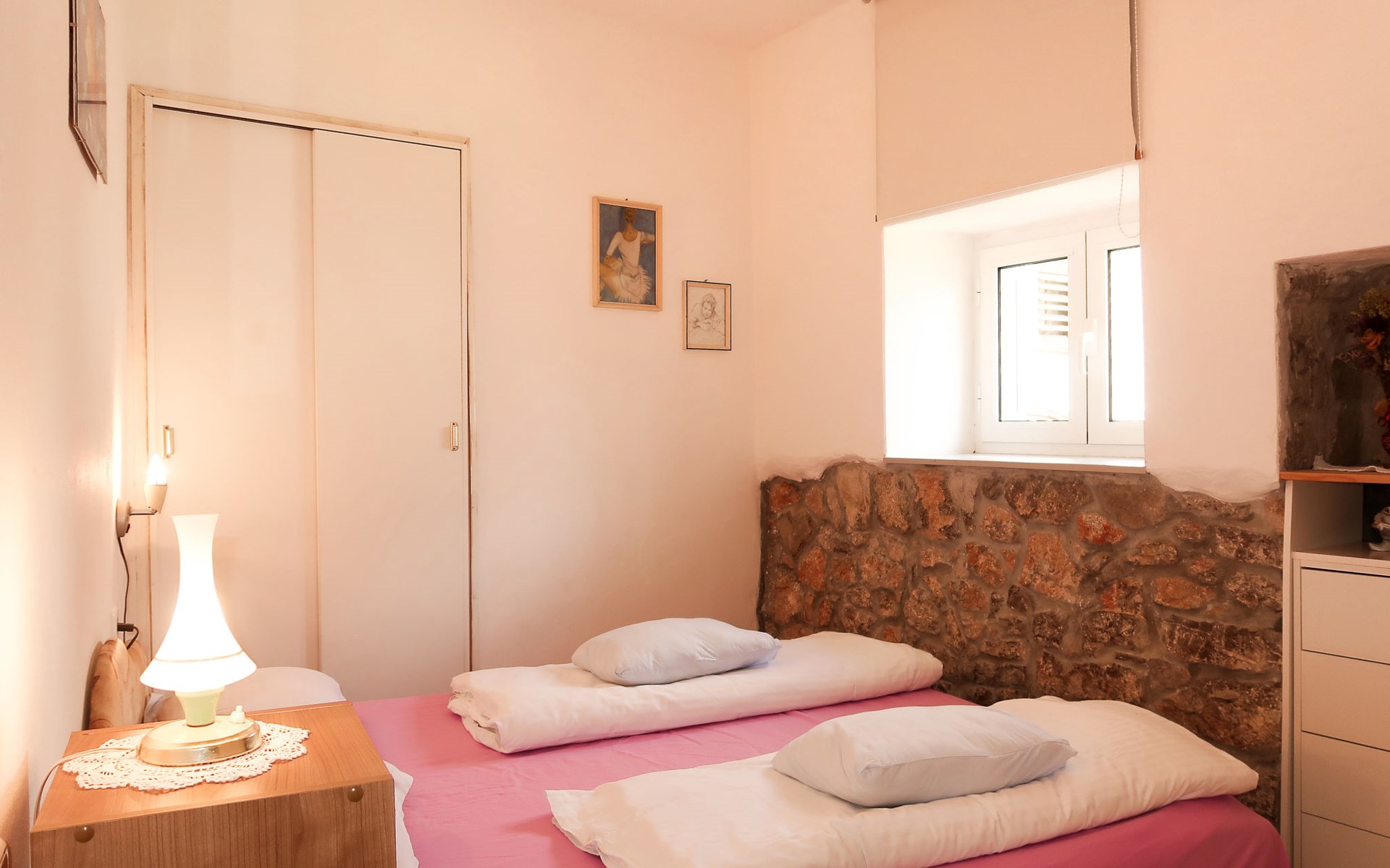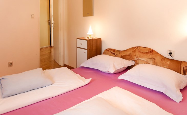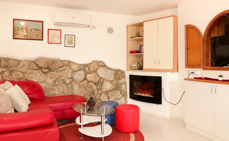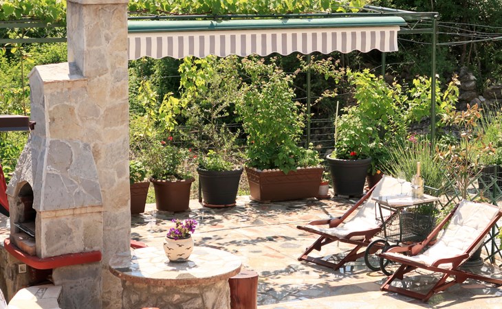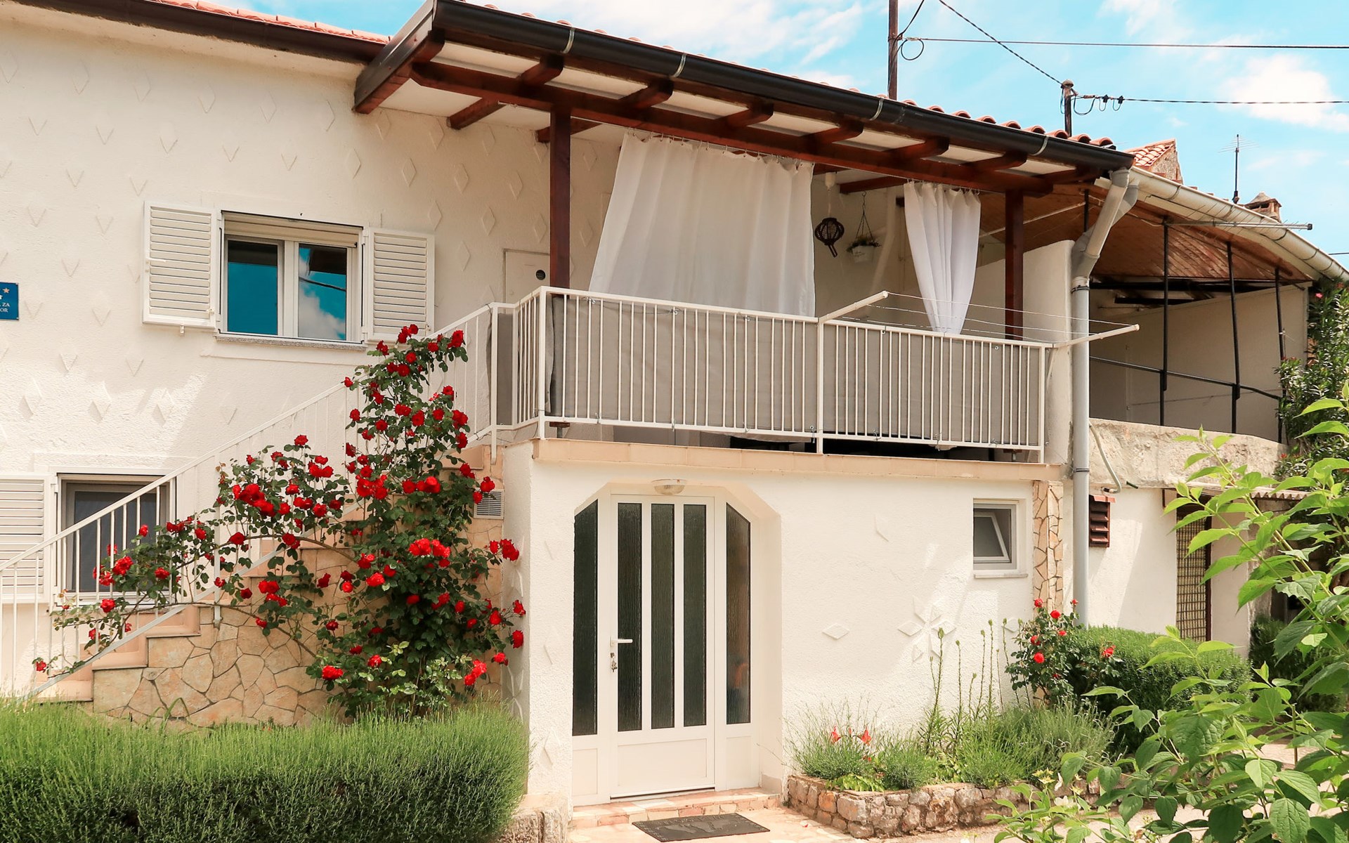 Terraced house "Margeta", 2 storeys. In the hamlet Lakmartin 5 km from the centre of Krk, 2 km from the centre of Kornić, 3.5 km from the centre of Punat, 3 km from the sea, 3 km from the beach. For shared use: property. Private: swimming pool round (2.5 m diameter, depth 80 cm, seasonal availability: 01.May. - 01.Nov.). Terrace (45 m2), garden furniture, barbecue. In the house: internet access, washing machine. Roofed, parking (for 2 cars). Shop 2 km, restaurant 3.5 km, bus stop 2 km, pebble beach 3 km. Please note: airfield 25 km from the property. For privately use: summer kitchen (4 ceramic hobs, dishwasher, fridge). The owner lives on the edge of the property (access via terrace, 45 m2).