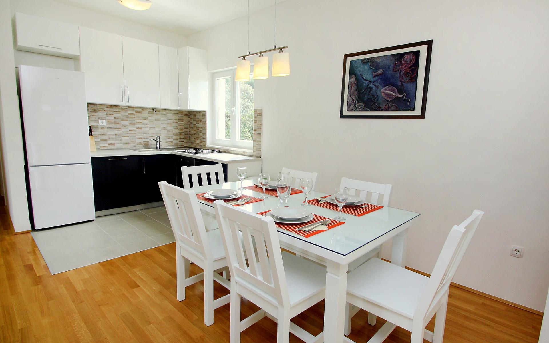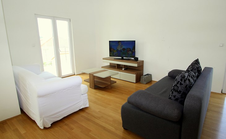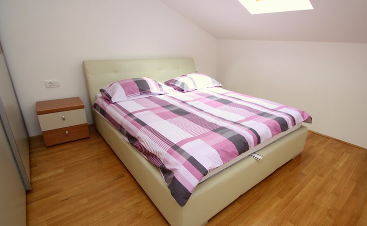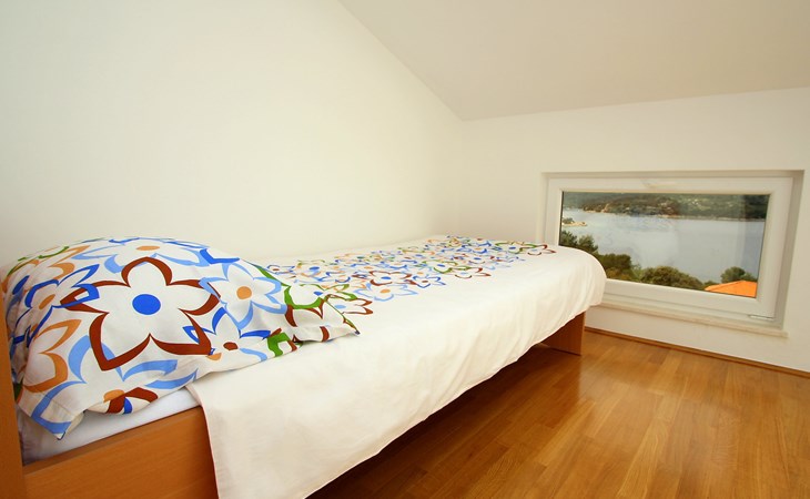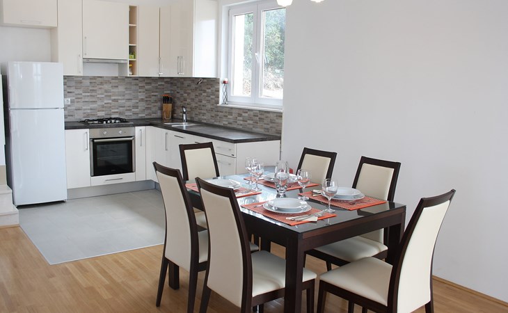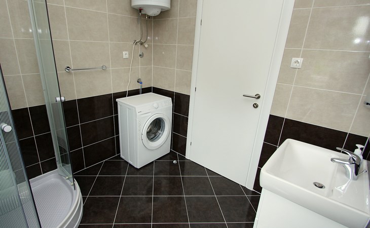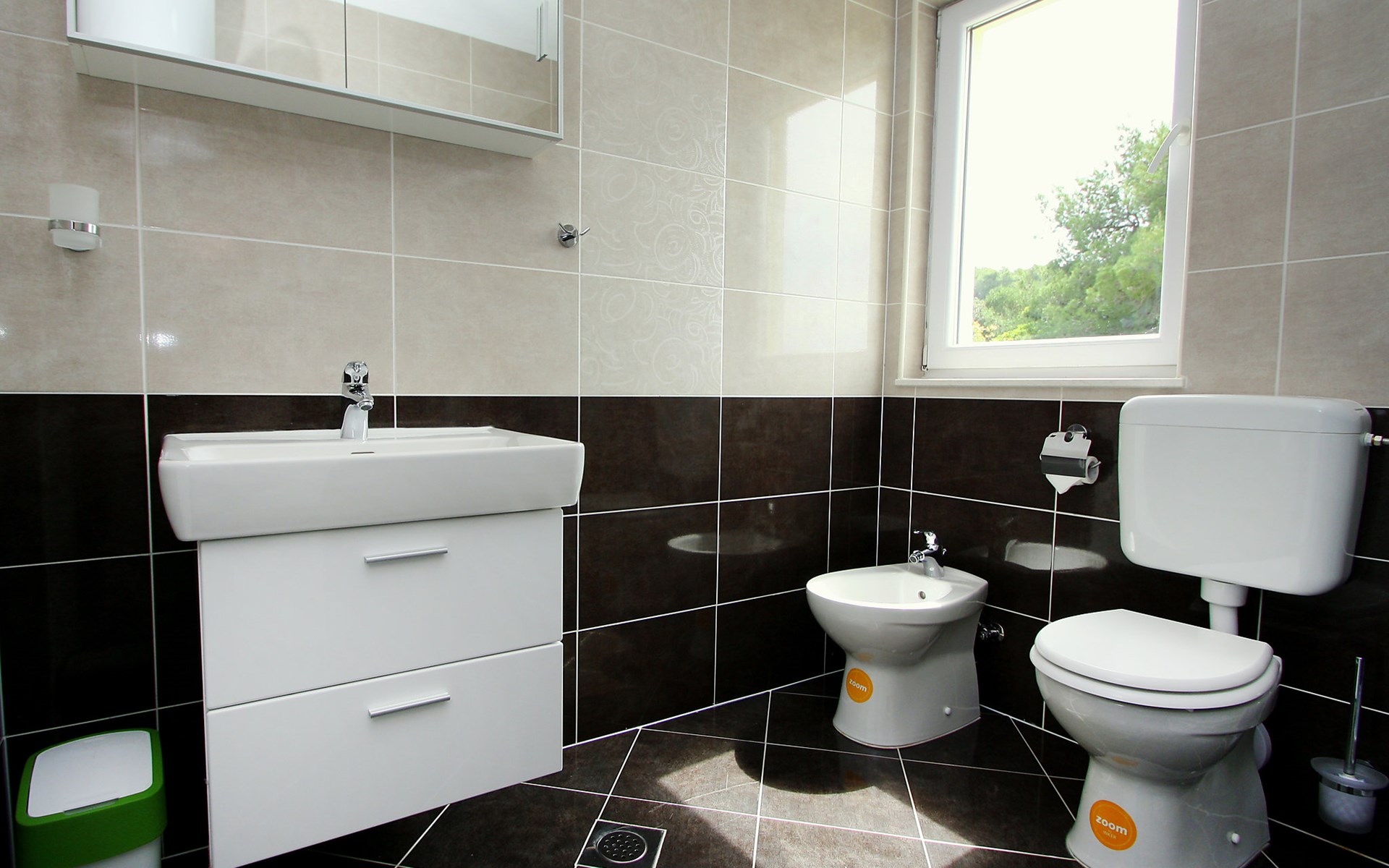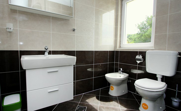 3-family house "Gabriela", 3 storeys. In a quiet, sunny, elevated position, 200 m from the sea, 200 m from the beach. Private: swimming pool angular (9 x 3 m, 29 m2, depth 150 cm, seasonal availability: 01.May. - 01.Oct.) with internal staircase. Outdoor shower, garden furniture, barbecue. In the house: internet access, washing machine. Parking at the house on the premises. Shop 5 km, restaurant 250 m, bus stop 550 m, pebble beach 500 m, rocky beach 200 m. Shop 850 m (15.06.-15.09.).