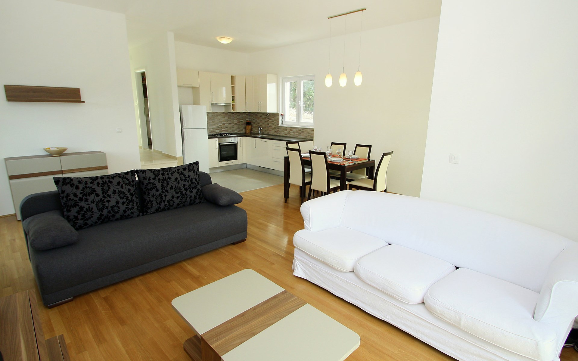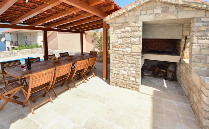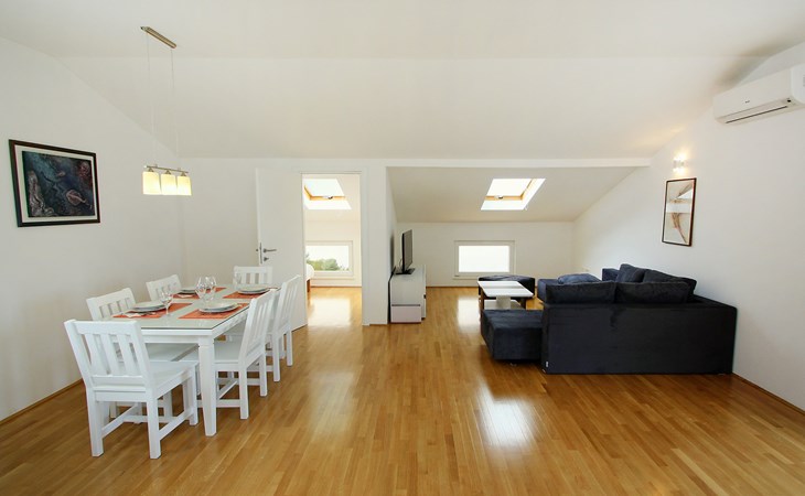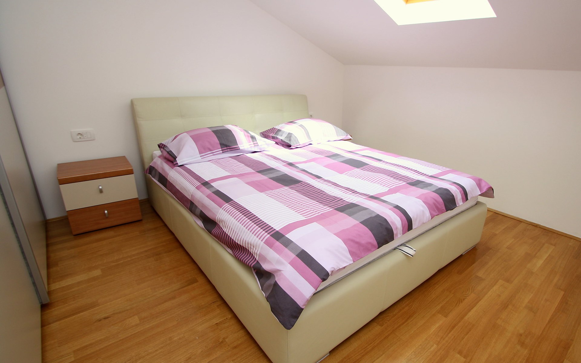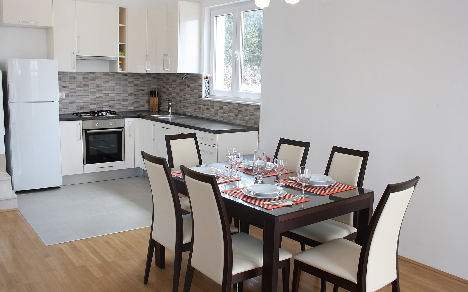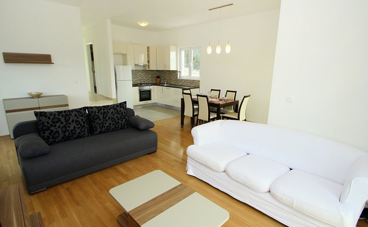 3-family house "Gabriela", 3 storeys. In a quiet, sunny, elevated position, 200 m from the sea, 200 m from the beach. Private: swimming pool angular (9 x 3 m, 29 m2, depth 150 cm, seasonal availability: 01.May. - 01.Oct.) with internal staircase. Outdoor shower, garden furniture, barbecue. In the house: internet access, washing machine. Parking at the house on the premises. Shop 5 km, restaurant 250 m, bus stop 550 m, pebble beach 500 m, rocky beach 200 m. Shop 850 m (15.06.-15.09.).