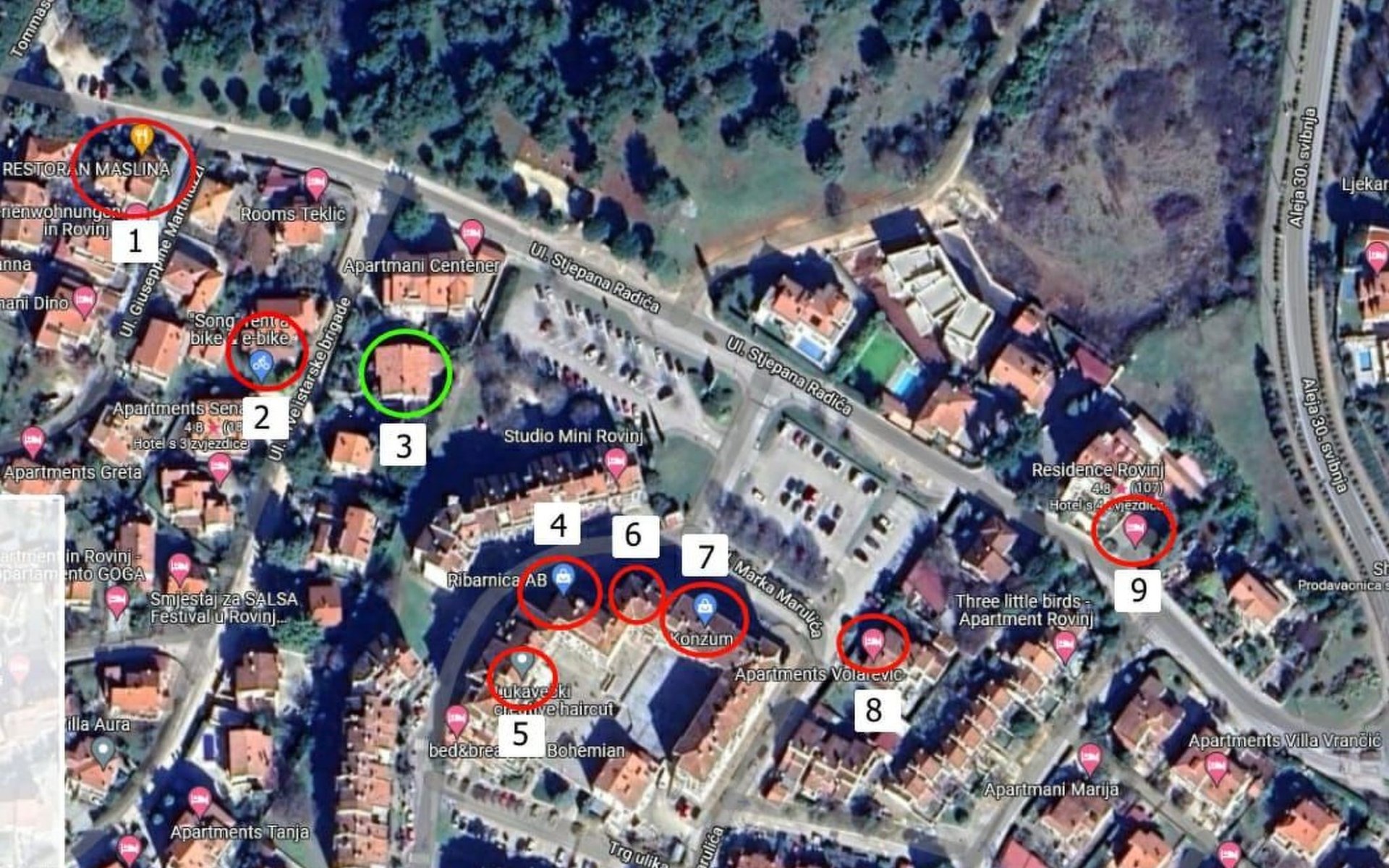 The centre and the beaches are only a ten-minute walk away. If you like cycling, as our guest you will get a ten per cent discount at the adjacent bicycle rental shop. The nearest large supermarket is only 100 metres away or a two-minute walk. There is also a bakery, café and everything you need, so there is no need to go shopping elsewhere. A few metres from the house is a pizzeria with excellent value for money, followed by another one 50 metres away and so on.