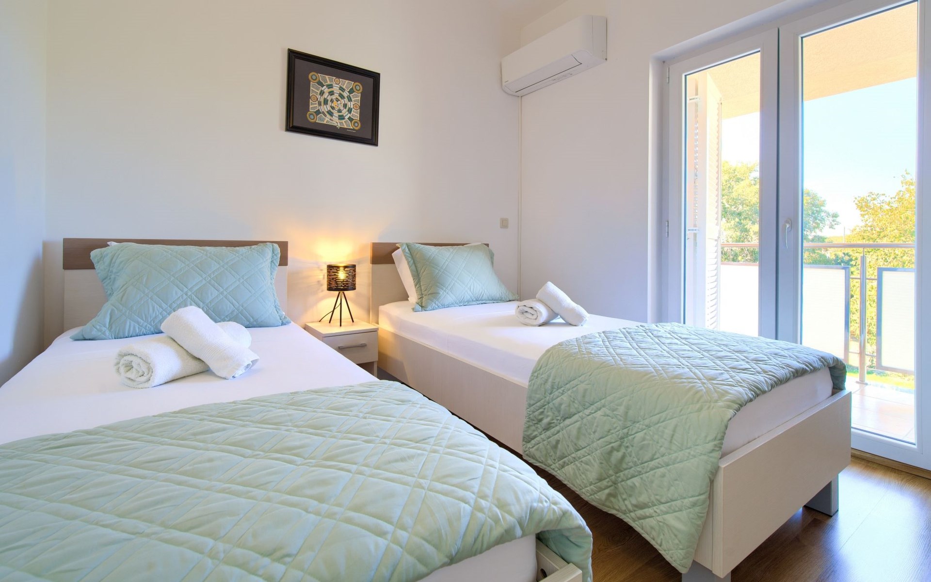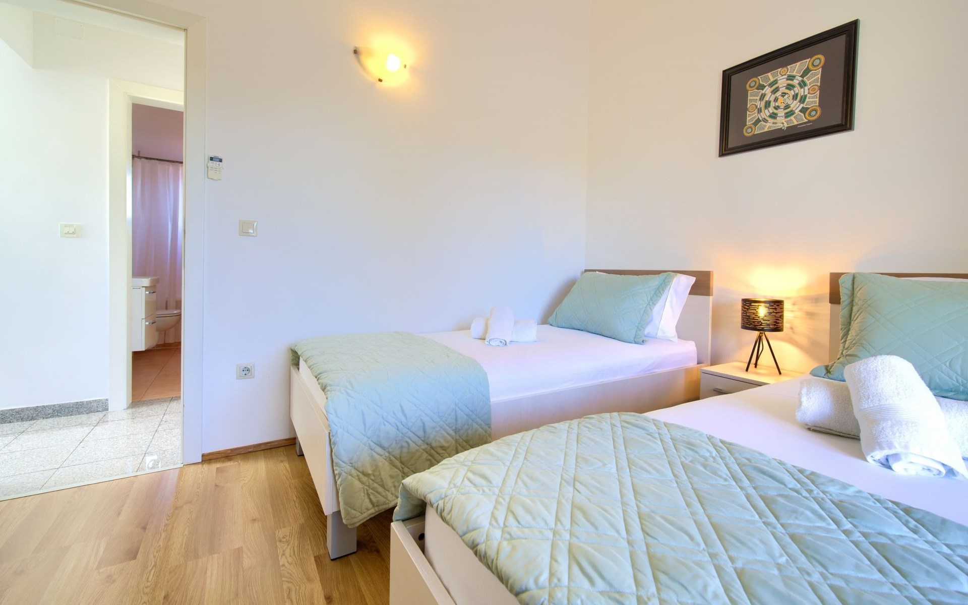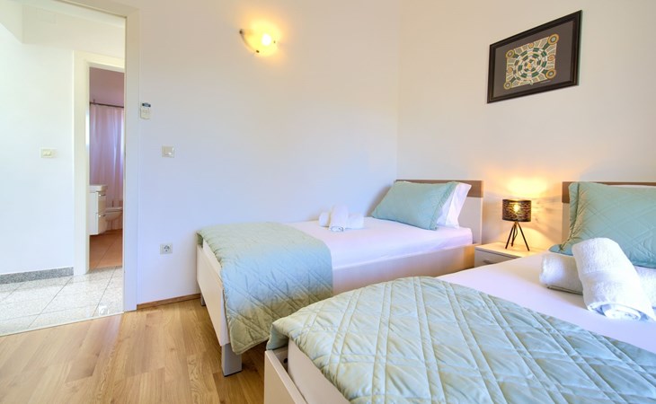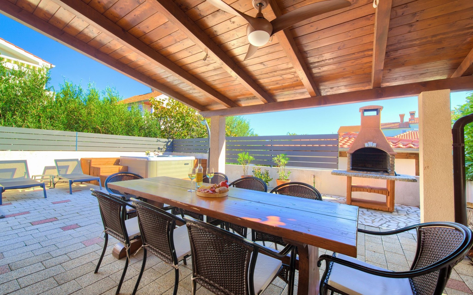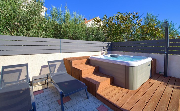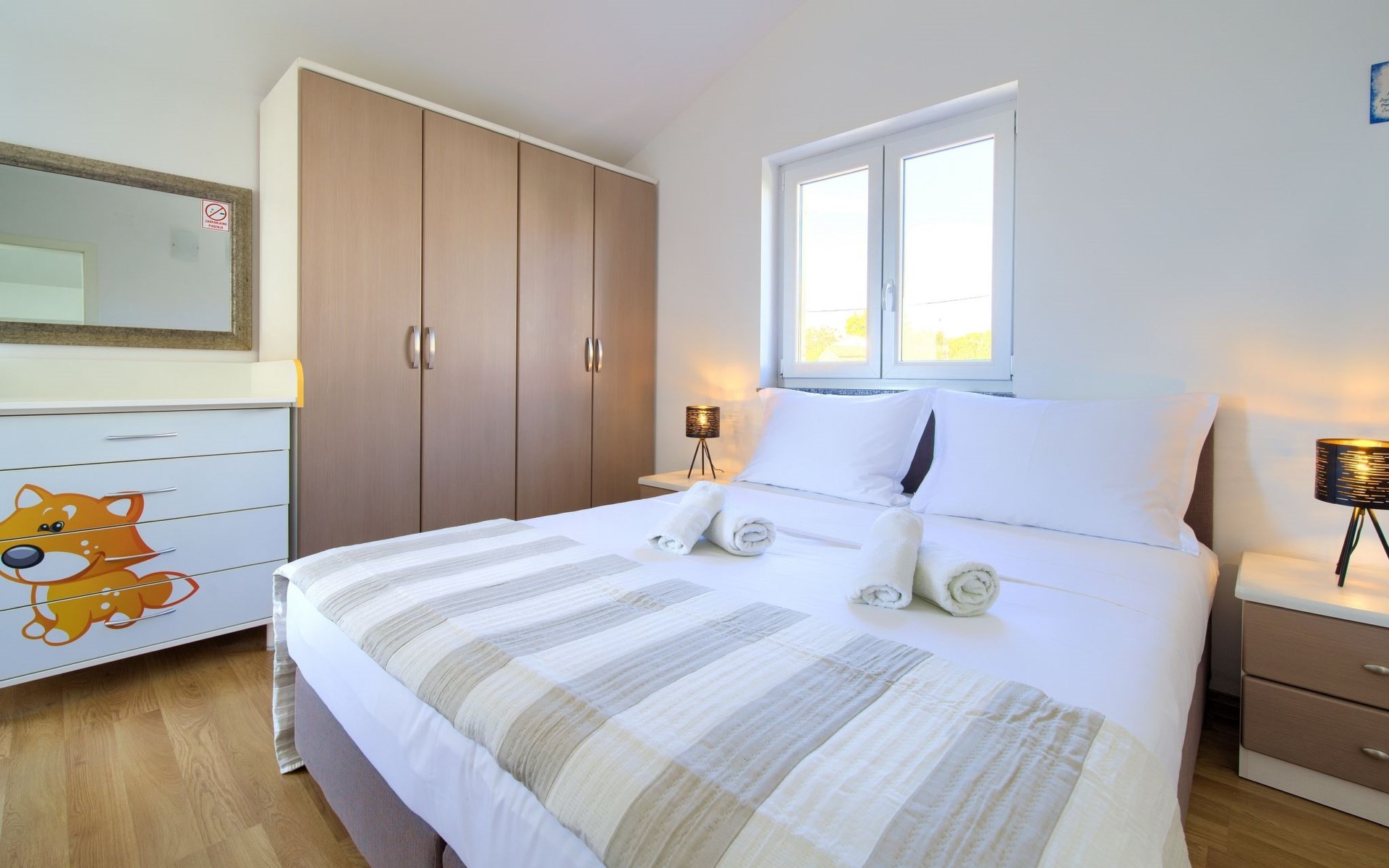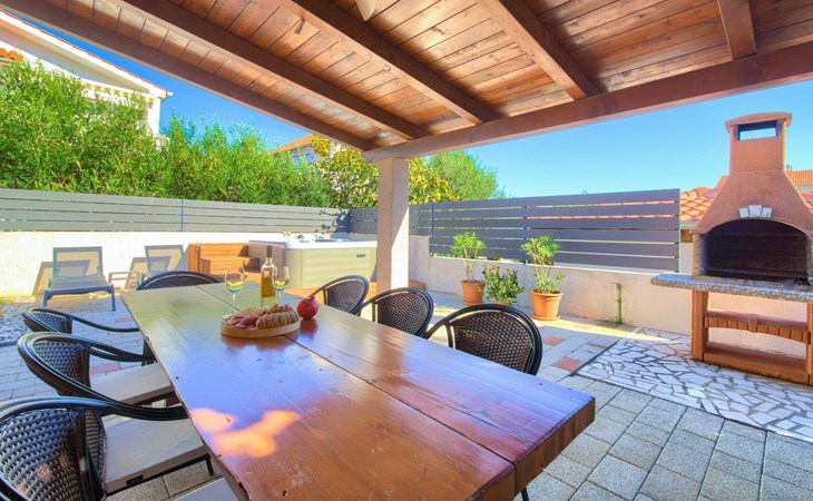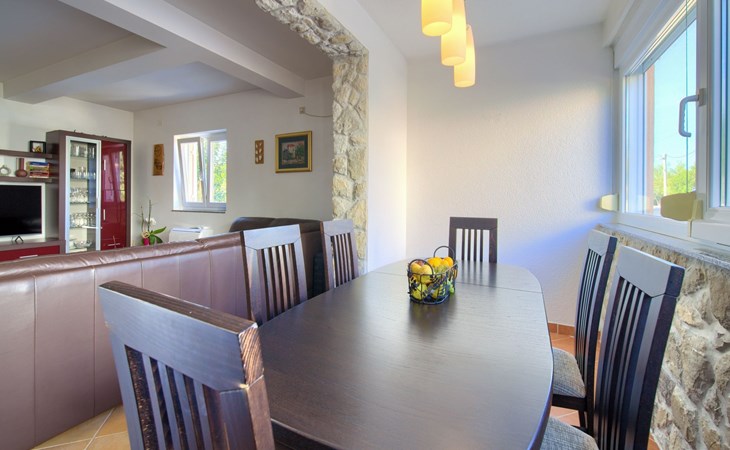 Walking paths partially through the woods all the way to Punat and Krk. Cosy semi-detached house "Bernarda", 2 storeys. 120 m from the centre of Kornić, 3.5 km from the centre of Punat, in a sunny position, 900 m from the sea, 900 m from the beach. Private: property 300 m2 (fenced). Outdoor shower, hot tub. In the house: internet access, washing machine, tumble dryer. Parking (for 2 cars) at the house on the premises. Shop 110 m, restaurant, café 100 m, bus stop 1.3 km, pebble beach, public bathing area 900 m. Marina 2.5 km, walking paths from the house, cycle lane 200 m. Nearby attractions: Wakeboard Cable Krk 1.5 km, Diving club 1.5 km, Biserujka cave, Franciscan monastery island Košljun 3 km, The Frankopan castle Krk 8 km. Groups of teenagers on request only.