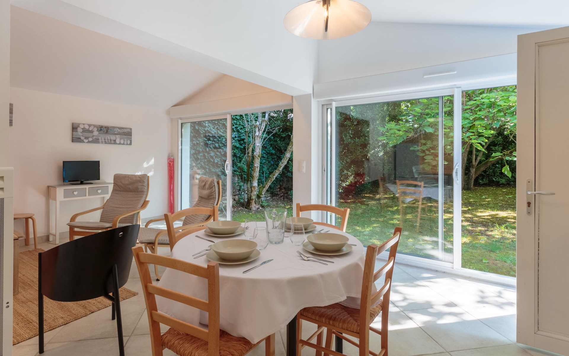 The land has two vacation rentals: FR3206.146.1 and FR3206.145.1, 40 m far away from each other and separated by a fence and a hedge plant. From the shared parking, a private access road serves each of the rentals. Single-family house "Domremy", built in 1930, renovated in 2016. 150 m from the centre of Saint Palais sur Mer, in a quiet position in the residential district, 150 m from the sea, 150 m from the beach, road to cross, north-east facing position. Private: garden (fenced). Barbecue, parking space n 1. Shop 150 m, grocery 200 m, supermarket 1.5 km, restaurant, bar 150 m, bakery 300 m, bicycle rental 100 m, bus stop "du Rha" 290 m, railway station "Royan" 7 km, sandy beach "Bureau - Saint Palais sur Mer" 150 m, park "Luna Park (Juillet - Août)" 16 km, indoor swimming pool 7 km, thermal baths "Thalassothérapie Thalazur Royan" 5 km, lake Saint Palais sur Mer 800 m. Sports harbour 5.7 km, golf course (18 hole) 2.3 km, surf school 700 m, sailing school 850 m, tennis 2 km, indoor tennis centre 2 km, minigolf 3.7 km, riding stable 2.9 km, cycle lane 100 m. Nearby attractions: Zoo de La Palmyre 10 km, Hippodrome - La Palmyre 11 km, Fort Boyard - Fouras 59 km, Centre aquatique Iléo - Ile d'Oléron 46 km, Aéeroport La Rochelle - Ile de Ré 81 km, Aéroport Bordeaux - Merignac 113 km. Please note: the keys‘ handover takes place by the agency Interhome in Vaux sur Mer, 3 km. Property ref. FR3206.145.1 is situated on the same property.