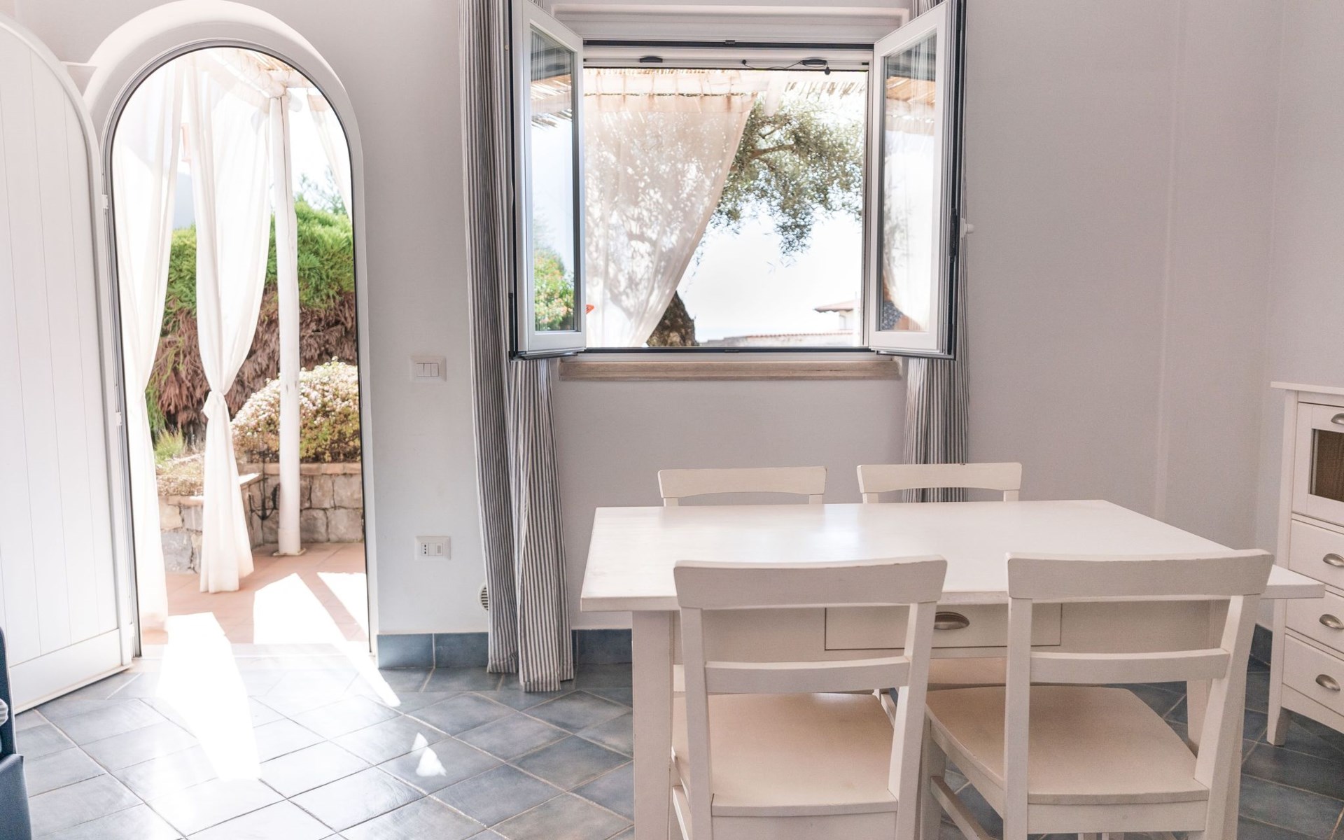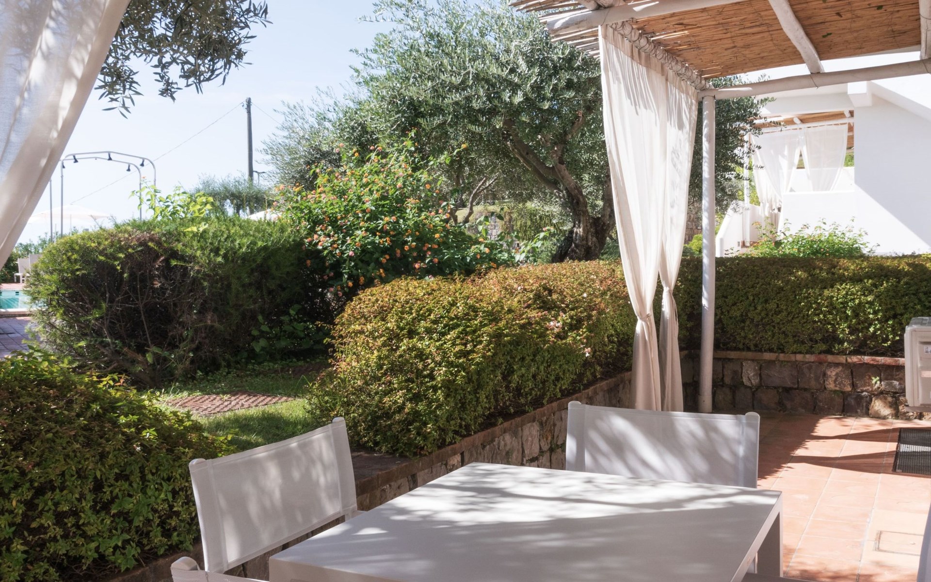 Surrounded by lush Mediterranean gardens, the ambience recalls the evocative stone alleys of ancient villages, welcoming guests with genuine hospitality.