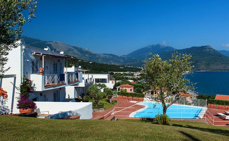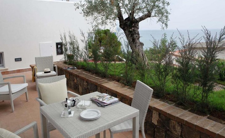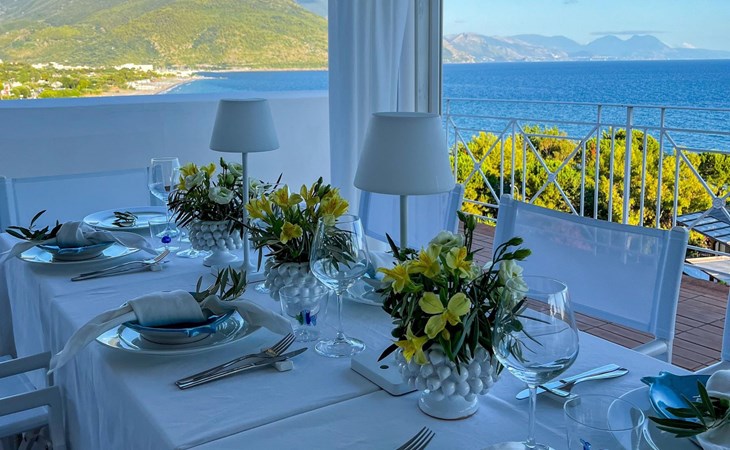 The panoramic swimming pool, overlooking the Gulf of Sapri, is perfect for moments of relaxation, while the lounge bar offers breakfast and aperitifs at sunset. The reception, always attentive, organises itineraries and excursions for a tailor-made stay. Just a few steps away, the well-equipped beach and the pier for boat trips invite you to discover the Cilento National Park and the Gulf of Policastro among sea caves and secret coves, complemented by activities such as yoga, massages and outdoor sports.