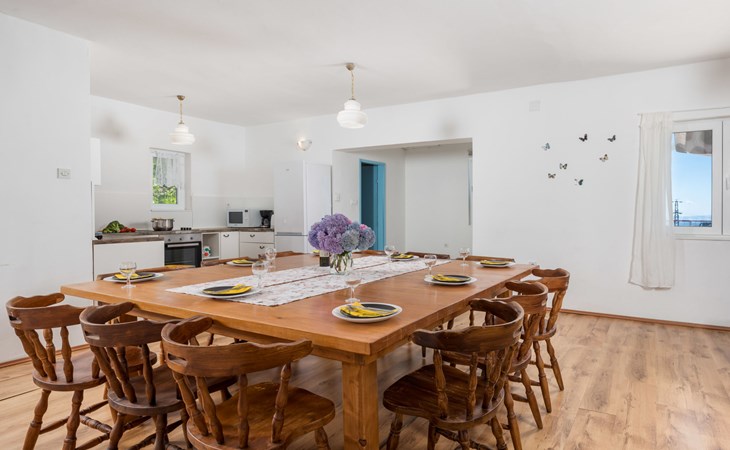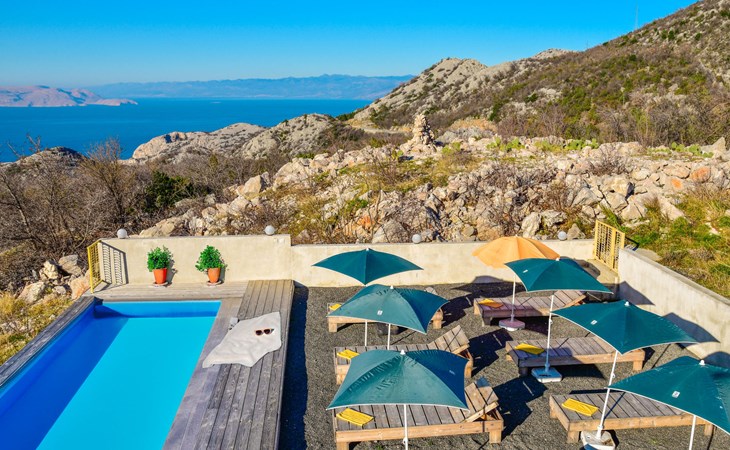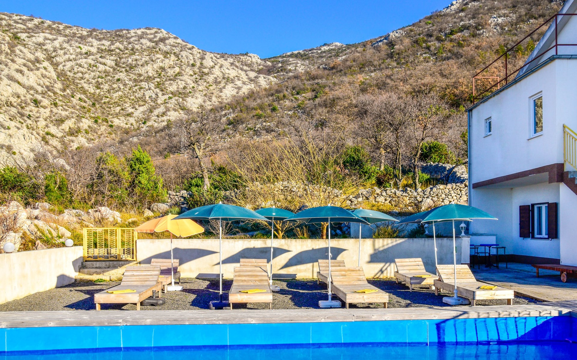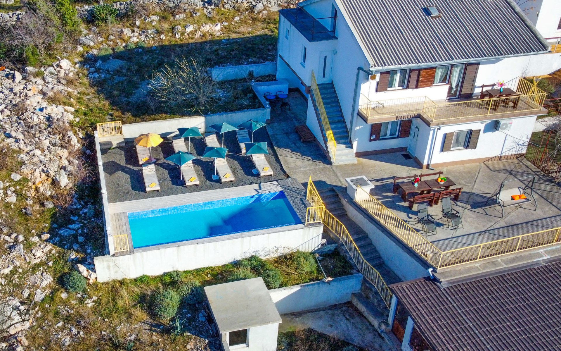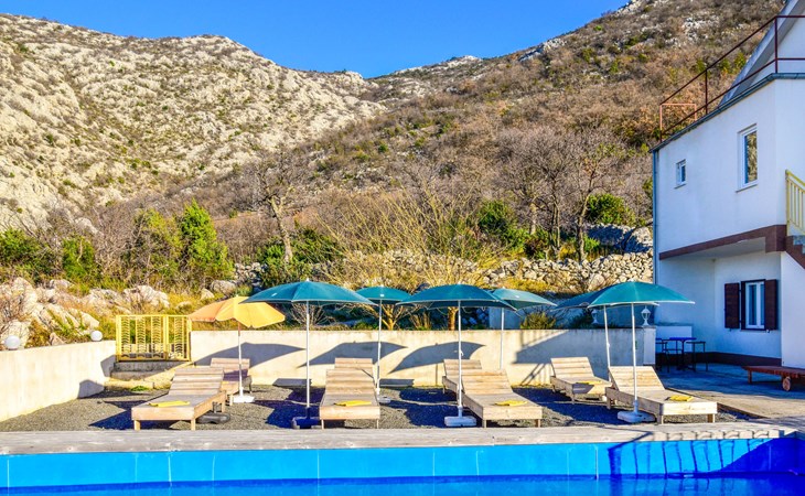 Ažić Lokva 10 km from Sveti Juraj: Comfortable 2-family house "Marita", 2 storeys. Above Lukovo 21 km from the centre of Senj, 22 km from the centre of Jablanac (island Rab), in a sunny, elevated position, 4 km from the sea, 4 km from the beach. Private: property 720 m2 (fenced), swimming pool (8 x 3 m, depth 140 cm, seasonal availability: 15.Jun. - 15.Sep.) with internal staircase. Terrace (15 m2), garden furniture, barbecue. In the house: internet access, table tennis, trampoline, washing machine. Parking (for 4 cars) at the house on the premises. Shop 10 km, supermarket 21 km, restaurant 10 km, café 4 km, bus stop 85 m, pebble beach 4 km. Sports harbour 19 km. Nearby attractions: Tvrđava Nehaj 19 km, National Park Sjeverni Velebit 30 km. Part of the house is closed and unoccupied.