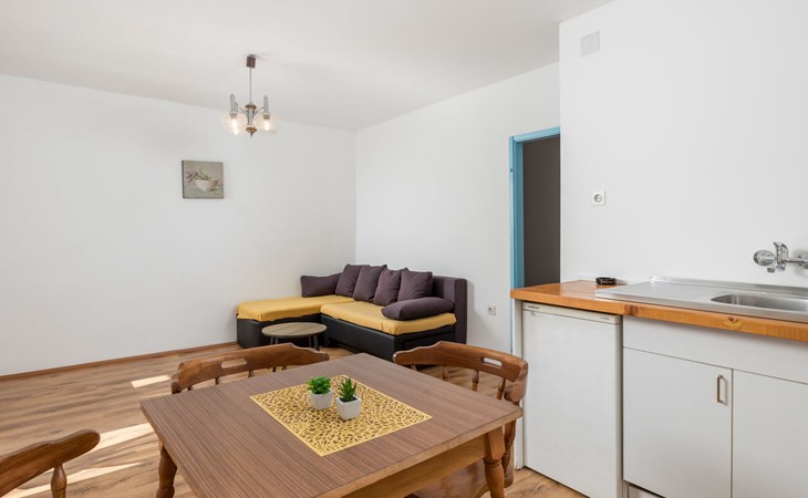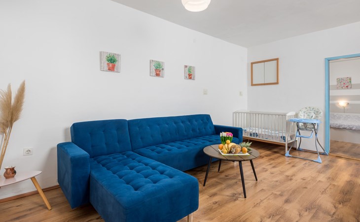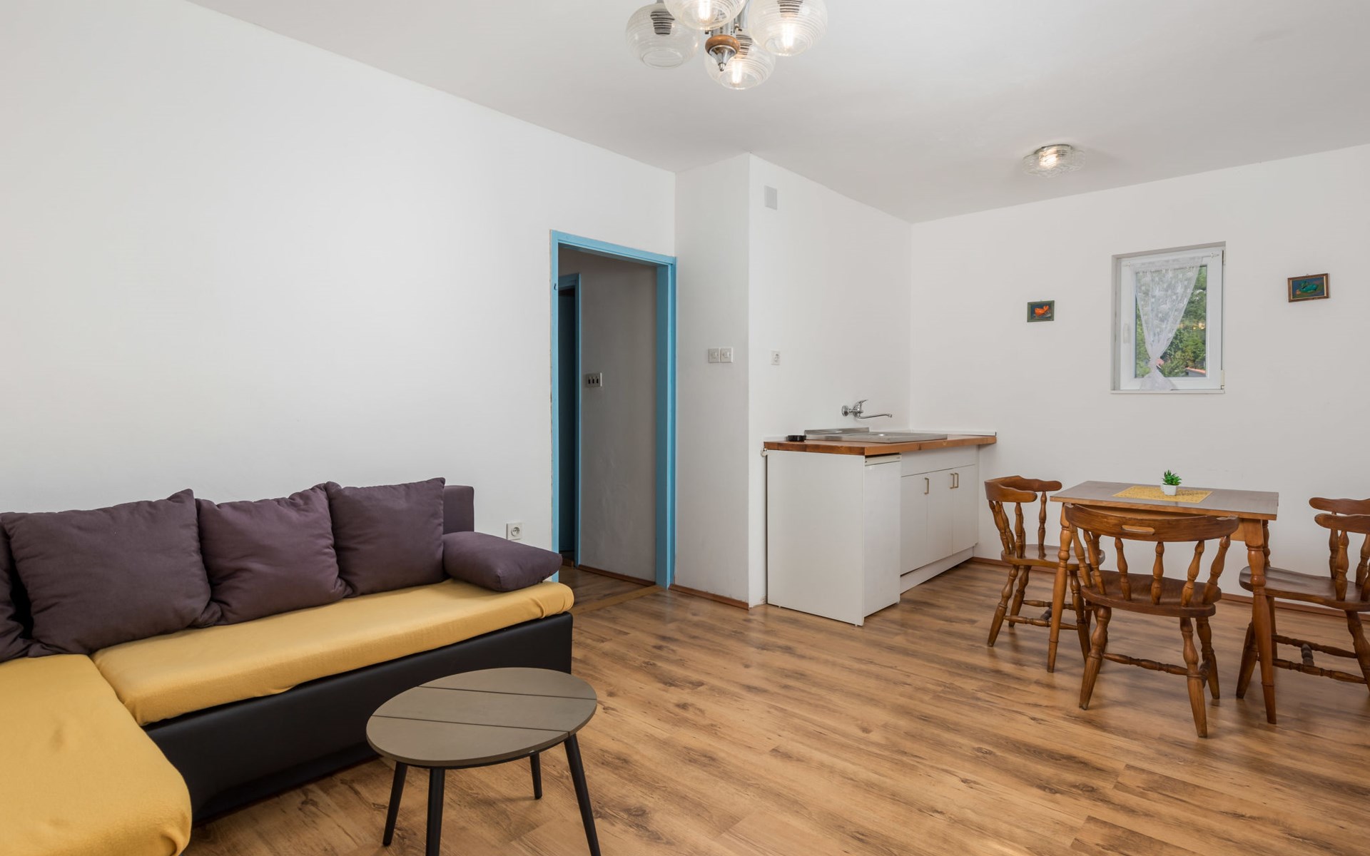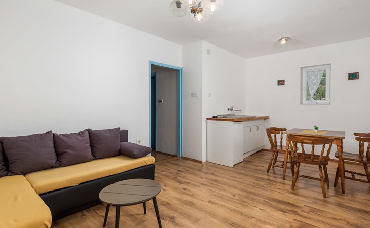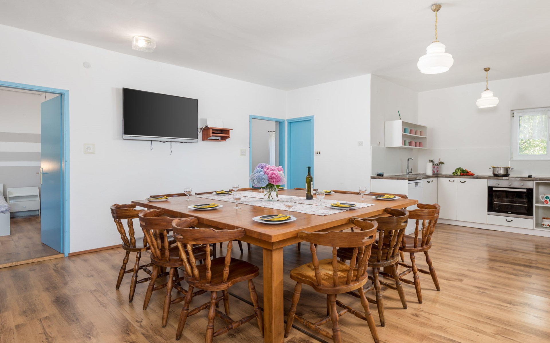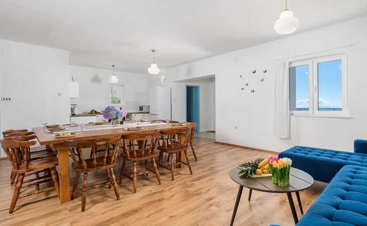 Ažić Lokva 10 km from Sveti Juraj: Comfortable 2-family house "Marita", 2 storeys. Above Lukovo 21 km from the centre of Senj, 22 km from the centre of Jablanac (island Rab), in a sunny, elevated position, 4 km from the sea, 4 km from the beach. Private: property 720 m2 (fenced), swimming pool (8 x 3 m, depth 140 cm, seasonal availability: 15.Jun. - 15.Sep.) with internal staircase. Terrace (15 m2), garden furniture, barbecue. In the house: internet access, table tennis, trampoline, washing machine. Parking (for 4 cars) at the house on the premises. Shop 10 km, supermarket 21 km, restaurant 10 km, café 4 km, bus stop 85 m, pebble beach 4 km. Sports harbour 19 km. Nearby attractions: Tvrđava Nehaj 19 km, National Park Sjeverni Velebit 30 km. Part of the house is closed and unoccupied.