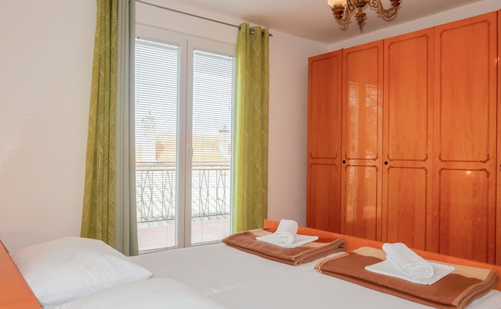 Semi-detached house "Nena". 100 m from the centre of Sveti Juraj, on a slope, 100 m from the sea, 200 m from the beach. In the house: internet access. Parking (for 2 cars) at the house on the premises. Shop 150 m, supermarket 9 km, restaurant 100 m, bus stop 400 m, pebble beach 200 m.