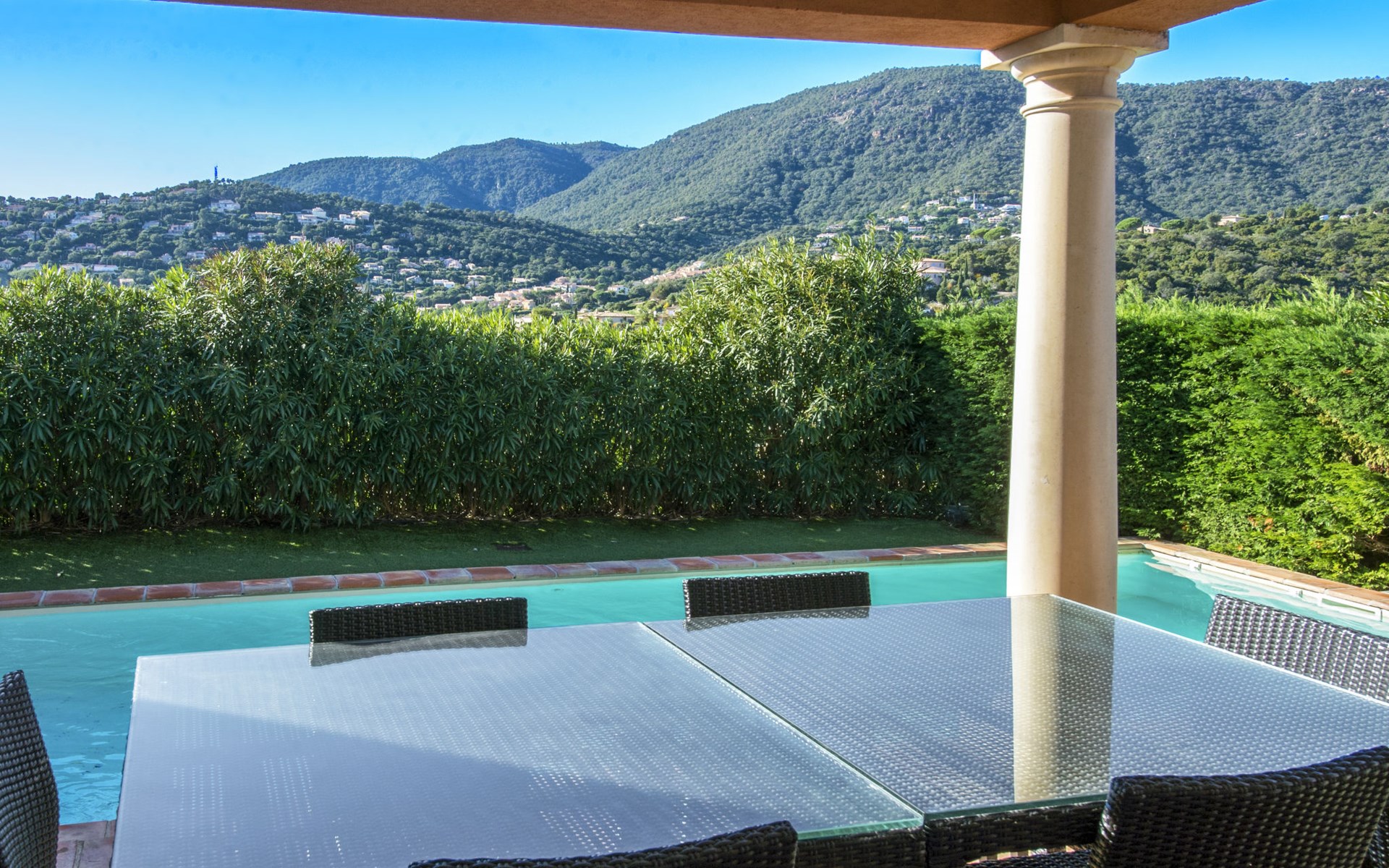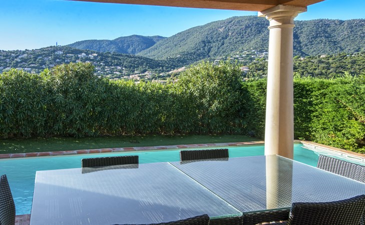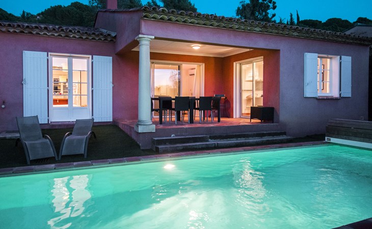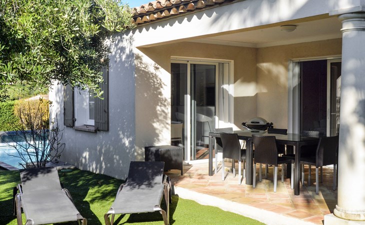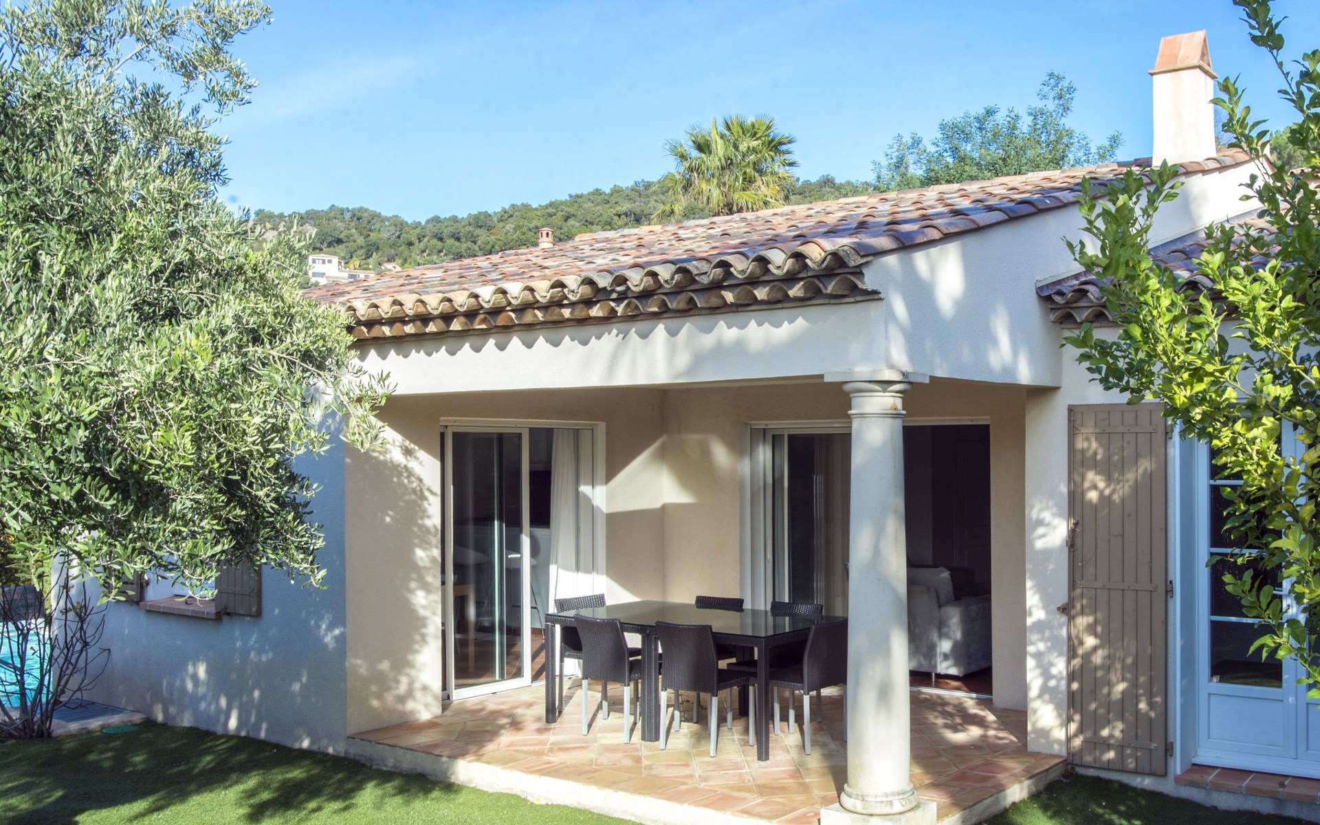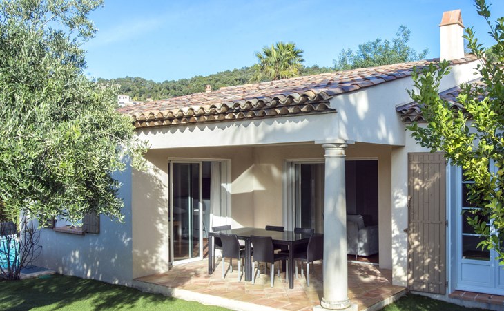 Beautiful, cosy resort "Domaine de l'Eilen", built in 2009. 22 houses in the residence. 2.5 km from the centre of Cavalaire, 18 km from the centre of Saint Tropez, in an elevated position on a slope, 1 km from the sea, 1 km from the beach. For shared use: table tennis, boccia. Private: garden 200 m2 (fenced) with wildlife garden and trees, swimming pool (8 x 3 m, seasonal availability: 09.Apr. - 15.Oct.). In the complex: reception, WiFi. Bread roll service. Parking at the house on the premises. Shop 2.5 km, bus stop "Arret de bus - Halte routière" 2.6 km. Please note: the photograph shows a typical example. The holiday properties may differ in living space, floorplan, equipment and furnishing.