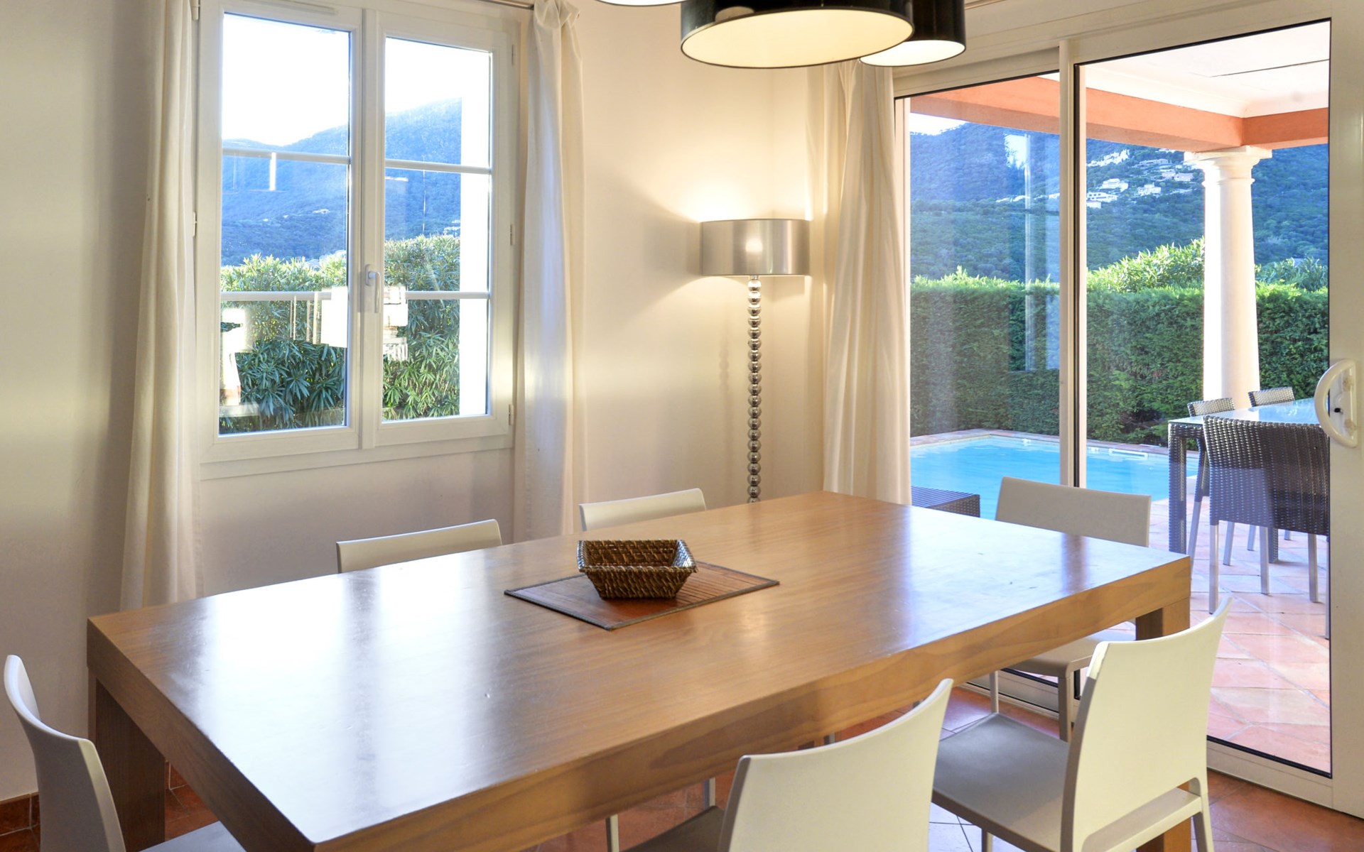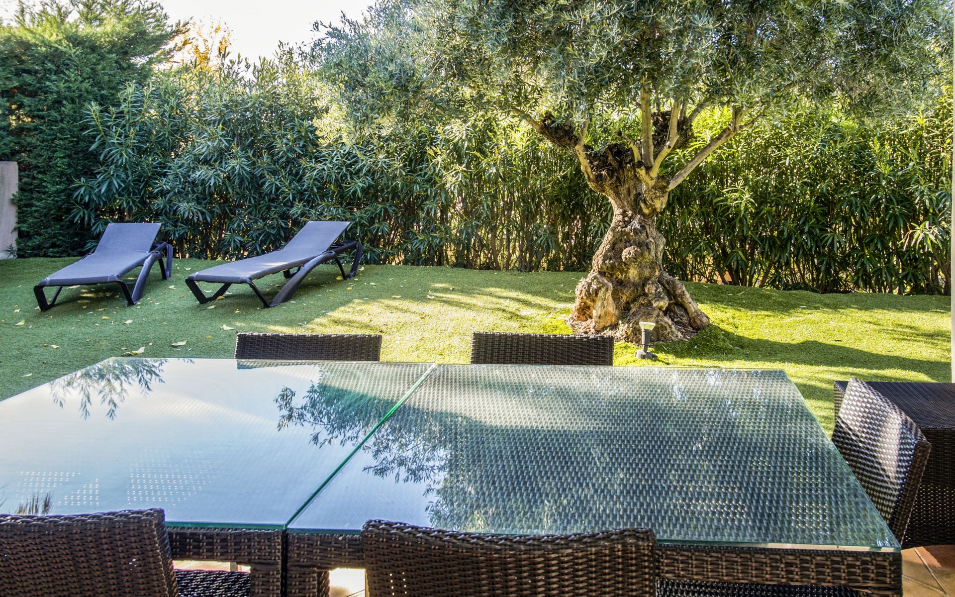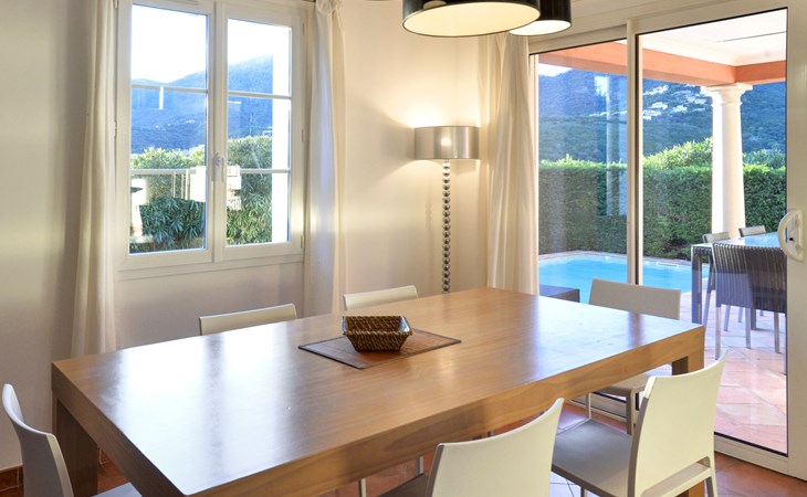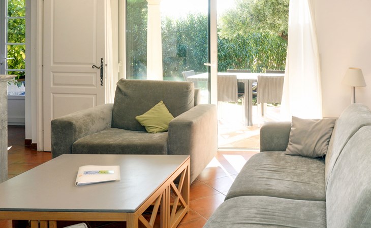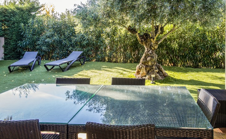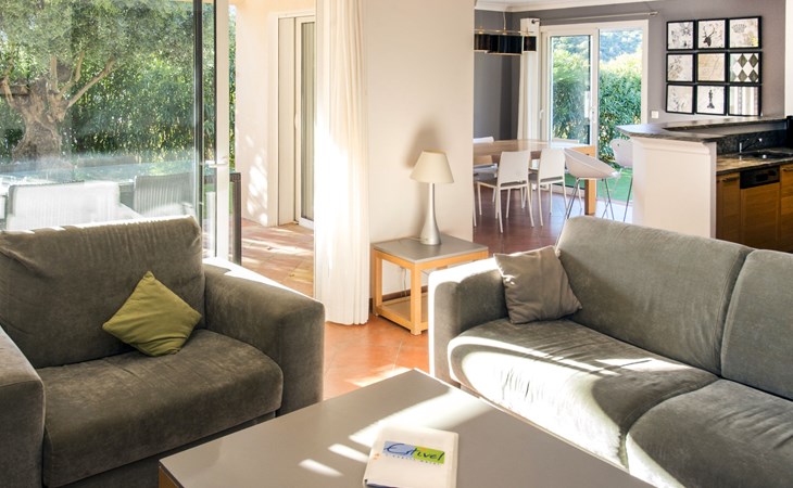 Beautiful, cosy resort "Domaine de l'Eilen", built in 2009. 22 houses in the residence. 2.5 km from the centre of Cavalaire, 18 km from the centre of Saint Tropez, in an elevated position on a slope, 1 km from the sea, 1 km from the beach. For shared use: table tennis, boccia. Private: garden 200 m2 (fenced) with wildlife garden and trees, swimming pool (8 x 3 m, seasonal availability: 09.Apr. - 15.Oct.). In the complex: reception, WiFi. Bread roll service. Parking at the house on the premises. Shop 2.5 km, bus stop "Arret de bus - Halte routière" 2.6 km. Please note: the photograph shows a typical example. The holiday properties may differ in living space, floorplan, equipment and furnishing.
