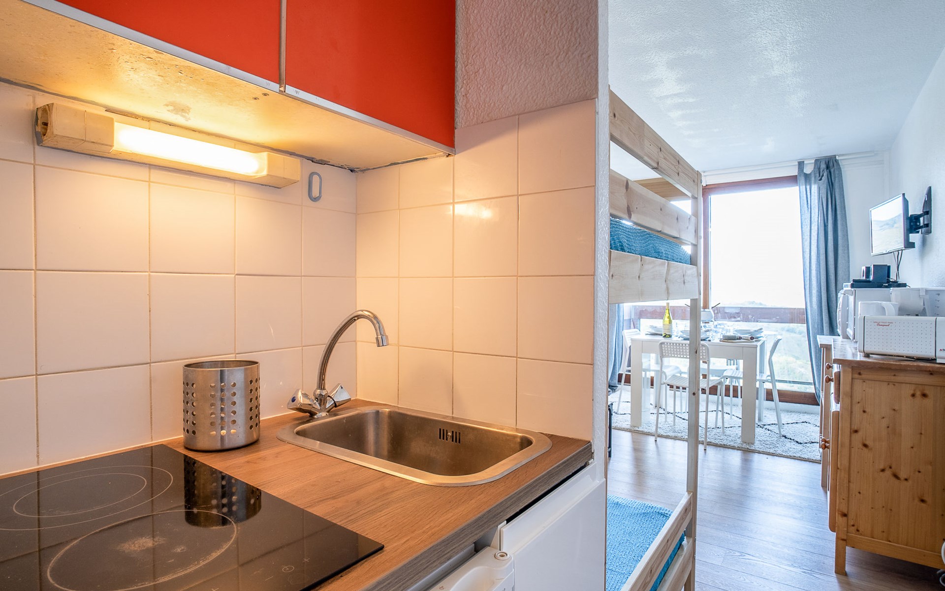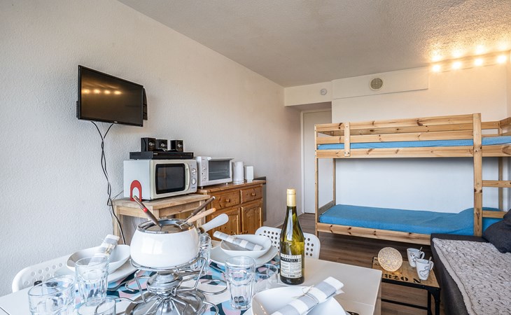 Apartment house "Soyouz Vanguard", 19 storeys. 150 m from the centre, 150 m from the skiing area. For shared use: swimming pool heated (seasonal availability: 14.Dec. - 11.Apr. and 28.Jun. - 29.Aug. pool opening hours: 10:00-19:30). In the complex: internet access, lift, storage room for skis. Public parking. Shop 200 m, grocery 50 m, restaurant, bar 200 m, bus stop 450 m, railway station "St Jean de Maurienne" 15 km, outdoor swimming pool 200 m. Skisport facilities, slopes, ski school 200 m, ski-kindergarten 50 m, sled run 200 m. Please note: Additional accommodations can be booked. The swimming pool facilities are 150 m from the residence at the municipal pool. Entrance for under 3’s is not allowed. Children between 3 and 5 years old are allowed subject to weather conditions (in winter). Entrance tickets to the swimming pool are included in your rental price and will be given to you when you check in.
