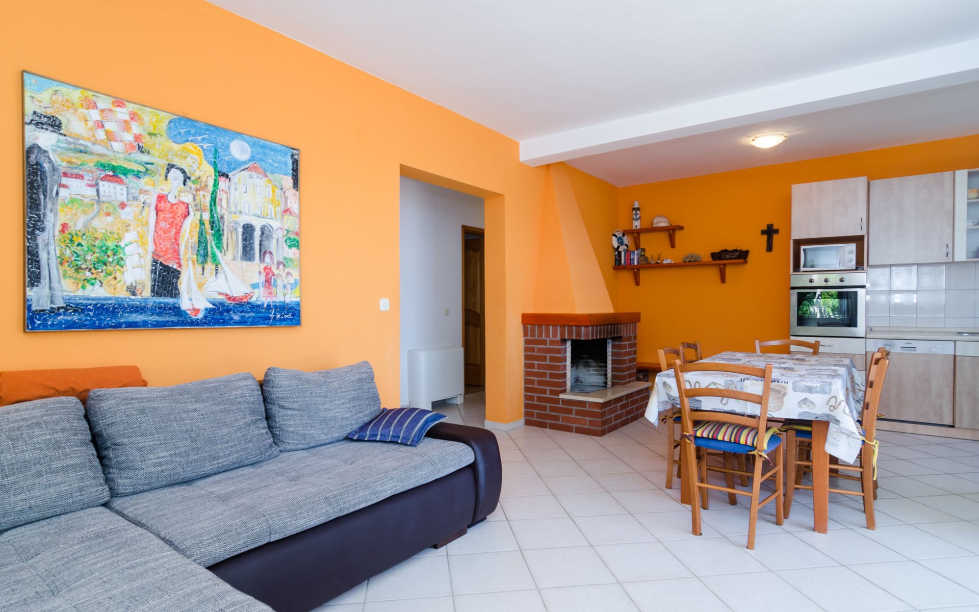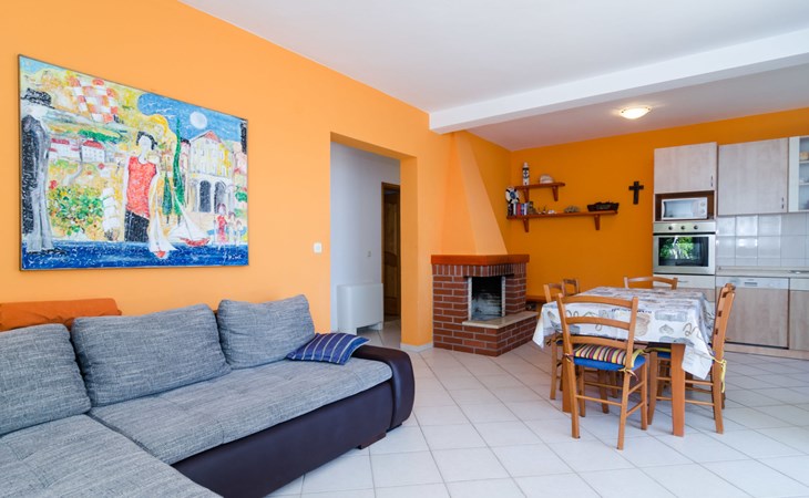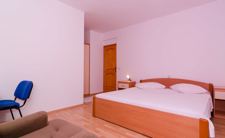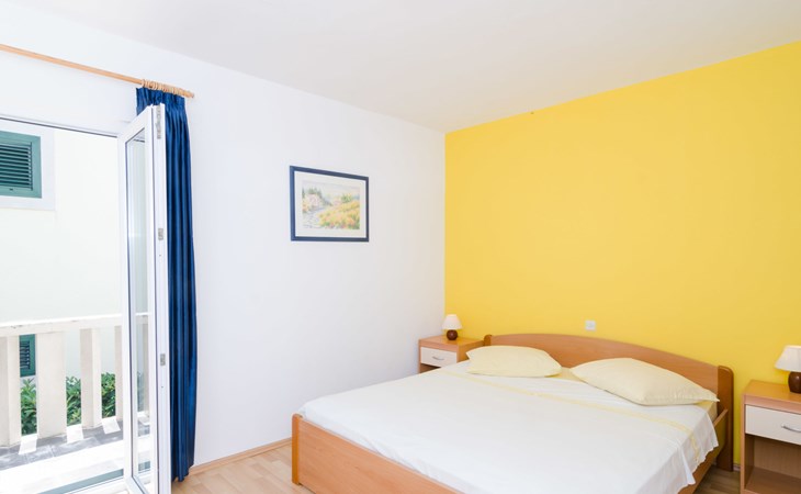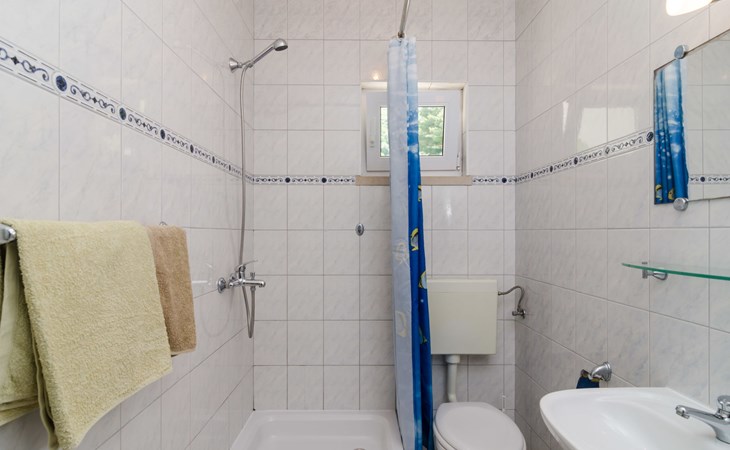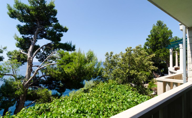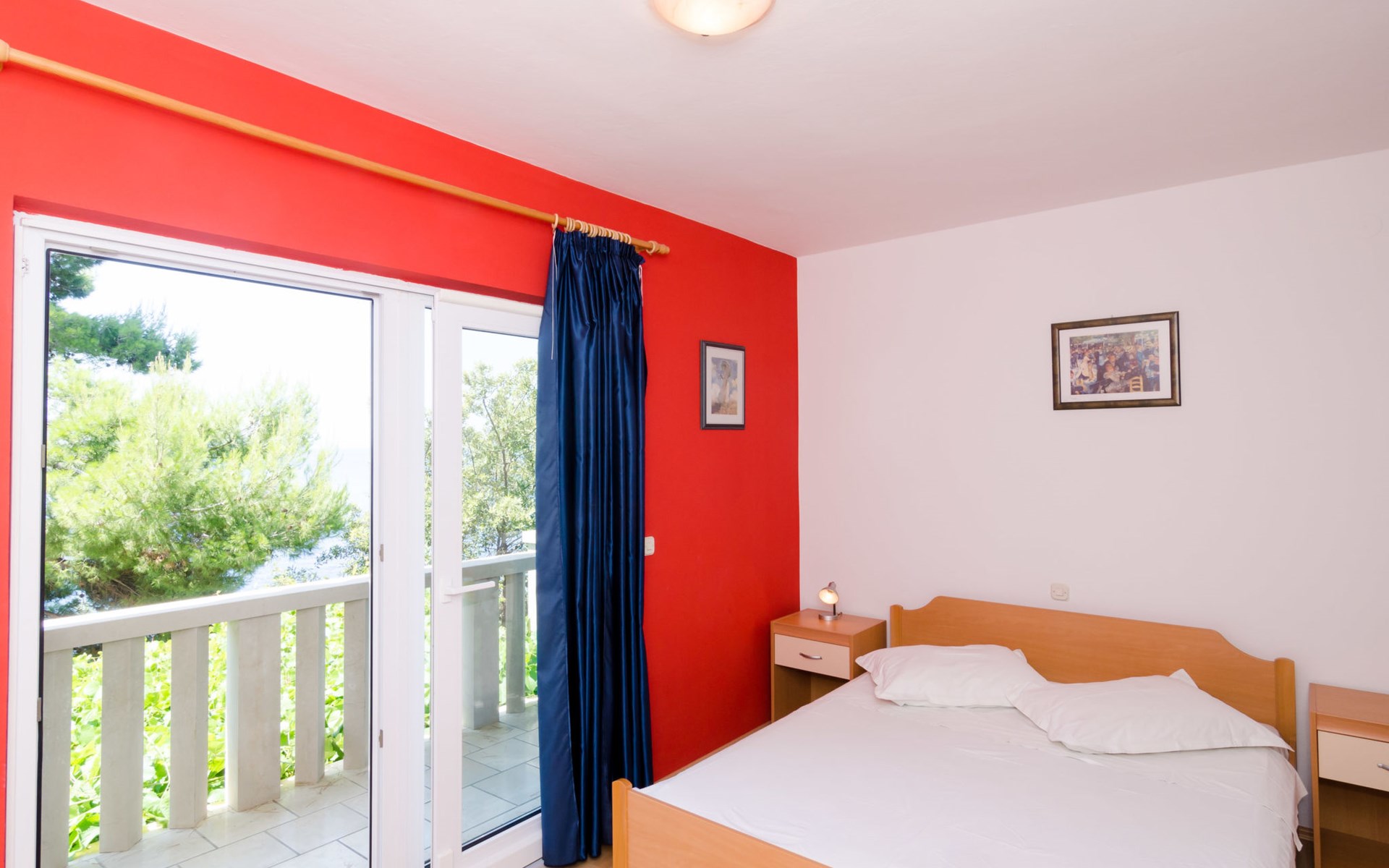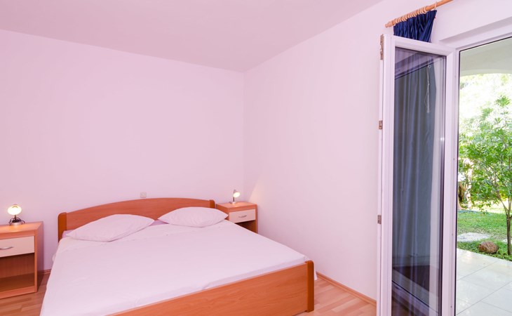 Dingač - Borak 5 km from Trstenik: Beautiful apartment house "Plavac Mali". Outside the resort, 4 km from the centre of Potomje, in a quiet, sunny position on a slope, 30 m from the sea, 30 m from the beach, in a cul-de-sac, in the countryside, south facing position. For shared use: outdoor shower, barbecue. In the house: internet access. Parking at the house on the premises. Shop 4 km, restaurant 30 m, bus stop 4.2 km, pebble beach 130 m, rocky beach 30 m. The restaurant 30m from the house opened from 20.06. - 01.09. Further restaurant in Trstenik, 5km from the house. In Borak renting of diving equipement and boat diving excursions. In Žuljana diving school, 24 km from Borak.