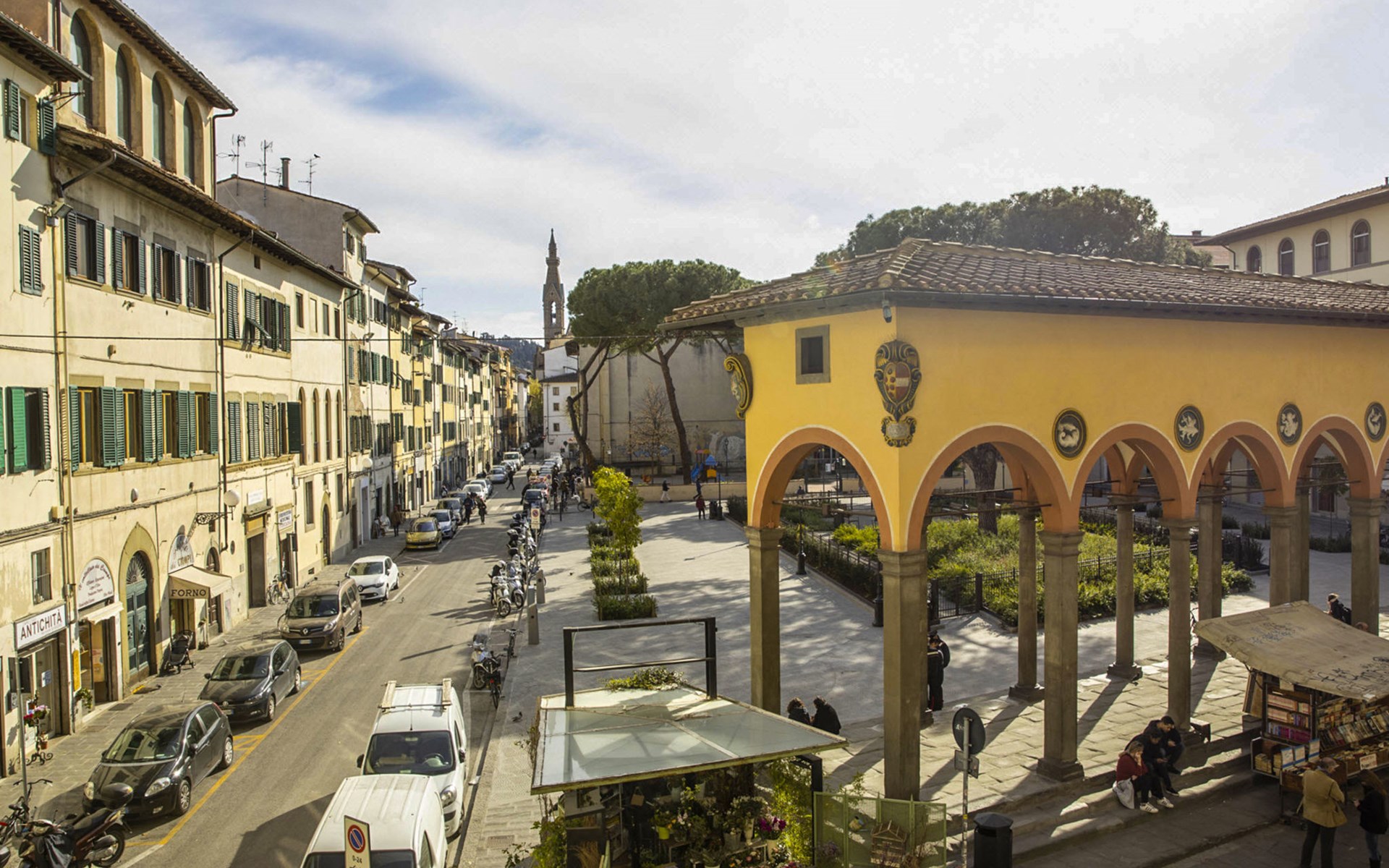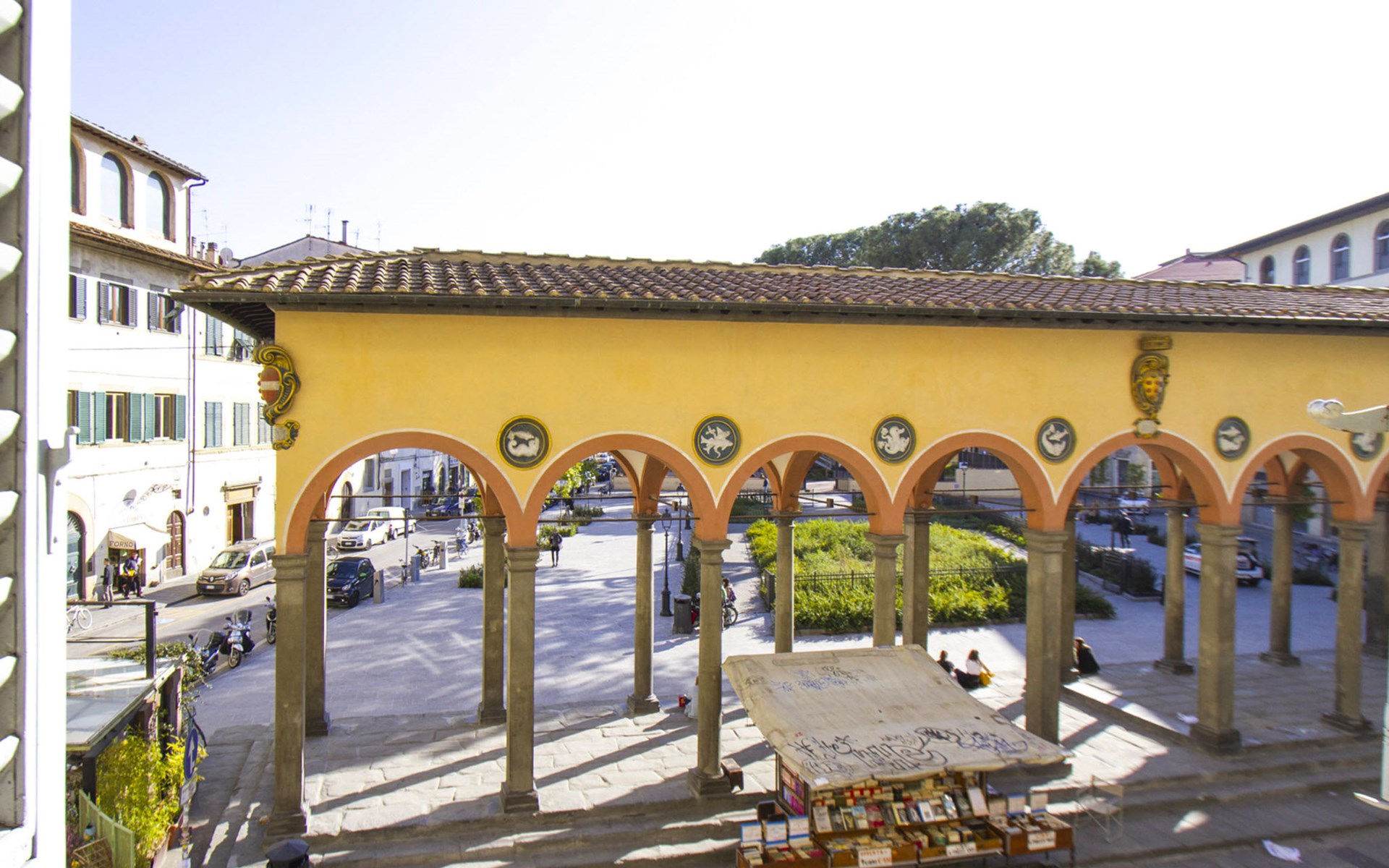 The apartments we propose are located in Piazza dei Ciompi, in front of the Loggia del Pesce, in the district of Sant’Ambrogio, the beating heart of Florence, which has made traditions and craftsmanship its workhorse. A few hundred meters away is the famous Sant'Ambrogio market where you can find almost everything the heart wants to cook. Residence "Palazzo dei Ciompi". 33 apartments in the property. In the centre of Firenze, in the district Sant'Ambrogio, in the heart of the city, in a pedestrian area. In the complex: reception, lift, central heating system, washing machine, tumble dryer (for shared use), heating available only from 01.Nov. - 07.Apr.. Breakfast possible on request (extra). Public parking extra. Shop 50 m, supermarket 170 m, bus stop 300 m, railway station "Firenze Santa Maria Novella" 1.6 km. Golf course (18 hole) 11 km. Nearby attractions: Piazza Santa Croce 500 m, Museo Nazionale del Bargello 750 m, Piazza del Duomo 800 m, Piazza della Signoria 1 km, Galleria degli Uffizi 1.1 km, Piazza Pitti 1.7 km. Please note: the apartment is located in a zone with limited traffic. The photograph shows a typical example. The photo is just an example.