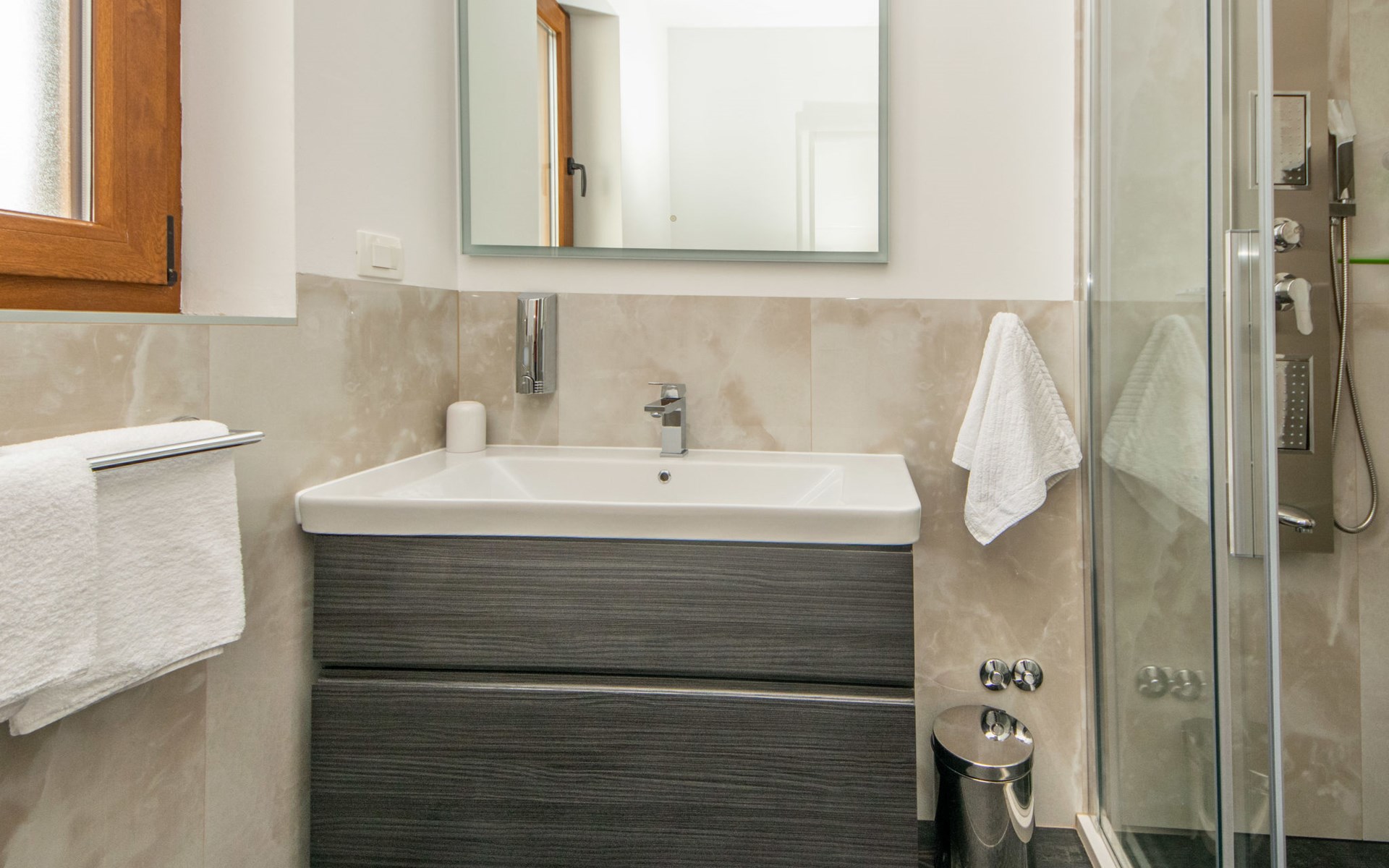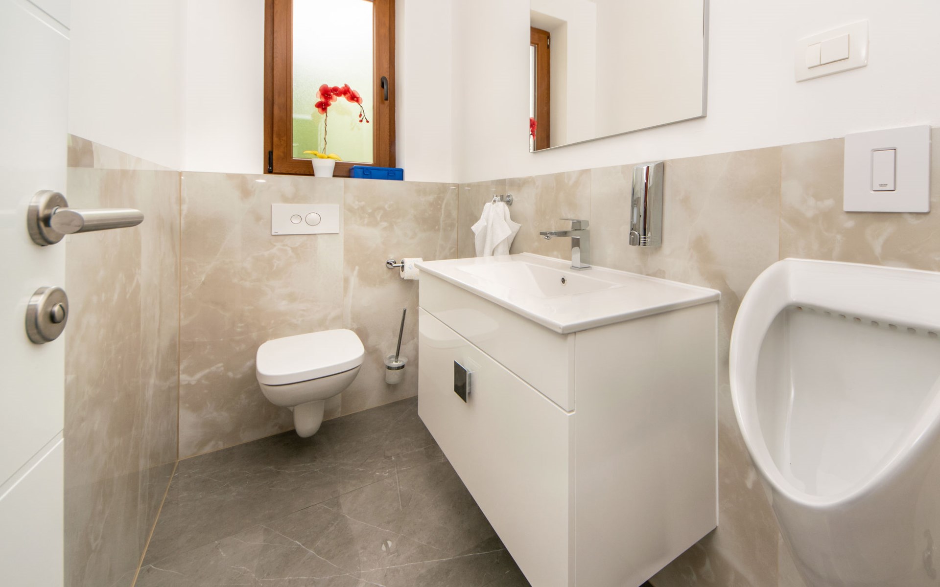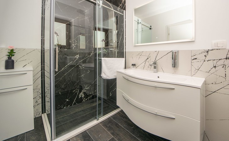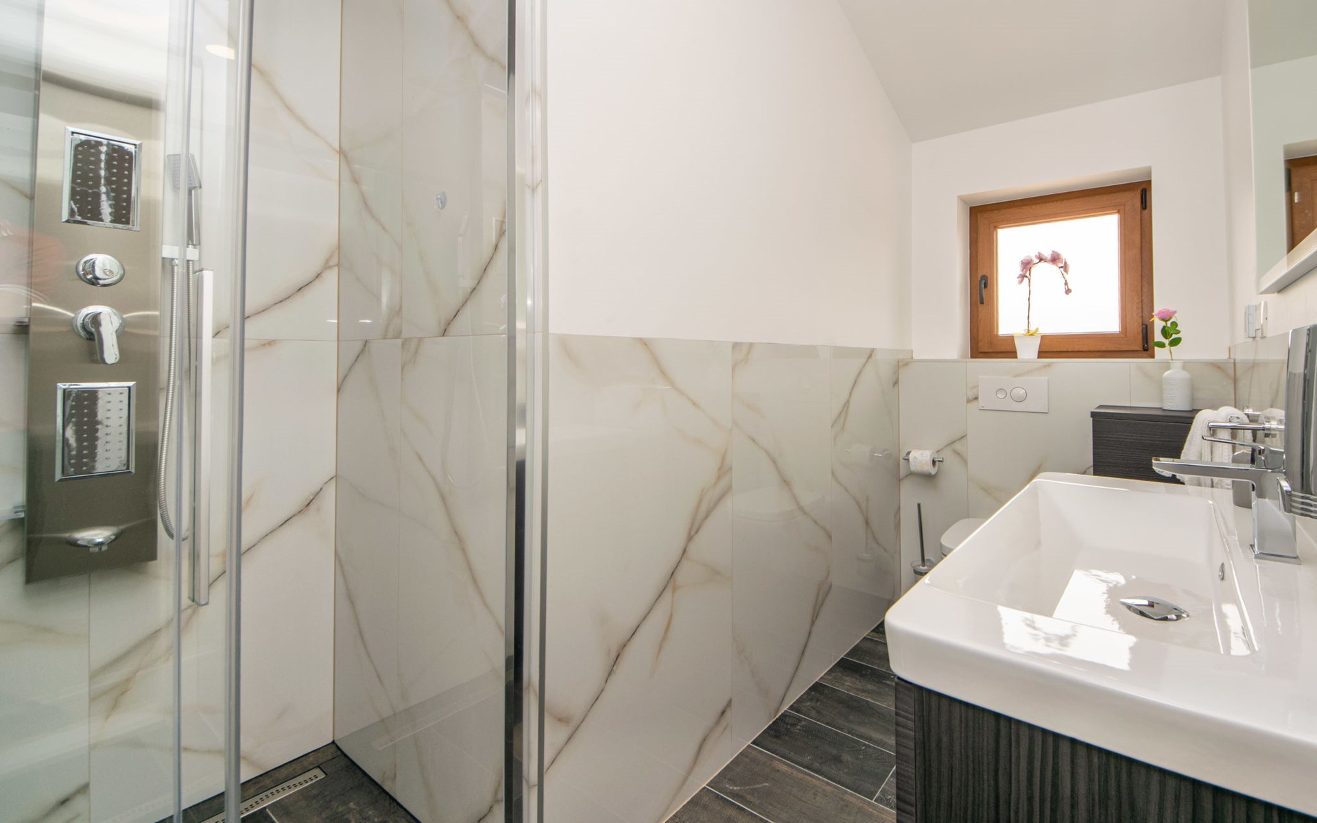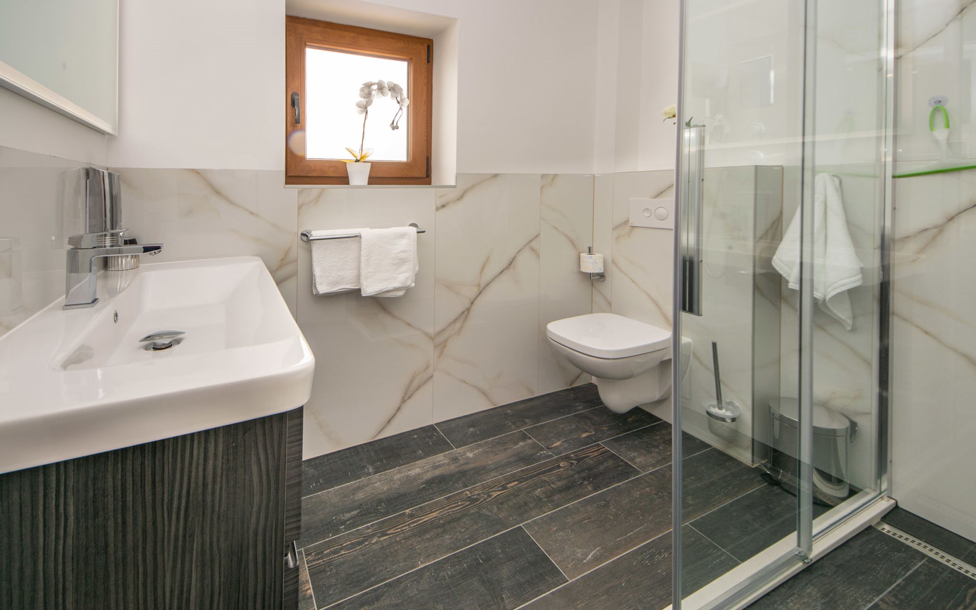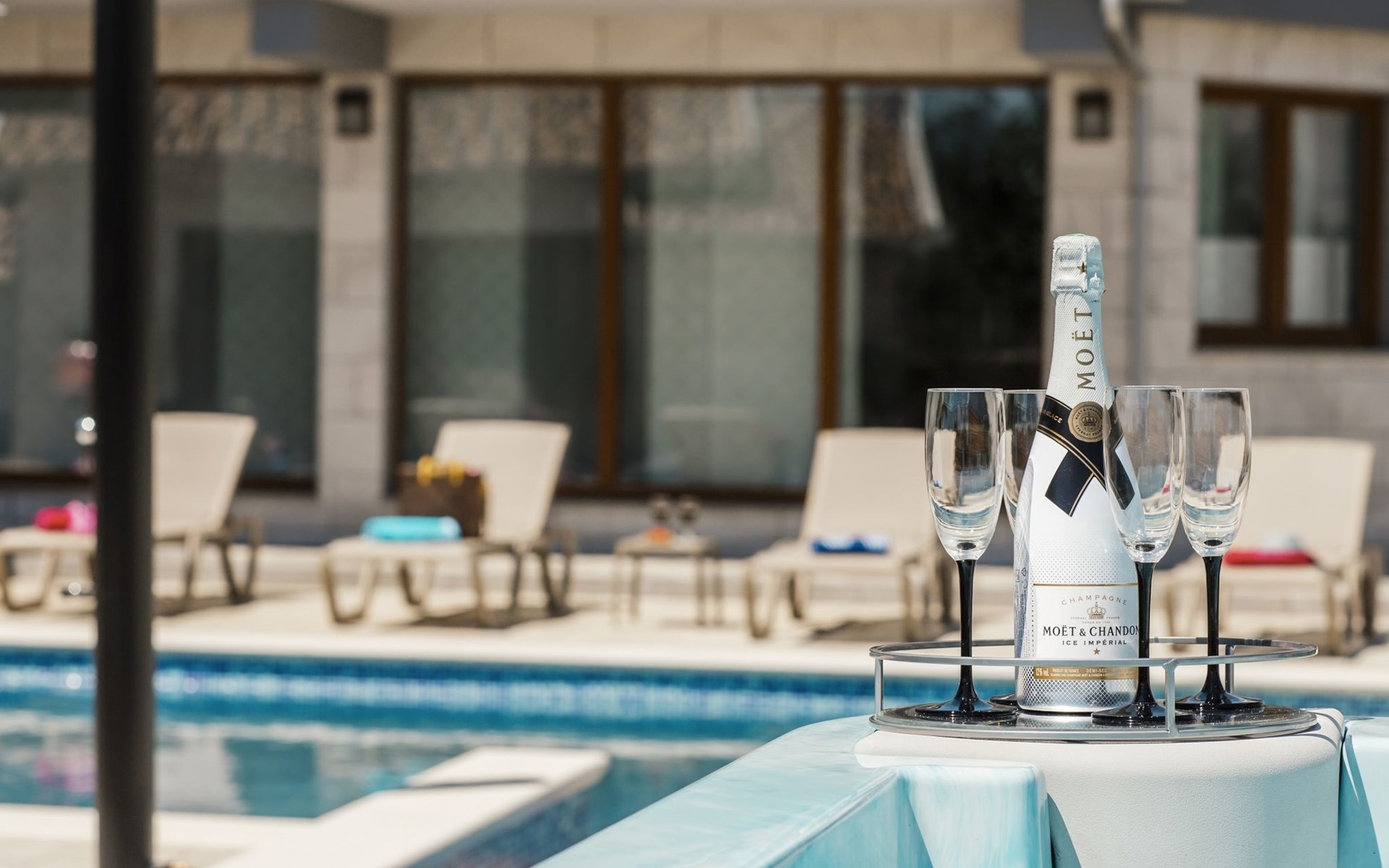 Gornji Proložac 6 km from Imotski: Child friendly, modern, beautiful villa "Oasis of peace", 2 storeys, built in 2019. In a quiet, sunny position, 38 km from the sea. Private: property 1'370 m2 (fenced), swimming pool angular, heated (12 x 5 m, depth 150 cm, seasonal availability: 01.May. - 01.Oct.) with internal staircase and salt-electrolysis pool-cleaning system. Paddling pool, outdoor shower, hot tub, pool house with fridge, WC and cooking stove, barbecue, children's playground (slide, swing). In the house: internet access, storage room for bicycles, washing machine. Available: bicycles. Parking (for 4 cars) at the house on the premises. Shop 6 km, restaurant 1 km, bus stop 7.3 km, pebble beach 38 km. Walking paths from the house 1 km, cycle lane 1 km. Well-known lakes can easily be reached: Modro jezero 1 km, Crveno jezero 1 km. Please note: suitable for families. The owner does not accept any youth groups. It is necessary to announce 7 days in advance if the pool heating is required. Pool house: kitchen with dining table and satellite TV. Private: small football playground (included).
