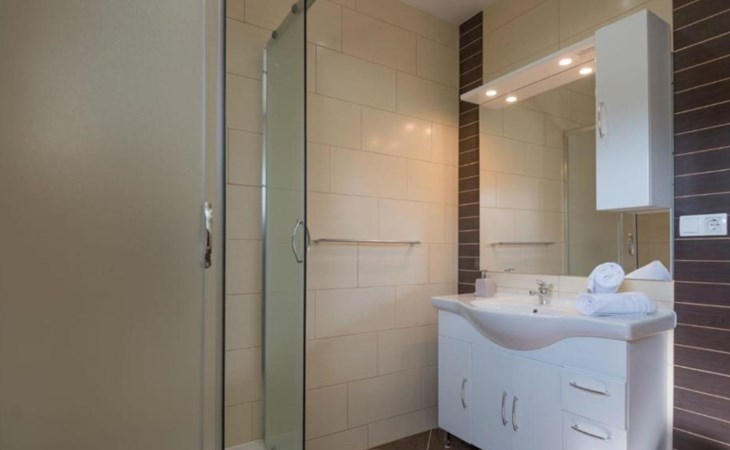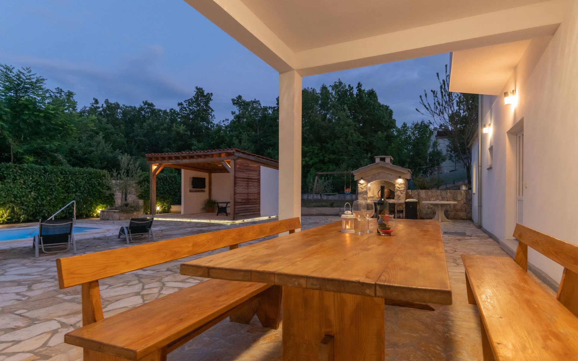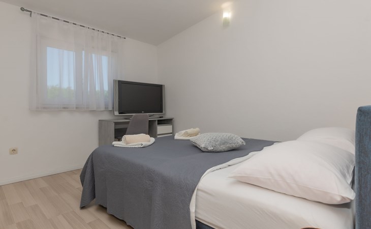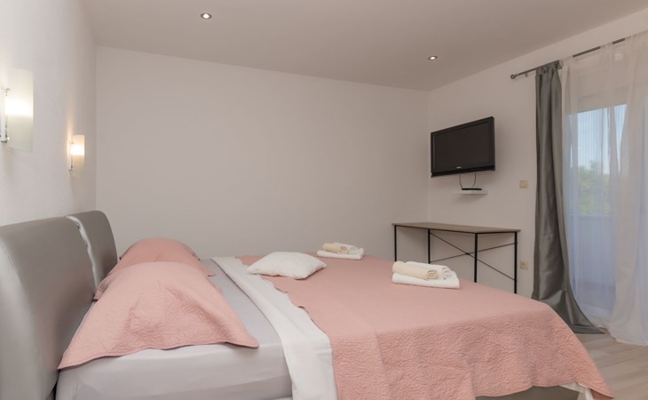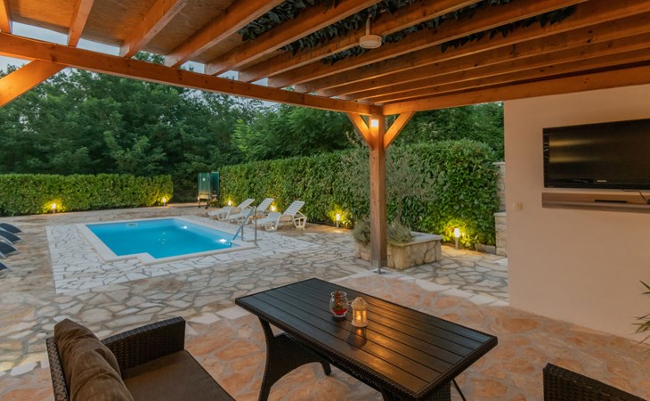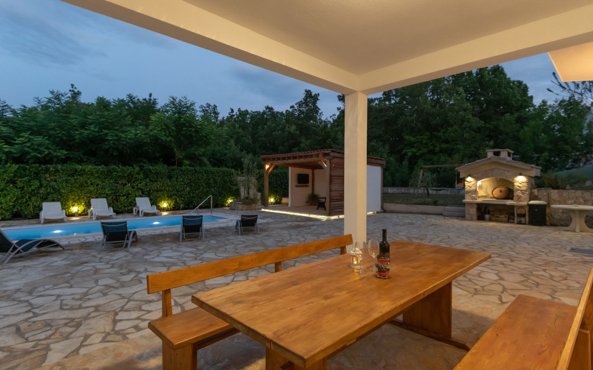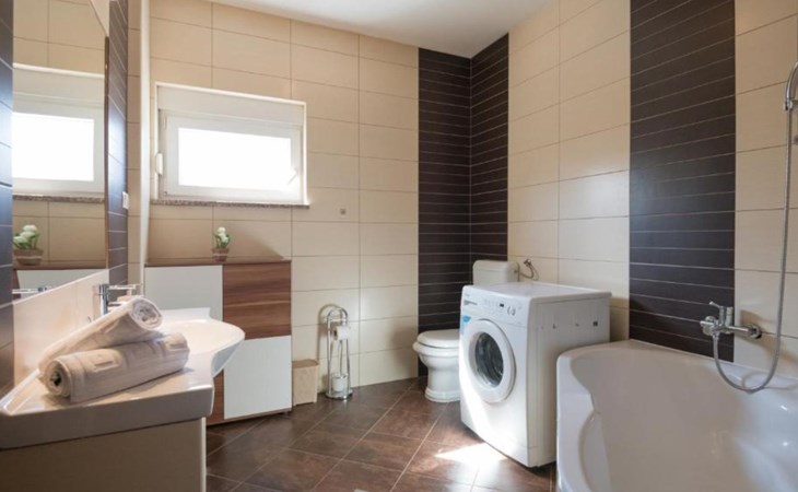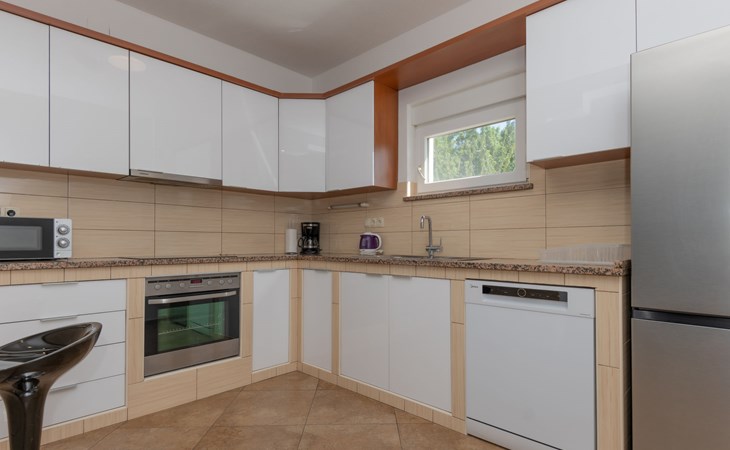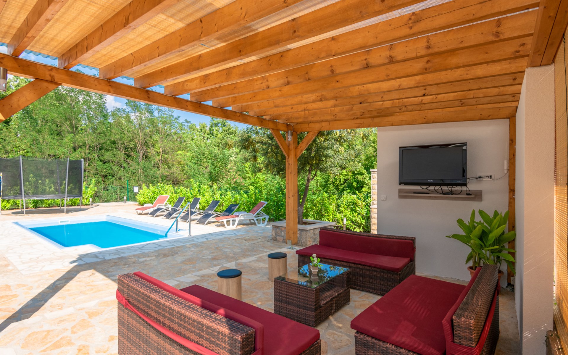 Single-family house "Villa Dalmatina", 2 storeys. 7.5 km from the centre of Imotski, in a quiet, sunny position, 30 km from the sea, 30 km from the beach, in a cul-de-sac. Private: property 3'000 m2 (fenced) with trees, swimming pool angular (7 x 4 m, depth 150 cm, seasonal availability: 15.Jun. - 01.Oct.). WC in the pool area, outdoor shower, pool house with fridge and cooking stove, table tennis, terrace (30 m2), barbecue. In the house: internet access, trampoline. Parking (for 5 cars) at the house on the premises. Shop 250 m, restaurant 7.5 km, bus stop 260 m, pebble beach 30 m. Nearby attractions: Modro jezero 10 km.