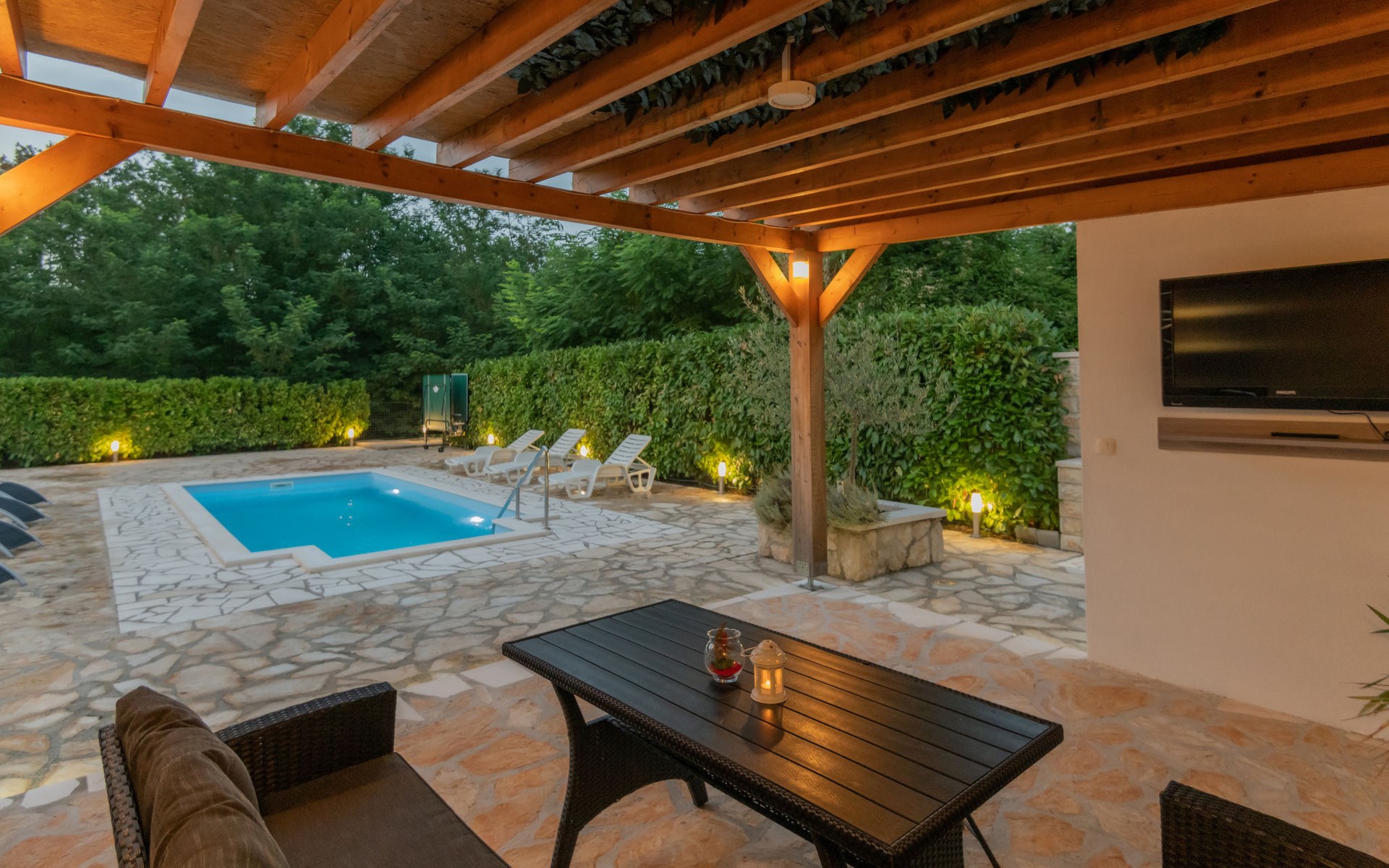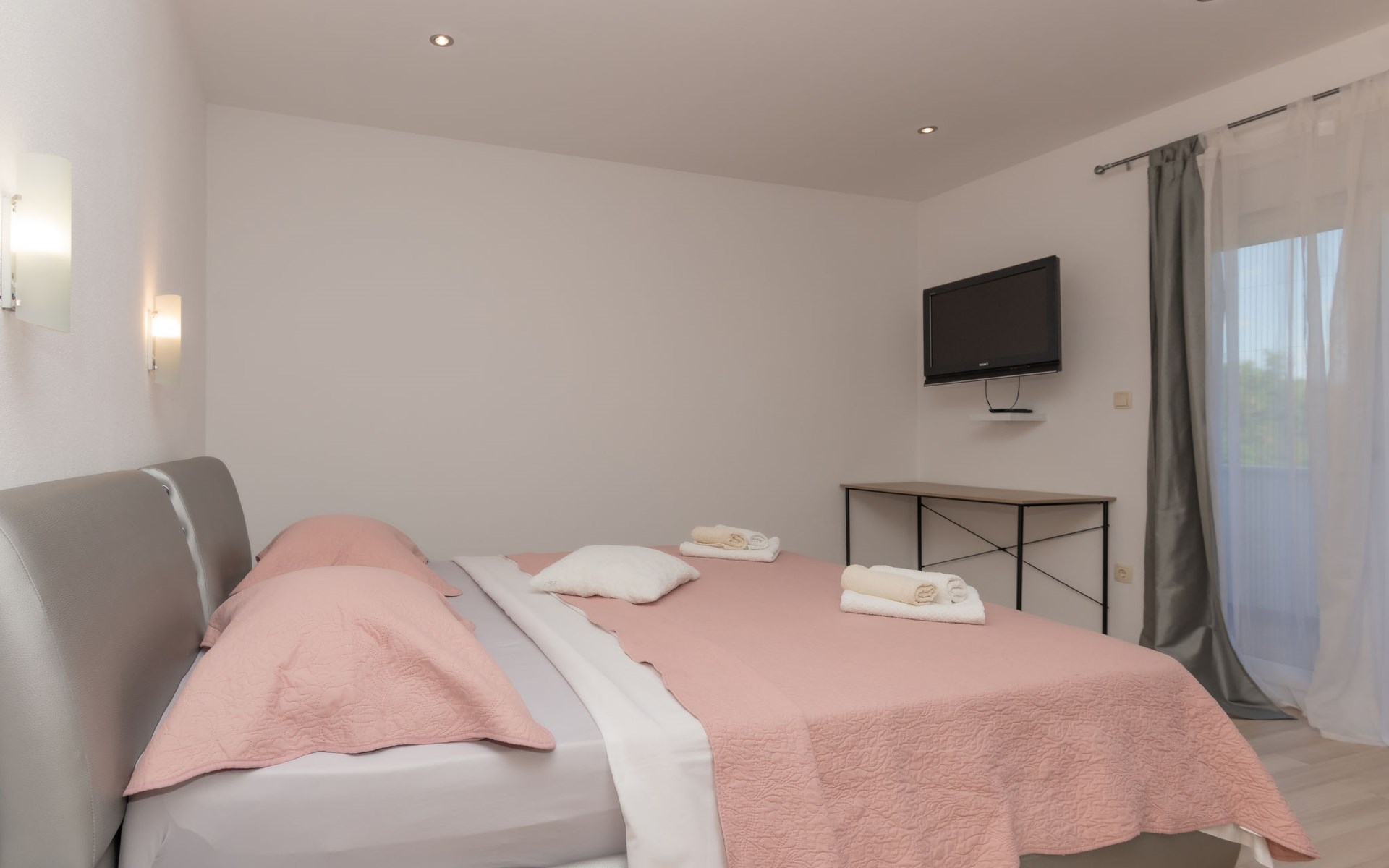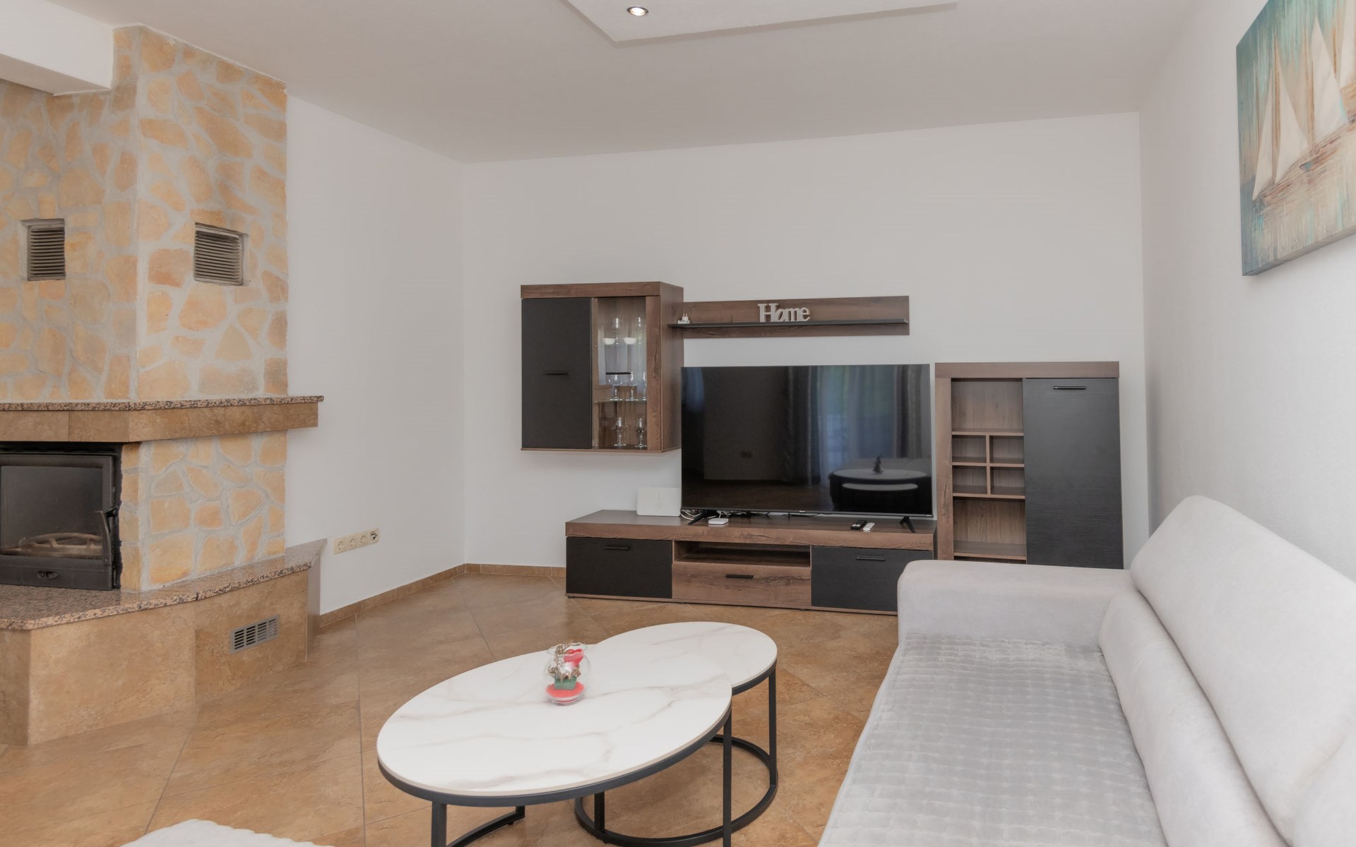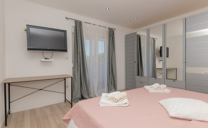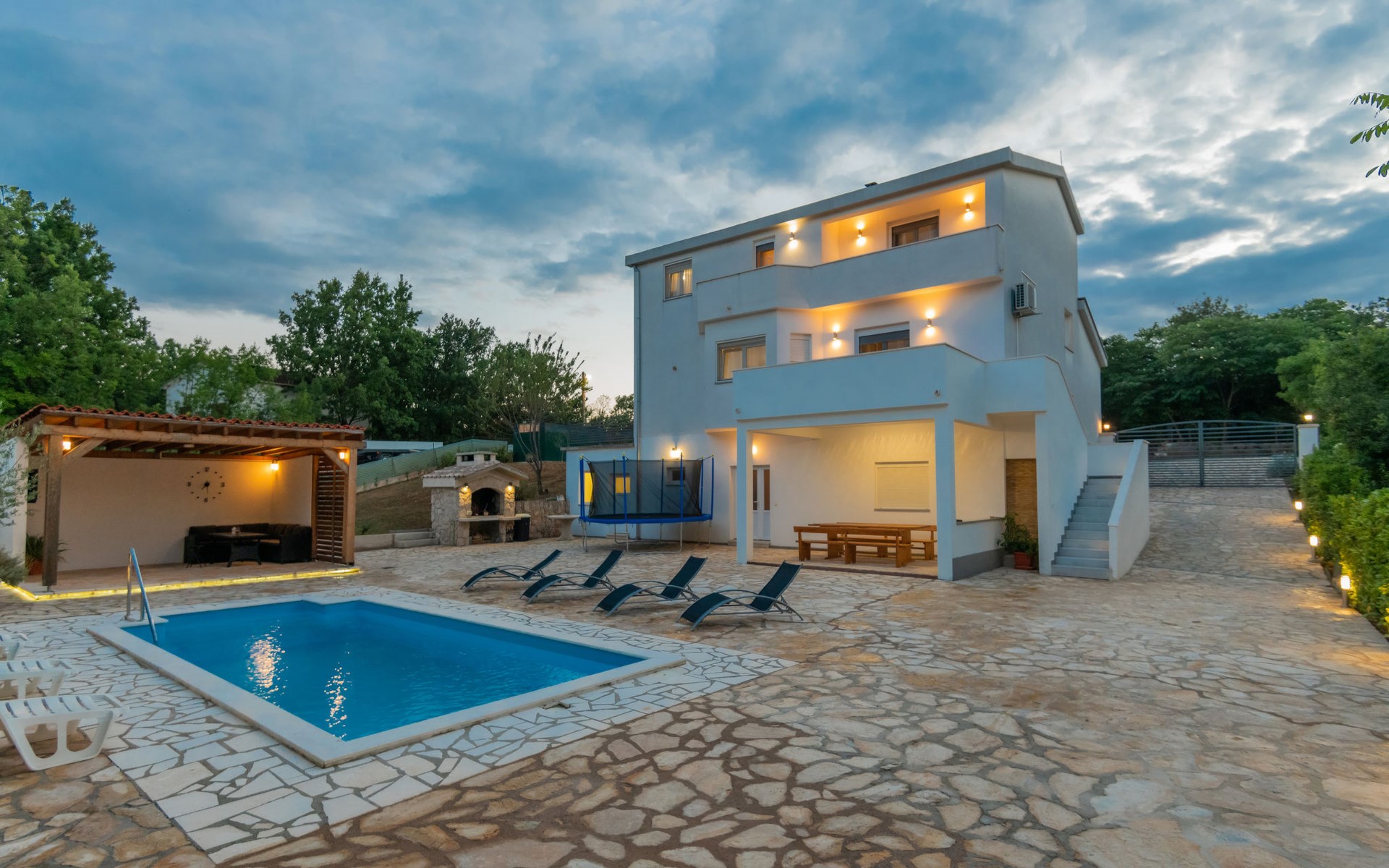 Single-family house "Villa Dalmatina", 2 storeys. 7.5 km from the centre of Imotski, in a quiet, sunny position, 30 km from the sea, 30 km from the beach, in a cul-de-sac. Private: property 3'000 m2 (fenced) with trees, swimming pool angular (7 x 4 m, depth 150 cm, seasonal availability: 15.Jun. - 01.Oct.). WC in the pool area, outdoor shower, pool house with fridge and cooking stove, table tennis, terrace (30 m2), barbecue. In the house: internet access, trampoline. Parking (for 5 cars) at the house on the premises. Shop 250 m, restaurant 7.5 km, bus stop 260 m, pebble beach 30 m. Nearby attractions: Modro jezero 10 km.