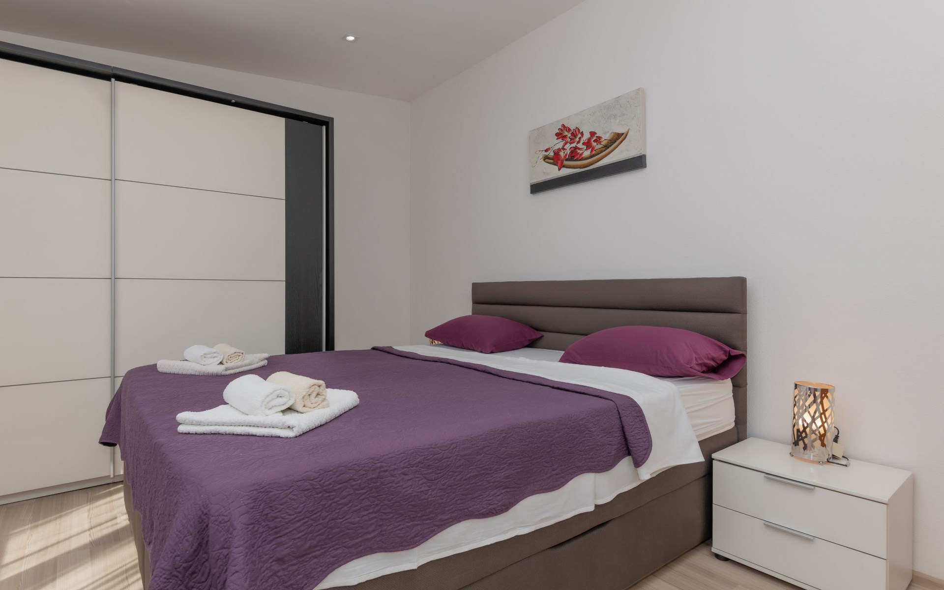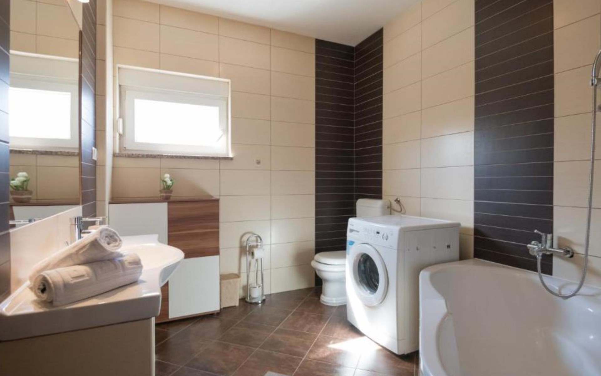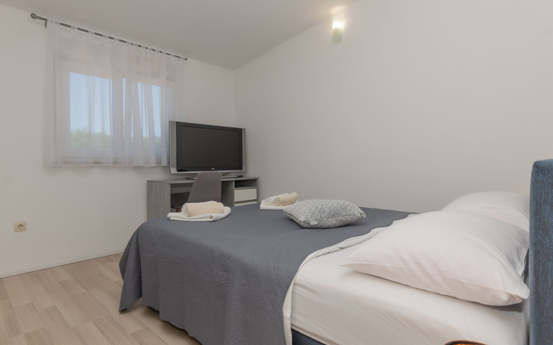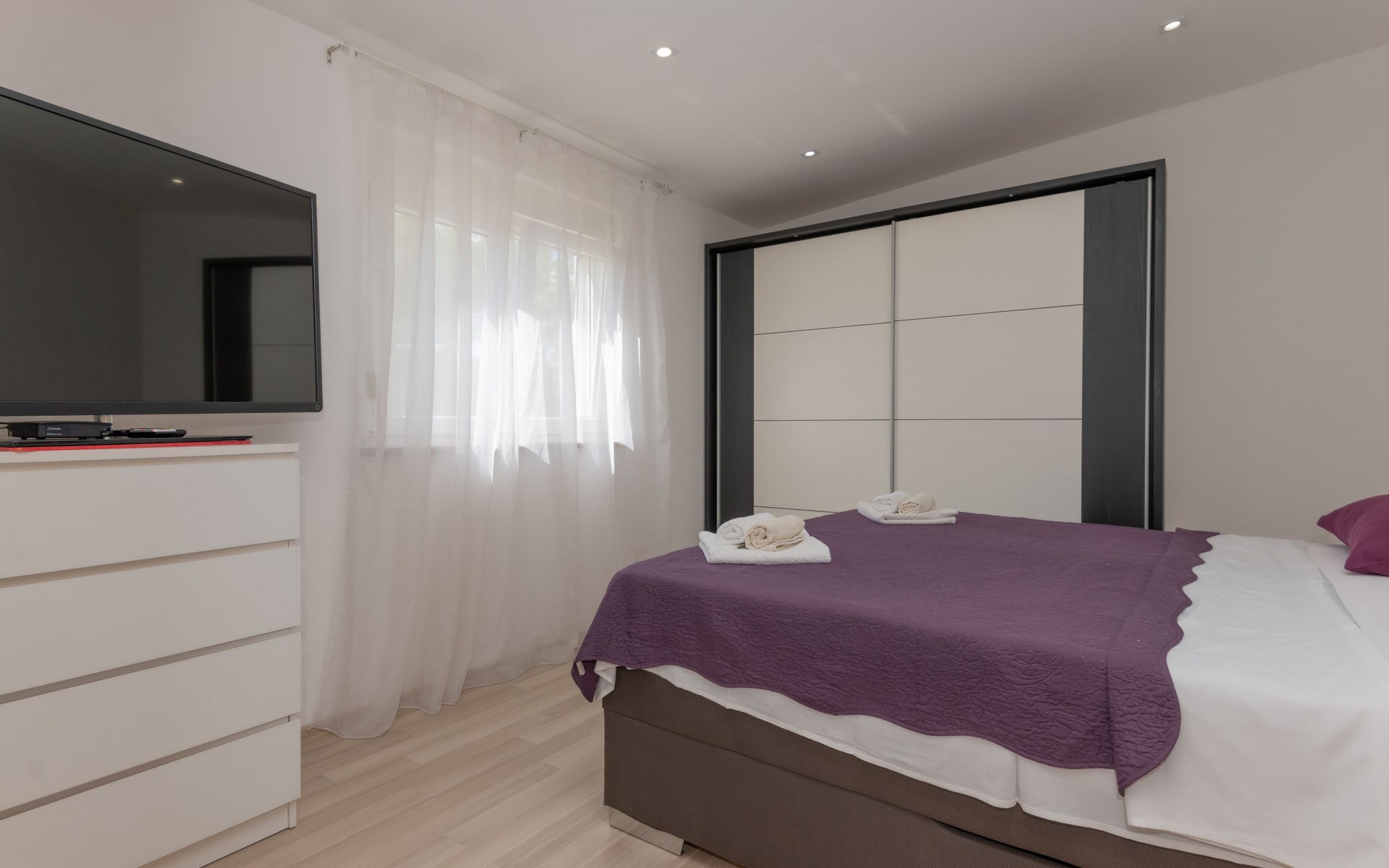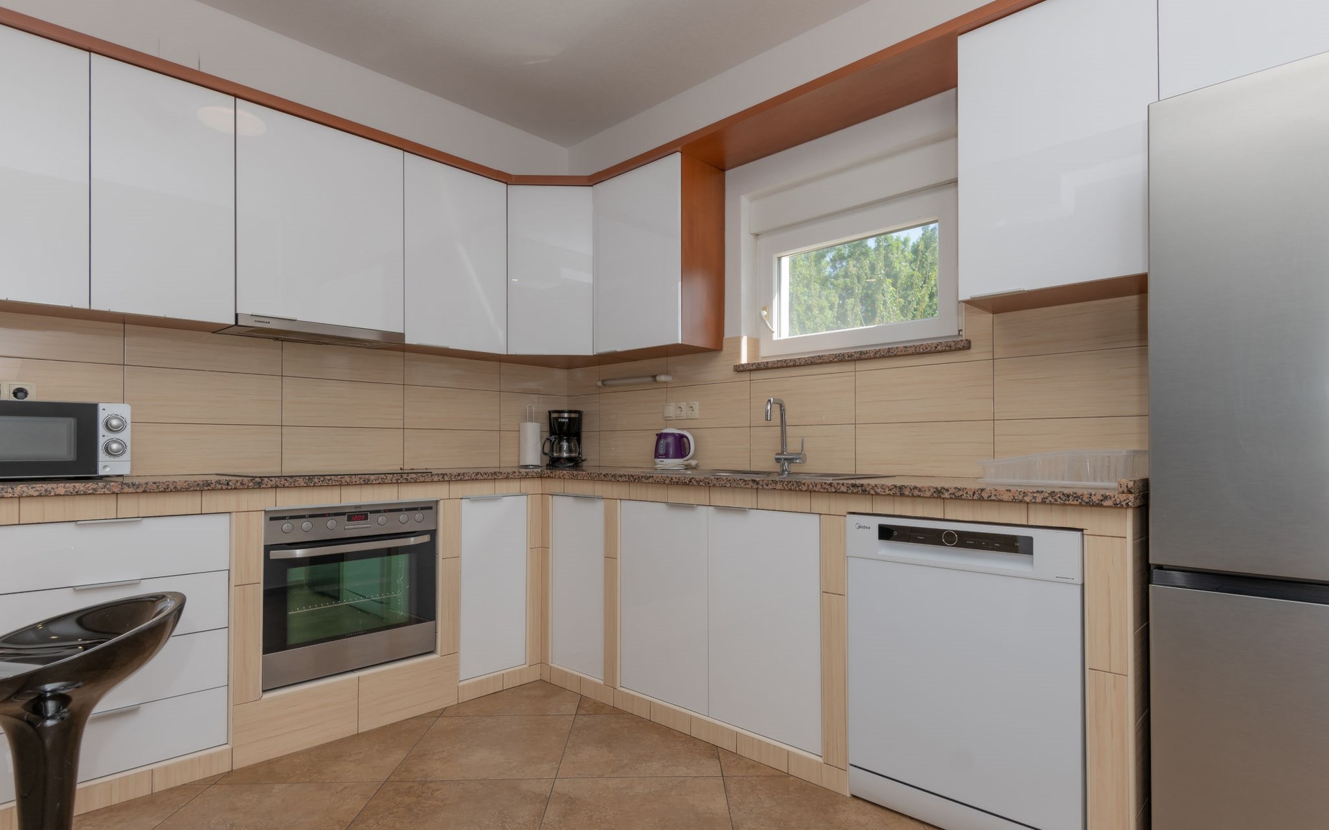 Single-family house "Villa Dalmatina", 2 storeys. 7.5 km from the centre of Imotski, in a quiet, sunny position, 30 km from the sea, 30 km from the beach, in a cul-de-sac. Private: property 3'000 m2 (fenced) with trees, swimming pool angular (7 x 4 m, depth 150 cm, seasonal availability: 15.Jun. - 01.Oct.). WC in the pool area, outdoor shower, pool house with fridge and cooking stove, table tennis, terrace (30 m2), barbecue. In the house: internet access, trampoline. Parking (for 5 cars) at the house on the premises. Shop 250 m, restaurant 7.5 km, bus stop 260 m, pebble beach 30 m. Nearby attractions: Modro jezero 10 km.