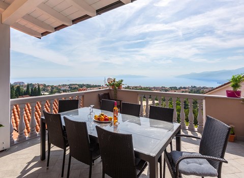 Beautiful villa "Roko", 3 storeys. In the hamlet Ljutići 2.5 km from the centre of Malinska, in a quiet, sunny position, 2.5 km from the sea, 2.5 km from the beach, in the countryside. Private: property 1'200 m2, swimming pool angular (10 x 3 m, depth 150 cm, seasonal availability: 01.May. - 31.Oct.). Paddling pool, outdoor shower, hot tub, terrace (100 m2). In the house: internet access, sauna, relaxation room, billiard table, washing machine, tumble dryer. Parking (for 4 cars) at the house on the premises. Shop 2 km, supermarket 4 km, restaurant 2 km, bus stop 1.3 km, pebble beach 2.5 km, public bathing area 2.5 km, concrete beach 2.5 km. Groups of teenagers on request only. By groups of young people double deposit is requested on arrival.