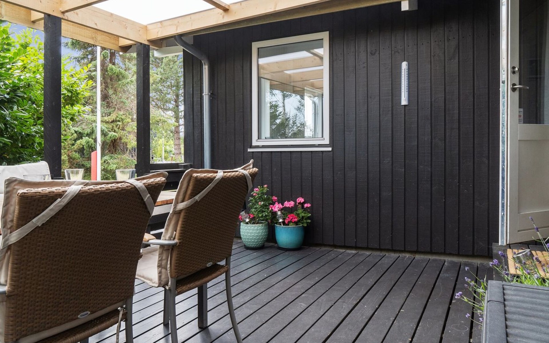 Single-family house, built in 1968. 10 m from the sea. Private: property 1'021 m2, well-kept garden. Terrace (20 m2), barbecue, children's playground (swing). In the house: washing machine. Parking at the house. Grocery 5 km. The owner does not accept any youth groups.