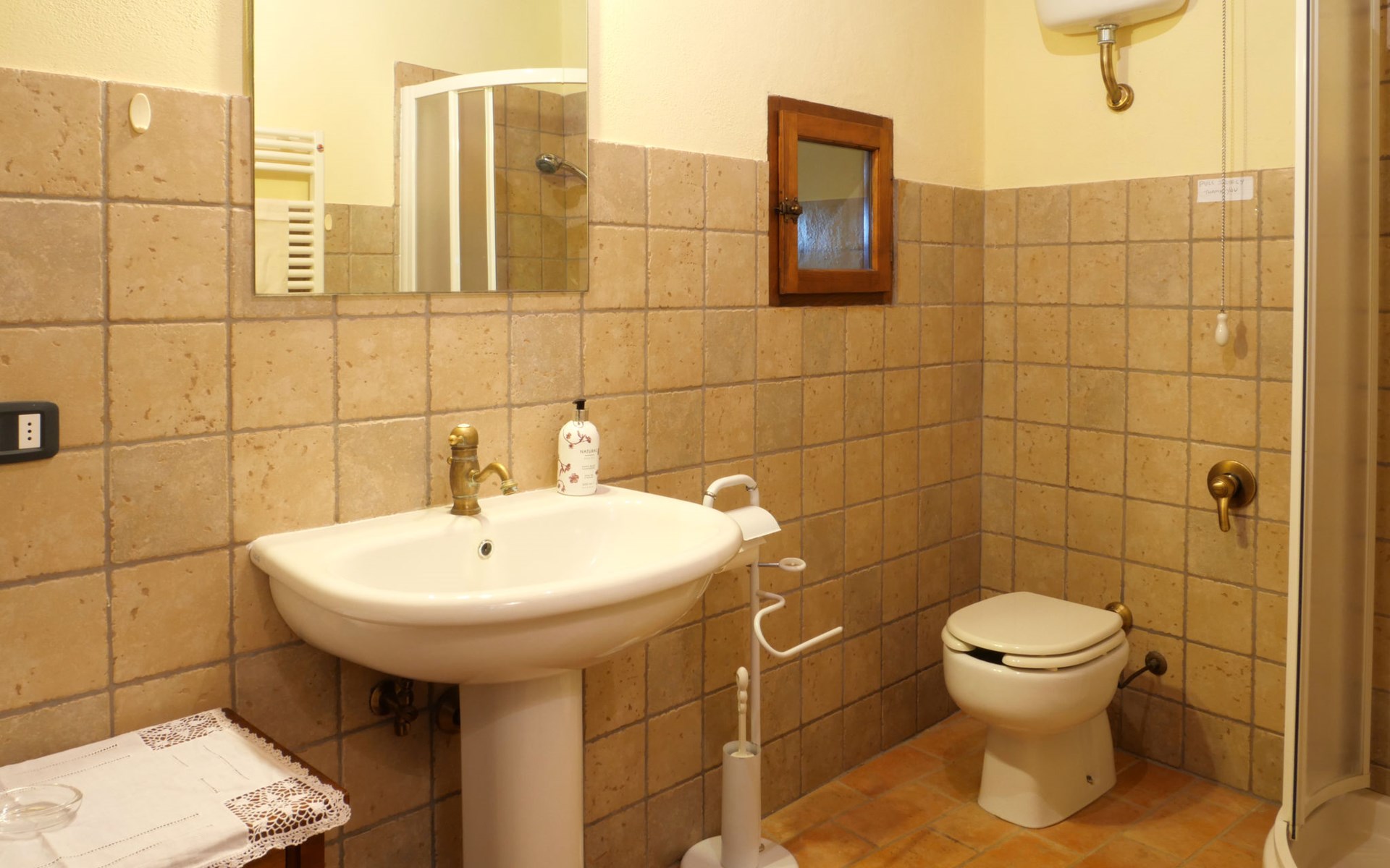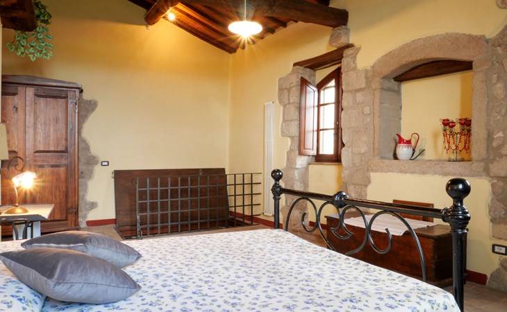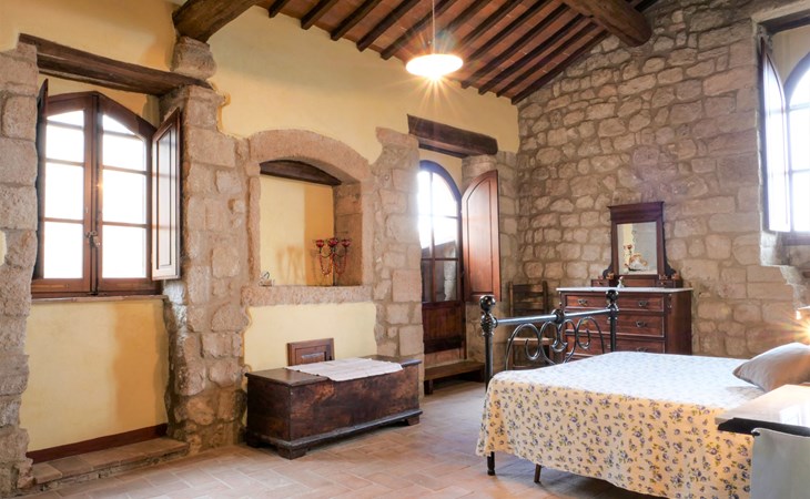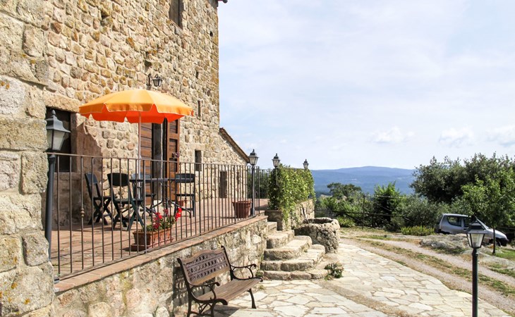 Rustic, historical country house "Borgo la Civitella", from the 13rd century, surrounded by trees and fields. 8 apartments in the residence. 3.3 km from the centre of Roccastrada, in a secluded, sunny, elevated position, 40 km from the sea. In the house: washing machine (for shared use, extra). 600 m long bumpy motor access. Parking at 50 m. Shop 3.3 km, supermarket 3.3 km, bus stop 1.5 km, railway station "Roccastrada" 5 km, ferry "Piombino" 66 km, lake Accesa 30 km. Marina 44 km, golf course (18 hole) 41 km. Nearby attractions: Massa Marittima 30 km, Grosseto 35 km, Siena 55 km. Hiking paths: Mountain-bike 2 km. Please note: car recommended.
